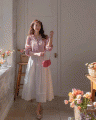 밑단에 물결 쉐입과 자수 레이스가 더해져서