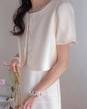 【ラウンドネックに加えられたリボンディテールポイント*。