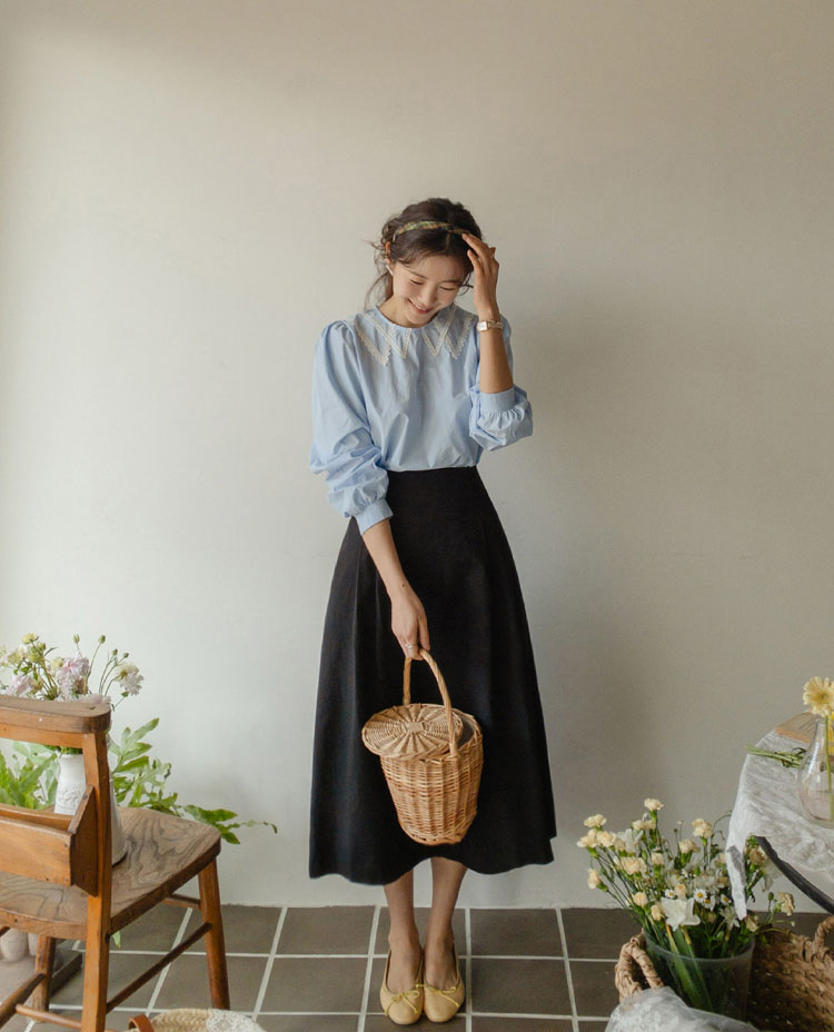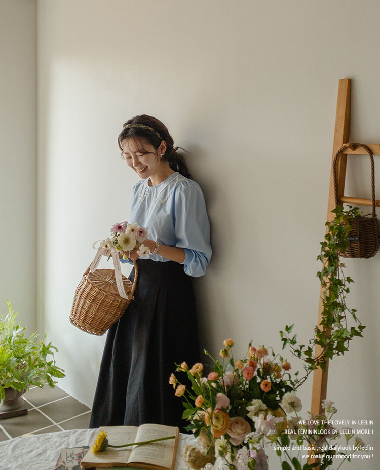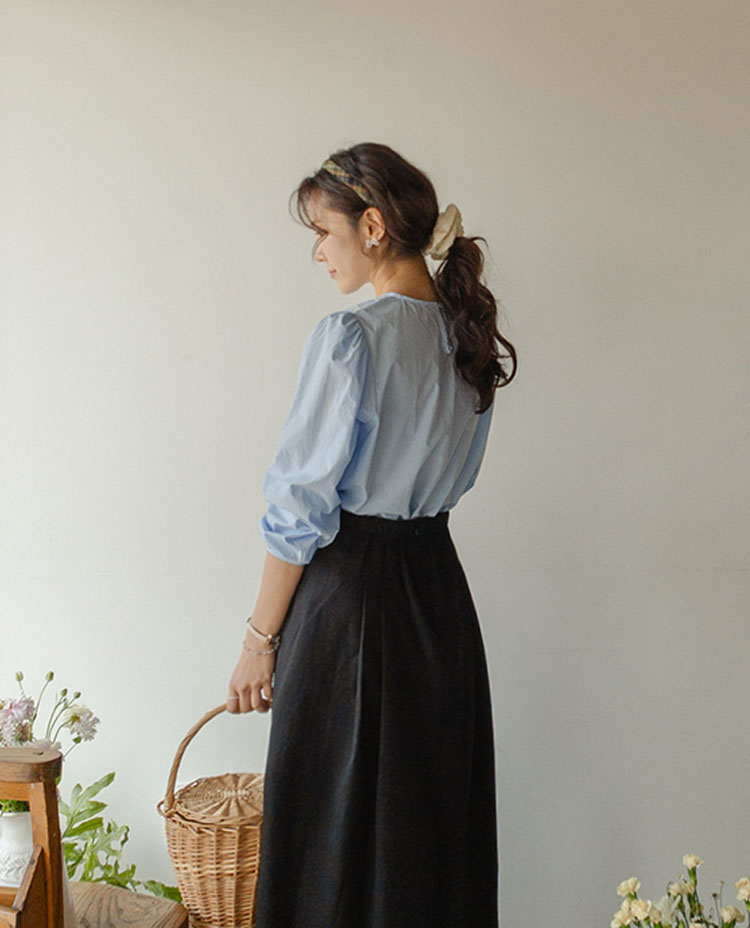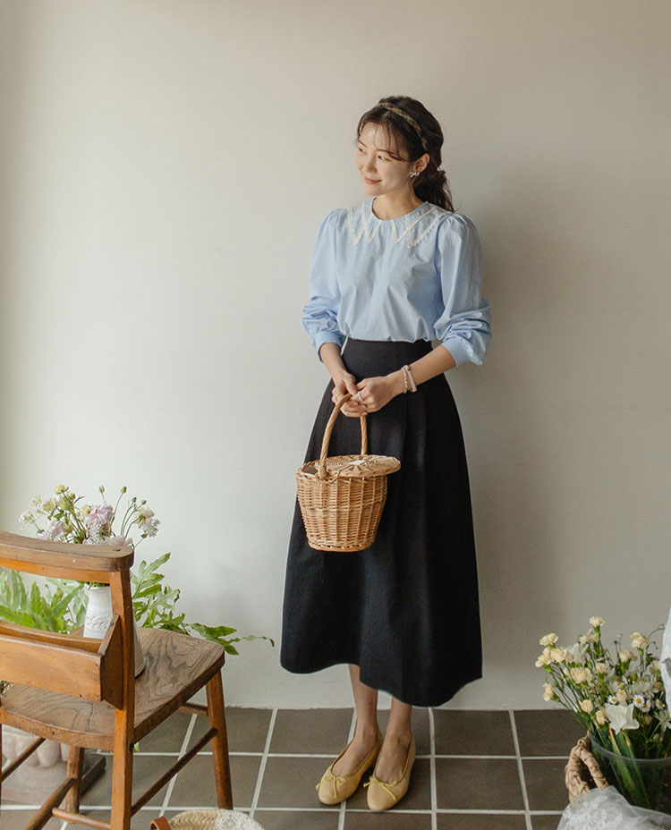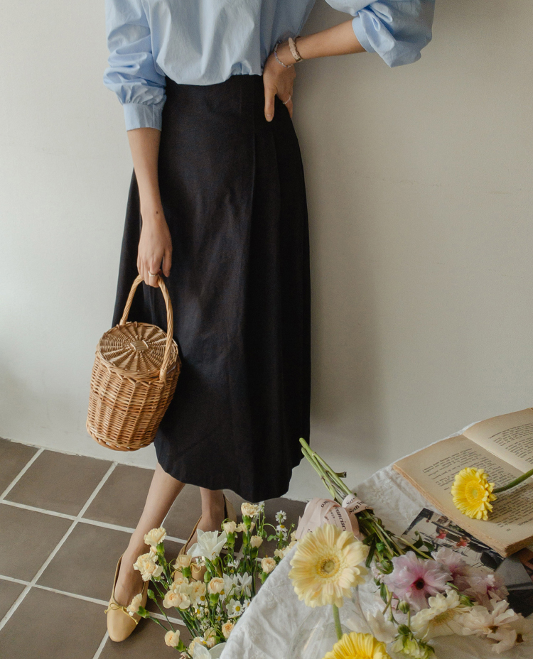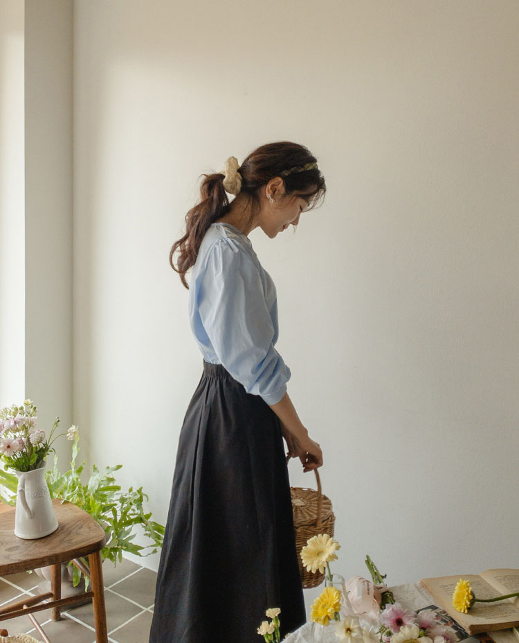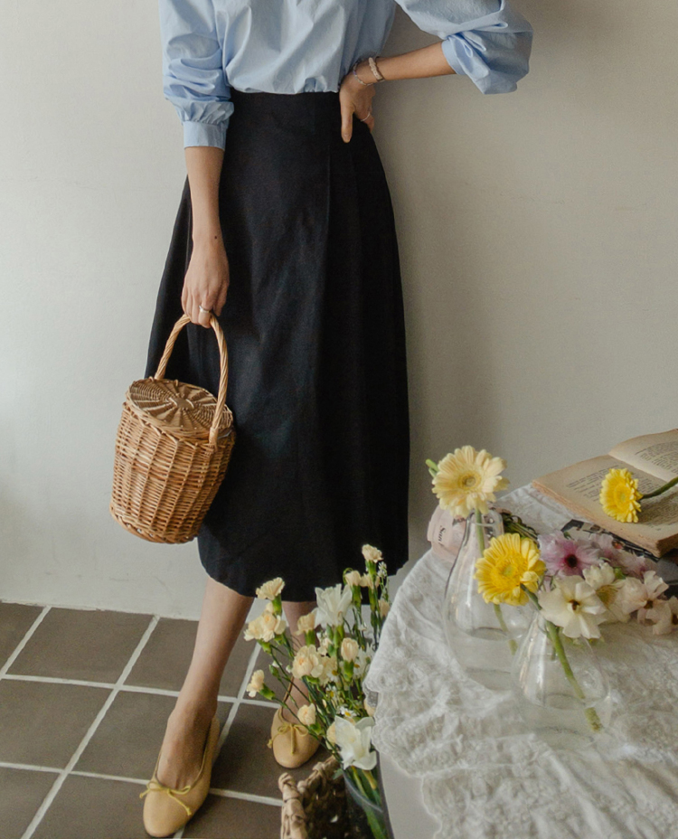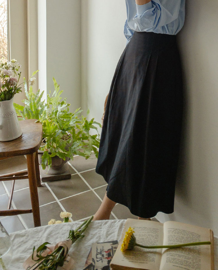 깔끔한 디자인에 앞,뒤로 맞핀턱이 들어가있어 베이직한 핀턱 스커트보다 더 입체적이고 풍성한 실루엣을 보여주는 핀턱 롱 스커트에요 :)♥ 보통 핀턱 롱 스커트는 얼만큼의 핀턱을 잡는지에 따라 전체적인 실루엣도 느낌도 확-확- 바뀐다는 것 아시나요 *.* 요아이는 앞,뒤로 맞 핀턱이 들어가있어서 깔끔한 상의와도 착용했을 때 더욱 예뻐보이고 여성스러운 무드가 절로 느껴지더라구요~ 허리 뒷밴딩으로 되어있지만 허리사이즈도 일반적인 롱 스커트보다 살짝- 여유있게 나와서 상의를 안에 넣어 입어도 끼임없이 편안하고 누구나 편안하게 착용하실 수 있으실 거예요! 또, 적당히 기분좋은 바스락 거리는 소재감으로 면 100%의 투박한 듯 수수한 느낌도 아닌, 클래식하면서 고급스러운 무드가 느껴져서 더욱 맘에 들었던 아이에요~ 바이오워싱이 더해져서 부들부들~ 기분 좋은 촉감으로 착용하실 수 있답니다! 소녀같은 블라우스랑도 너무 잘 어울리구요 셔츠나 깔끔한 티셔츠와도 찰떡이라 코디하기 나름이랍니다 유행타지 않아 매년 간절기 시즌에 꺼내입을 수 있어서 적극 강추♥ 기장감도 모델 언니 기준으로 무릎 밑에까지 내려와서 노출 걱정도 없고 편안하게 착용하실 수 있으실 거예요! 무엇보다 롱한 기장감인데 바스락 거리는 소재감이라 무게감없이 편안하게 착용하시기 좋답니다! 자켓, 가디건, 니트, 코트와 함께 입을 롱스커트를 찾으셨다면 꼭 눈여겨 봐주세요 ♥