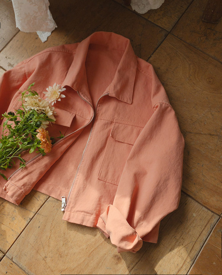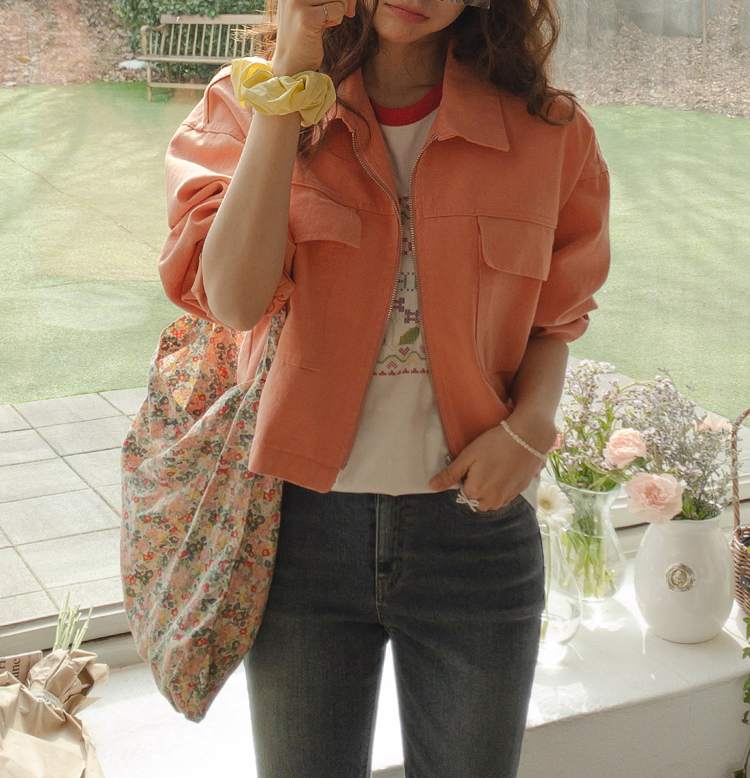 간절기 시즌 필수 아이템! 데일리하게 걸쳐 입기 좋은 코튼 자켓 소개해드려요 :) 탄탄한 코튼 소재에 바이오워싱이 더해져 부드러운 텍스쳐가 기분 좋게 만들어주며 세탁 후 변형과 생활구김도 적어서 활동하기 정말 편안한 아이에요~ 컬러감 자체도 예쁘게 나왔는데 피그먼트워싱도 한번 더해져서 저렴한 느낌 없이 고급스러움이 느껴지더라구요,,ㅎㅎ 적당한 두께감으로 데일리한 아우터로 즐기시기 좋으며 일교차가 큰 초여름 시즌이나 비 오는 날에도 가볍게 걸치기 좋은 자켓!! 레그라인이 길어보이게 만들어주는 살짝 크롭한 기장감으로 데님에 툭 입으셔도 좋고 슬랙스, 스커트, 원피스 등 다양한 스타일로 입기 좋은 베이직한 아이랍니다 ^^ 어깨라인을 내추럴하게 감싸주면서 전체적으로 낙낙하고 여유있는 실루엣으로 부담없이 입기 좋구요 프론트 중앙 지퍼가 더해져 간편하게 오픈클로징을 할 수 있으며 바스트라인 사각포켓이 더해져 실용성까지 느껴졌던 자켓이에요 ㅎㅎ 밑단도 둥글게 재단되어 밋밋하지 않게 은근히 포인트가 되어준답니다! 산뜻한 봄기운을 담은 살짝 형광끼가 감도는 오렌지 컬러부터, 가장 기본으로 입기 좋은 크림, 블랙 컬러 총 3가지 컬러로 준비했어요~ 취향에 맞게 초이스하셔서 데일리하게 즐겨주세요♥