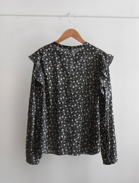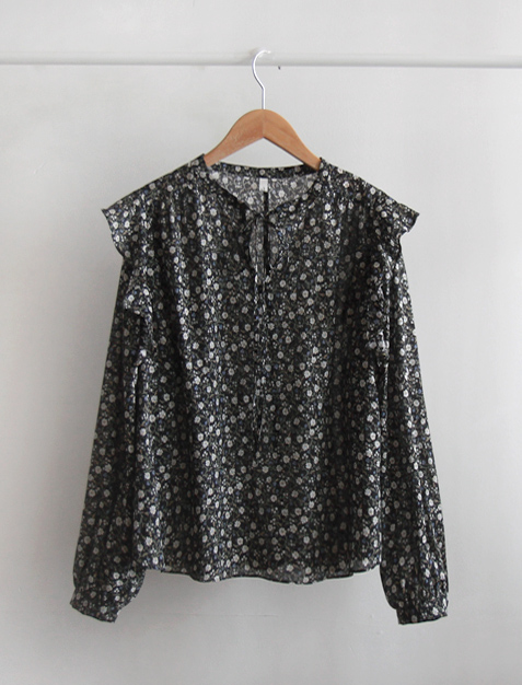 ゼクラビン春フラワーリボンネックショルダーシャーリング ヨリスリムフィットブラウス [size:F(55~66)]
