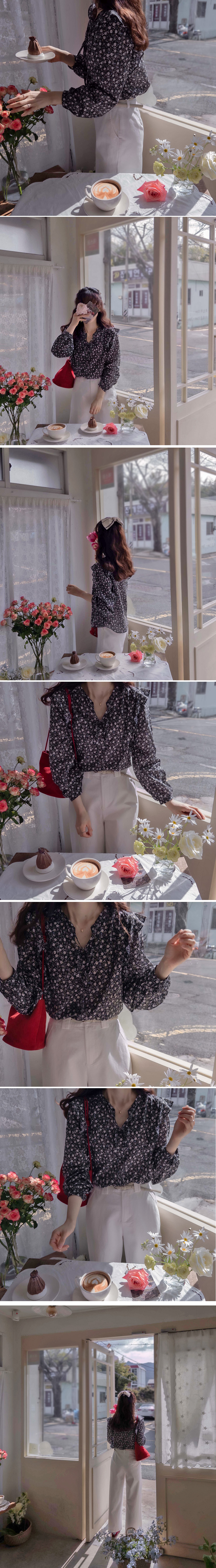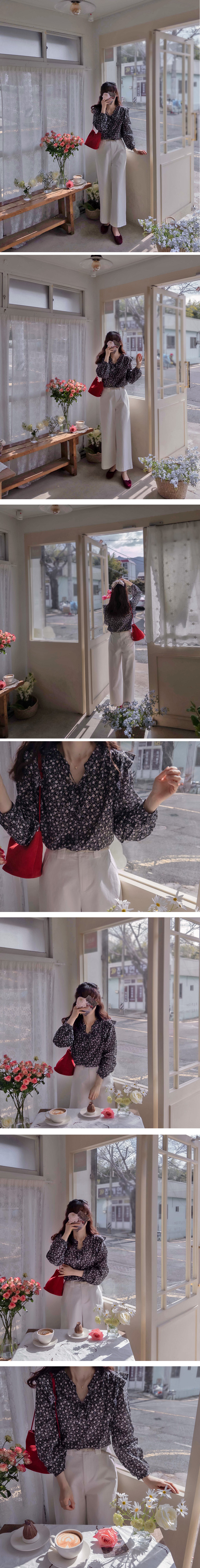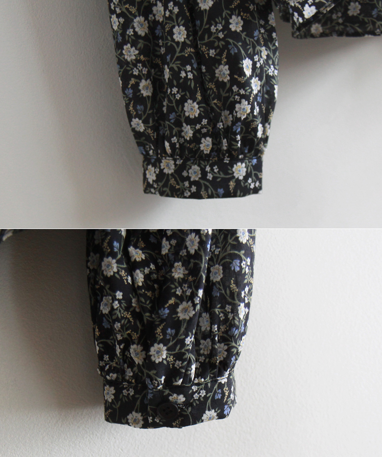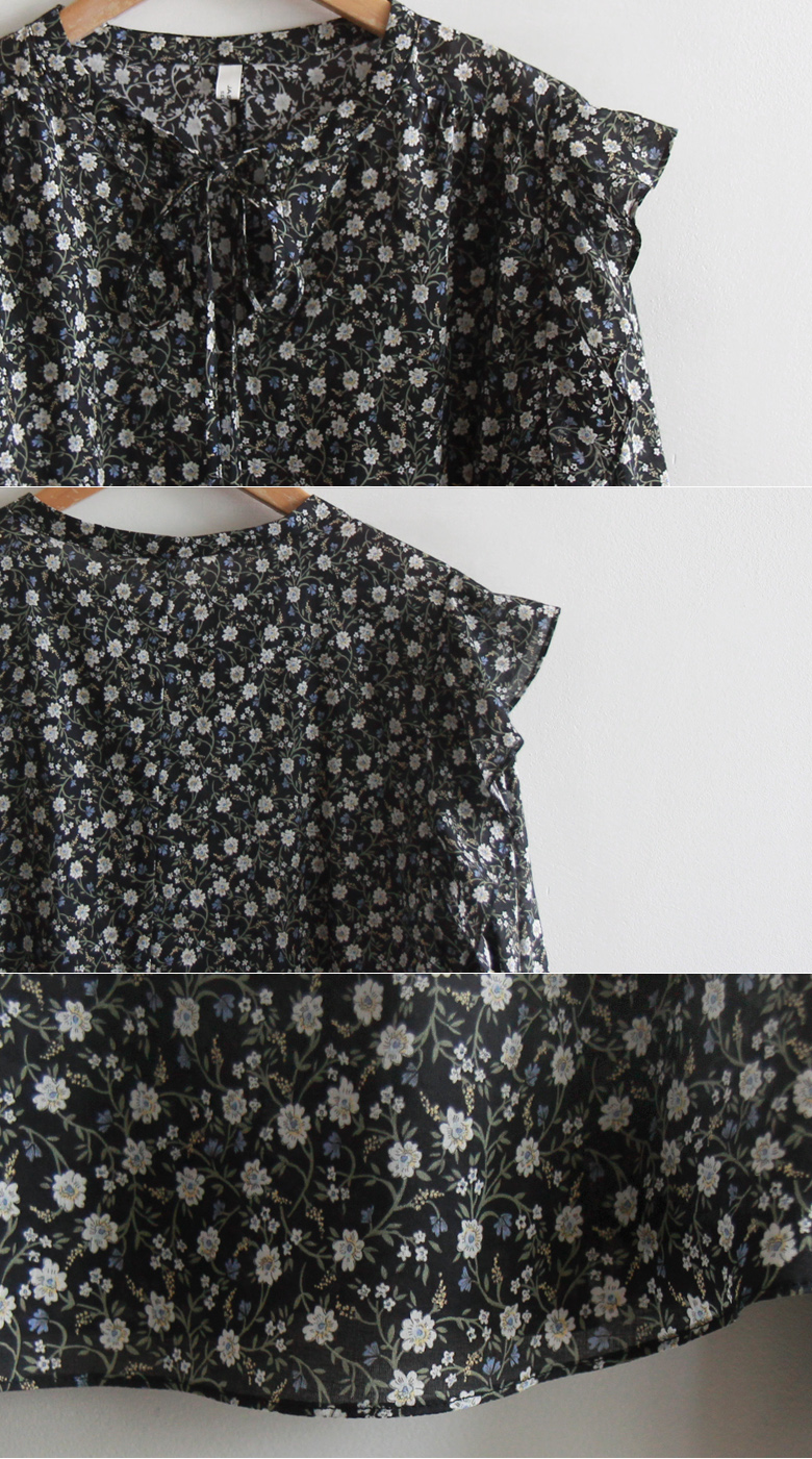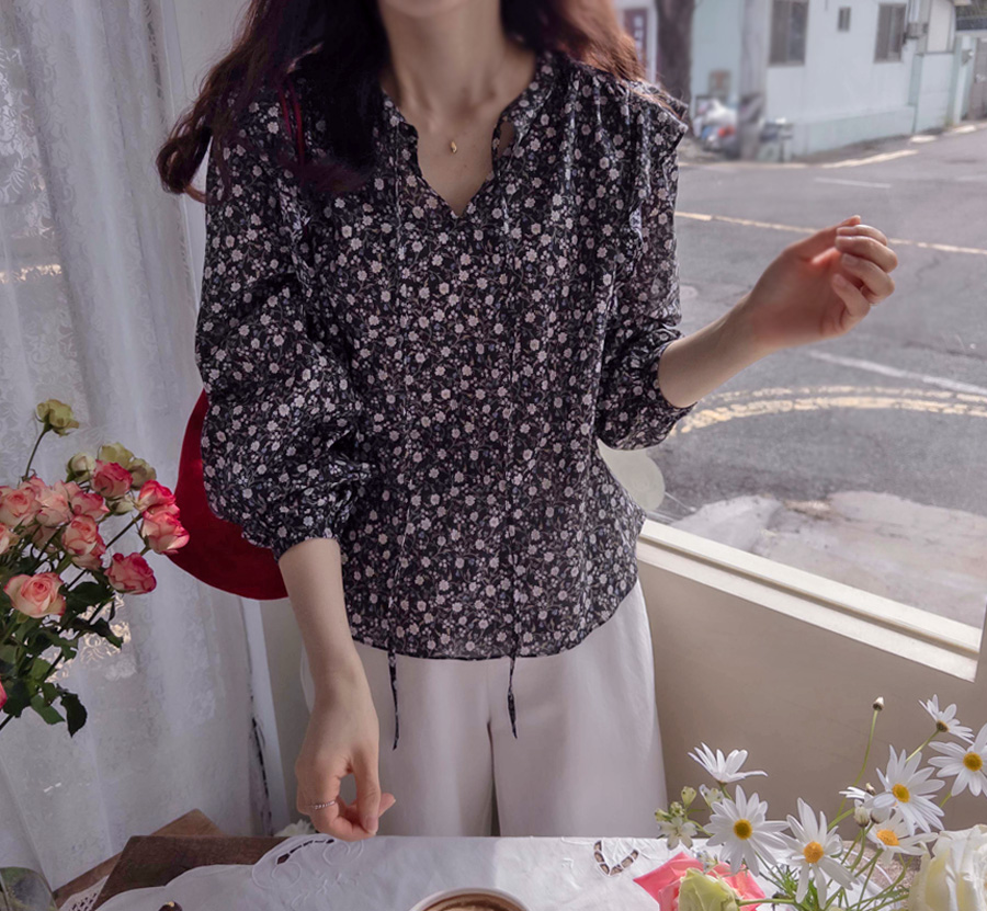 【ネックリボン結ばれてきれいです】【フラワーパターンを盛り付けて春の感じを込めたブラウス♡】【肌触り良く柔軟な生地感で快適に着るのがいいです】