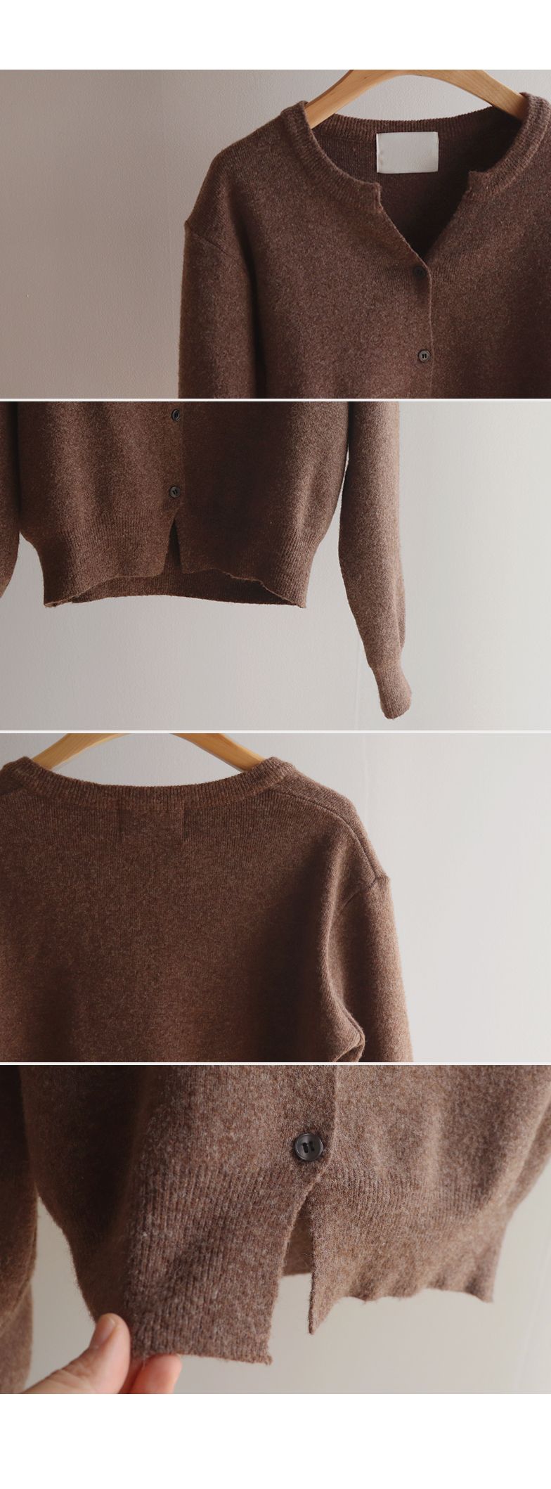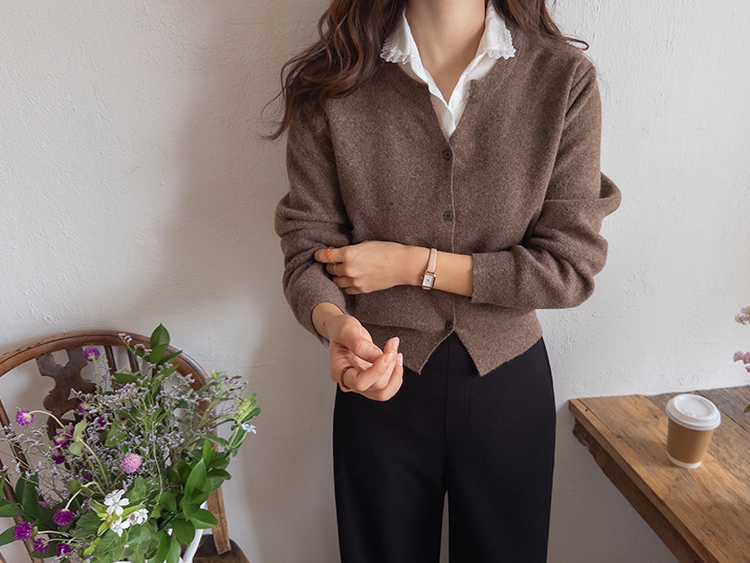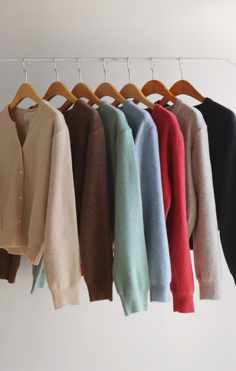 군더더기 없는 깔끔한 디자인의 가디건니트 보여드려요♥ 요 아이는 라운드인 듯 브이넥라인 디자인의 가디건인데요~ 반오픈 포인트로 단정하면서 다양한 아이템과 부담없이 매치하기 좋은 아이템이에요ㅎㅎ 울 함유로 탄탄한 내구성으로 따뜻하게 입기 좋구요! 부드럽고 신축성 좋은 소재로 맨살에도 거슬림 없는 기분좋은 착용감UP 스탠다드한 실루엣으로 어떤 하의와 매치해도 이지한 스타일링GOOD~ 다양한 컬러들로 준비했으니까 굿초이스 하세요^^