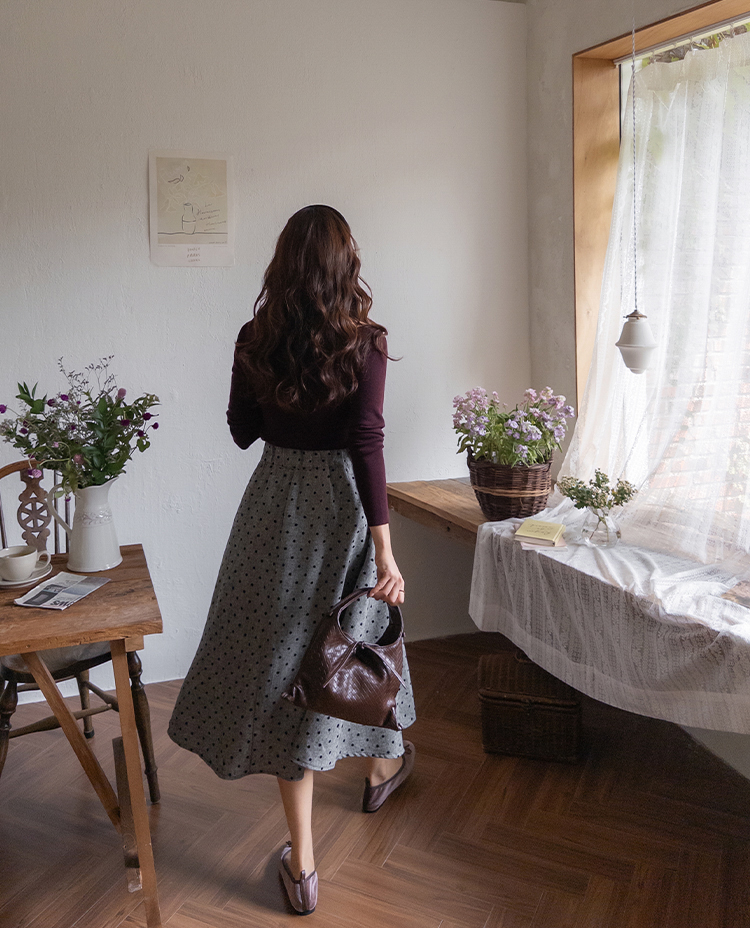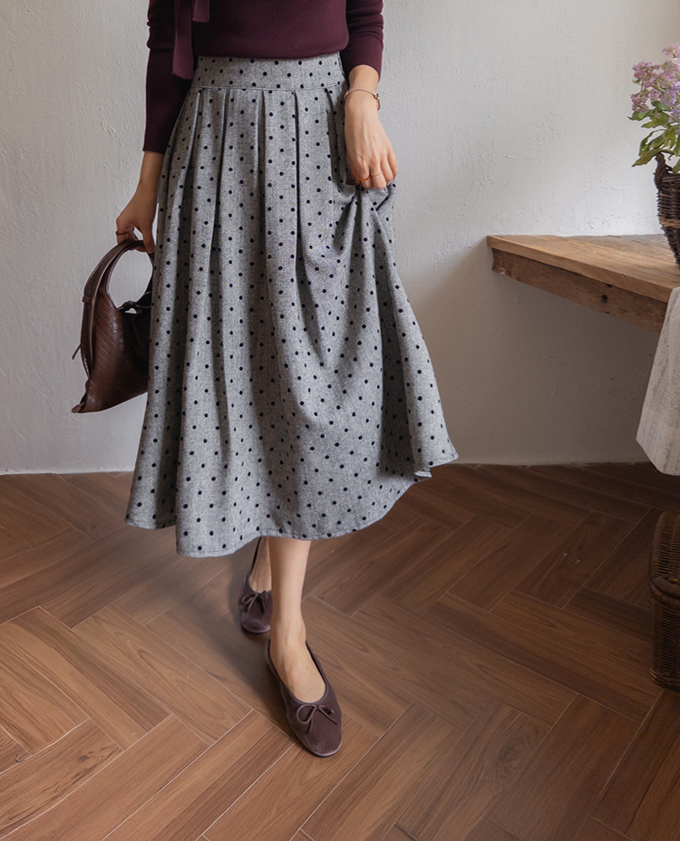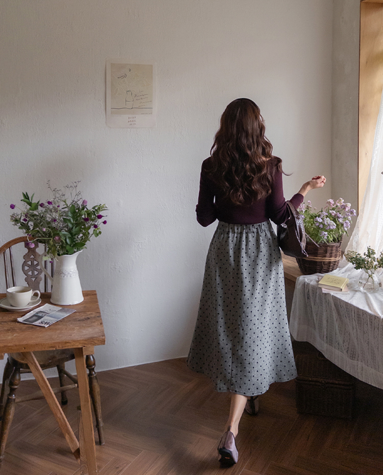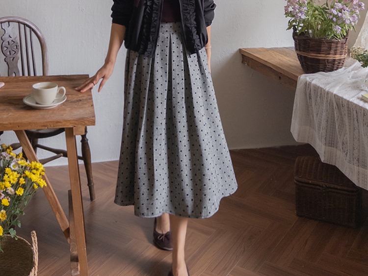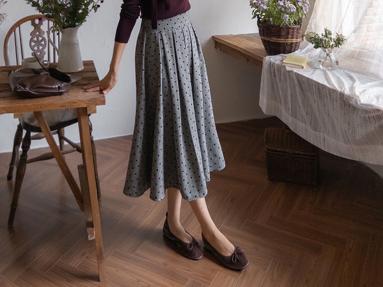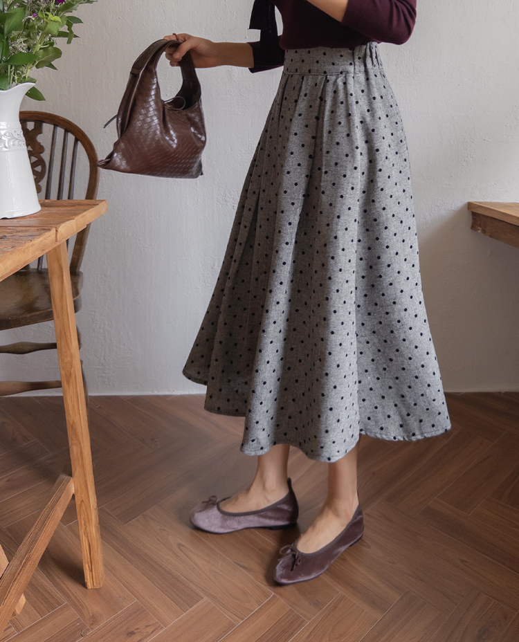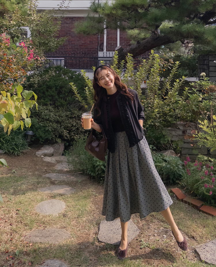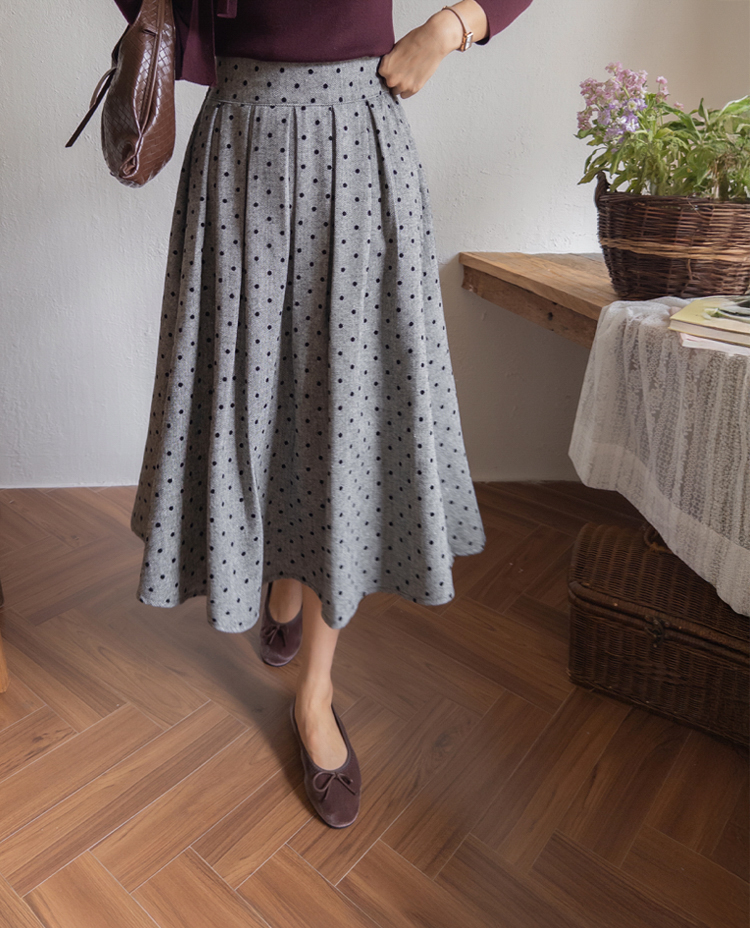 사랑스러운 도트 패턴으로 여기~저기~ 코디 활용도 높은 SK 소개드려요 ~^^ 사랑스런 도트와 플레어라인의 여성스러움이 더해져 하객룩&출근룩&데이트룩 다~ 잘 어울리는 센스있는 코디를 완성시켜줄 만능템 -!! 롱한 기장감과 플레어라인으로 완벽한 하체커버는 물론이구요~ 뒷밴딩으로 하루종일 편안하게 ㅎㅎ 차분한 컬러감에 텐셀 원단의 고급스러움이 느껴지는 두 컬러와~ 후로킹 원단으로 벨벳처럼 부드럽고 보송한 터치감이 매력적인 홈스방 차콜로 준비했어요^^ 굿초이스해주세요 ♥