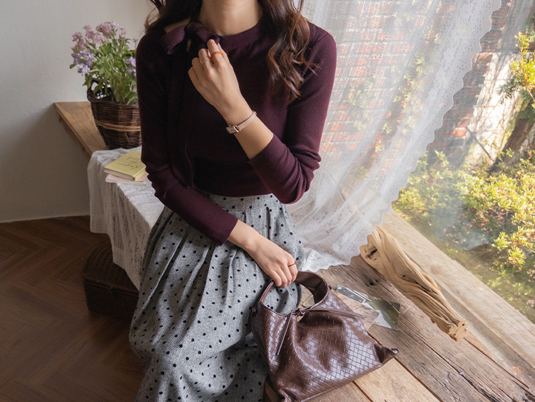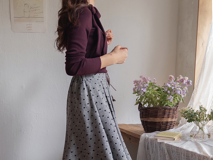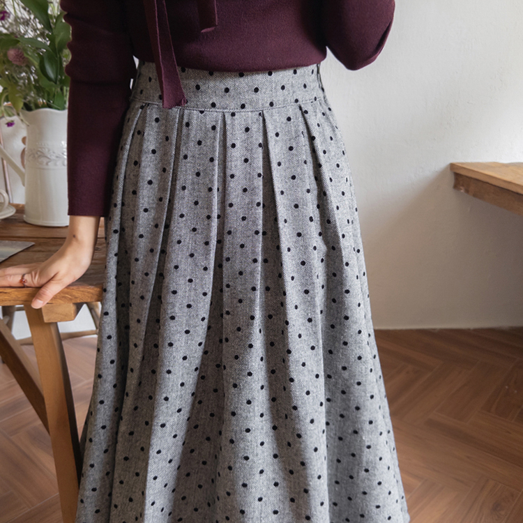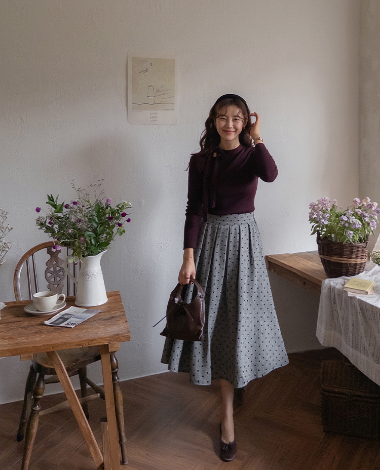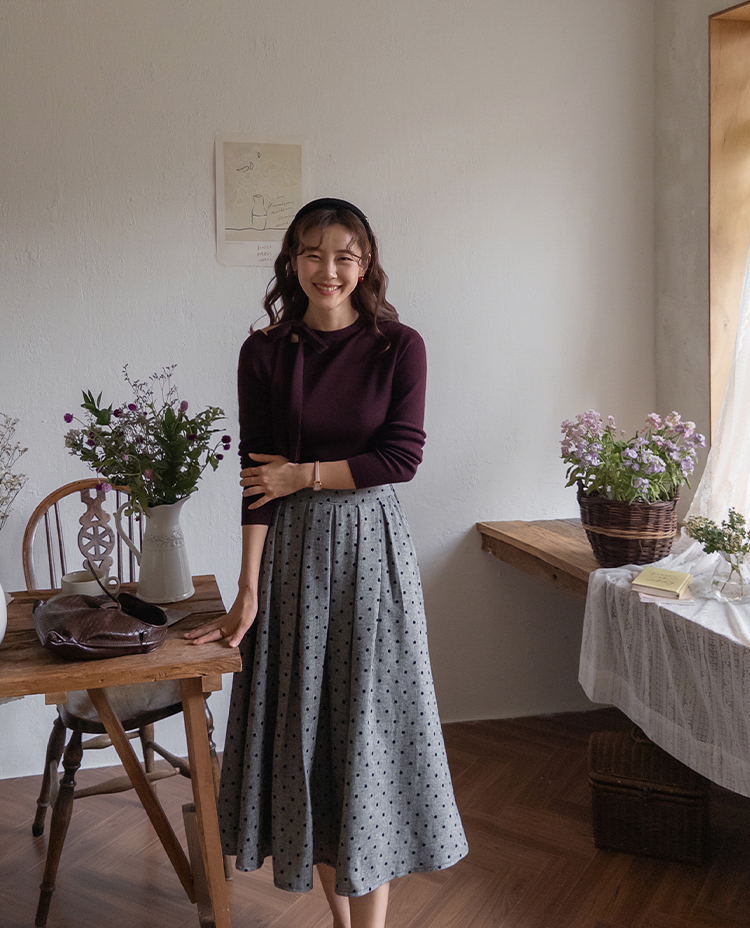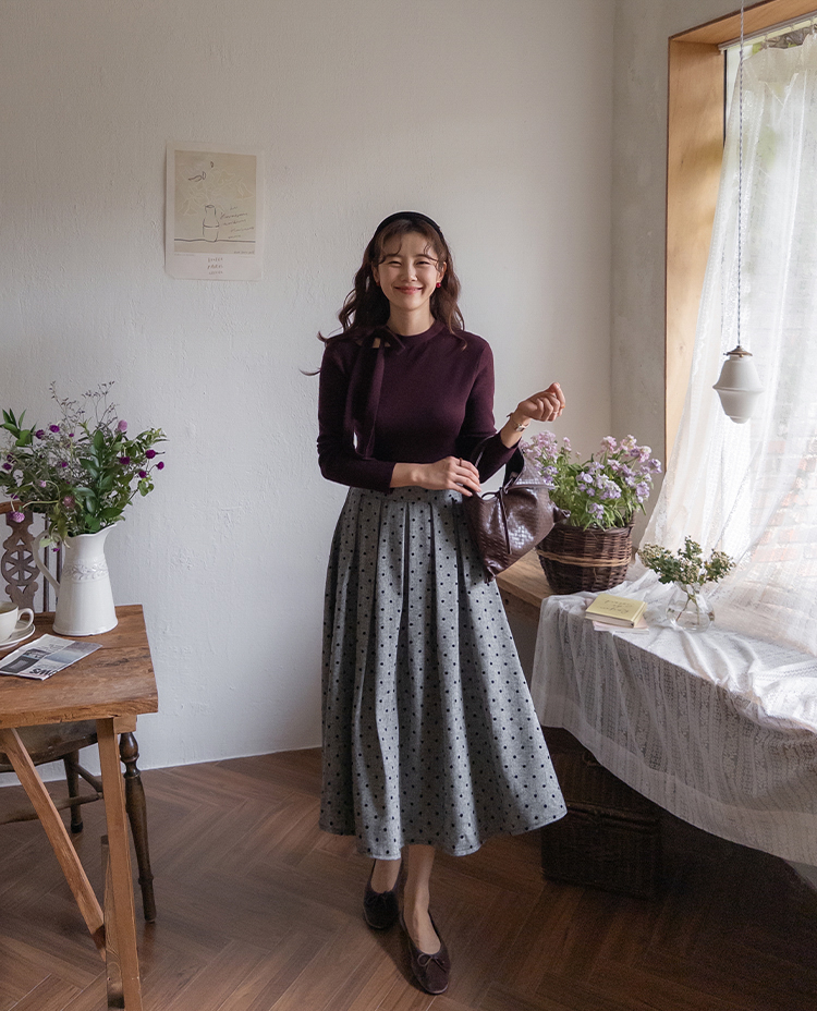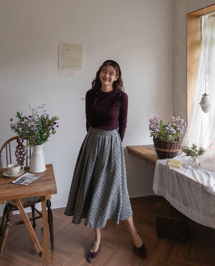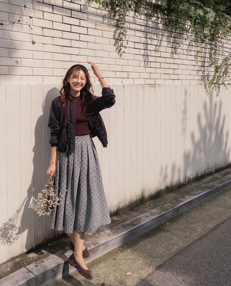 사랑스러운 도트 패턴으로 여기~저기~ 코디 활용도 높은 SK 소개드려요 ~^^ 사랑스런 도트와 플레어라인의 여성스러움이 더해져 하객룩&출근룩&데이트룩 다~ 잘 어울리는 센스있는 코디를 완성시켜줄 만능템 -!! 롱한 기장감과 플레어라인으로 완벽한 하체커버는 물론이구요~ 뒷밴딩으로 하루종일 편안하게 ㅎㅎ 차분한 컬러감에 텐셀 원단의 고급스러움이 느껴지는 두 컬러와~ 후로킹 원단으로 벨벳처럼 부드럽고 보송한 터치감이 매력적인 홈스방 차콜로 준비했어요^^ 굿초이스해주세요 ♥