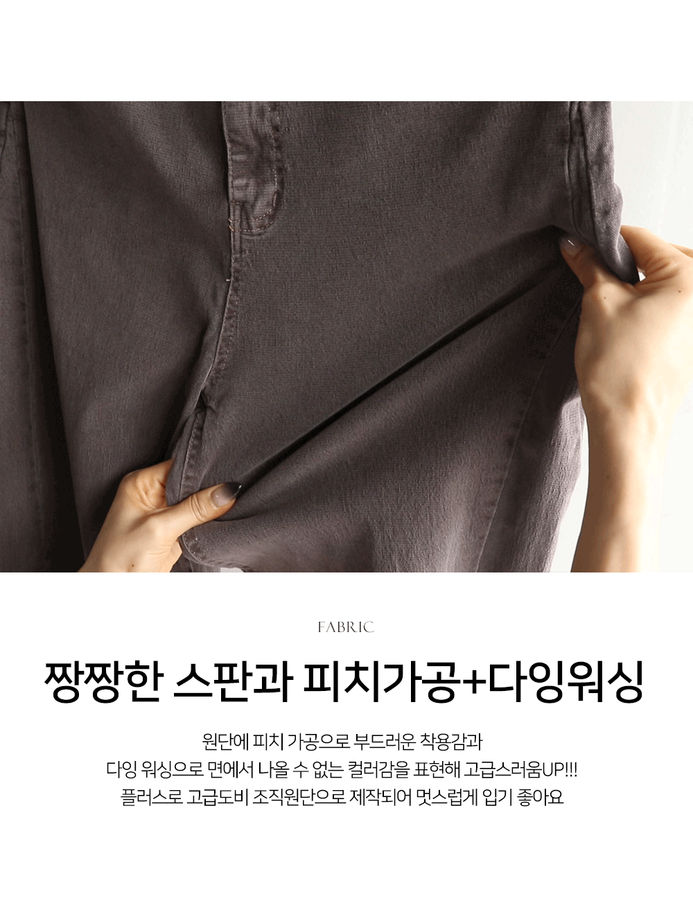 가을, 겨울 시즌 교복바지 예약! 매력만점 팬츠 보여드려요~ 삼각절개 디테일이 포인트가 되어 다리가 늘씬~해 보이는 효과가 있구요ㅎㅎ 원단에 피치 가공으로 부드러운 착용감과 다잉 워싱으로 면에서 나올 수 없는 컬러감을 표현해 고급스러움UP!!! 또, 고급도비 조직원단으로 제작되어 멋스럽게 입기 좋아요ㅎㅎ 쫀득~한 스판이 함유되어 편안한 착용감GOOD 허리 히든밴딩으로 장시간 착용하기 좋아요:) 컬러는 가을, 겨울 시즌에 찰떡인 색상들로 준비했으니까 굿초이스 하세요^^