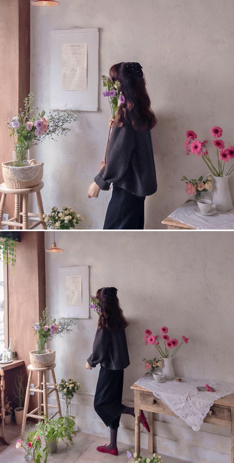 세련된 노 카라로 스카프나 목도리와 매치해서 입으시기 좋으구요~ |