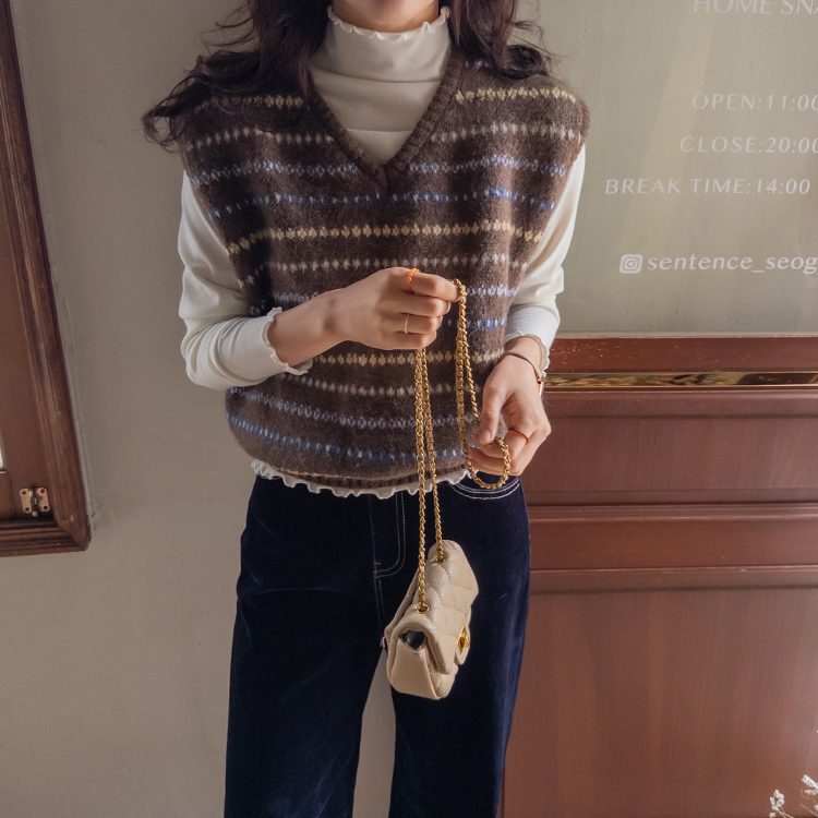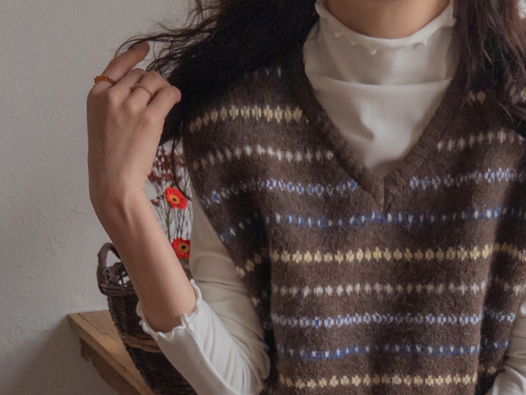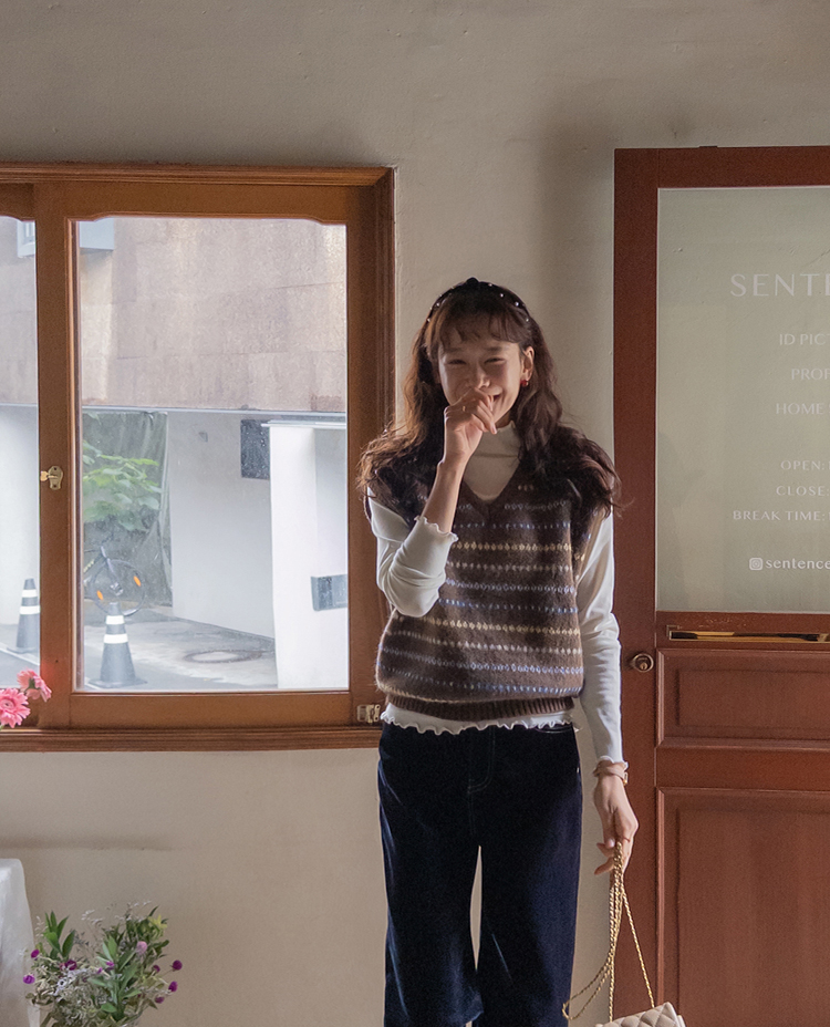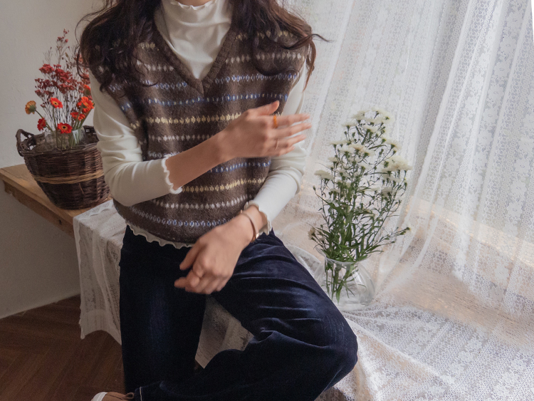 보들~보들 기분 좋고 포인트도 딱! 주기 좋은 자가드 패턴의 니트 베스트 보여드려용~ 적당한 폼으로 여러 상의와 레이어드하기 좋아 가을&겨울 무드를 만끽하기 딱 좋은 아이템*.* 피부 닿는 순간 보드러운 울 소재와 친환경적인 소재로 소장 가치를 UP ↑↑ 요런 베스트 하나 쯤 소장하시면 두루두루 다양한 코디가 가능하니 추천 드려요!^.^
