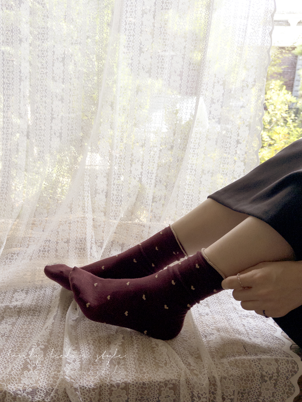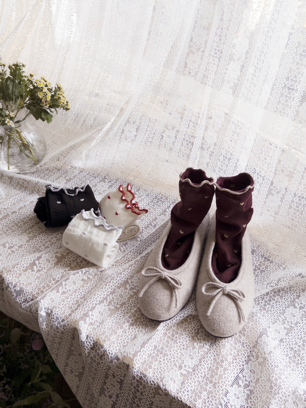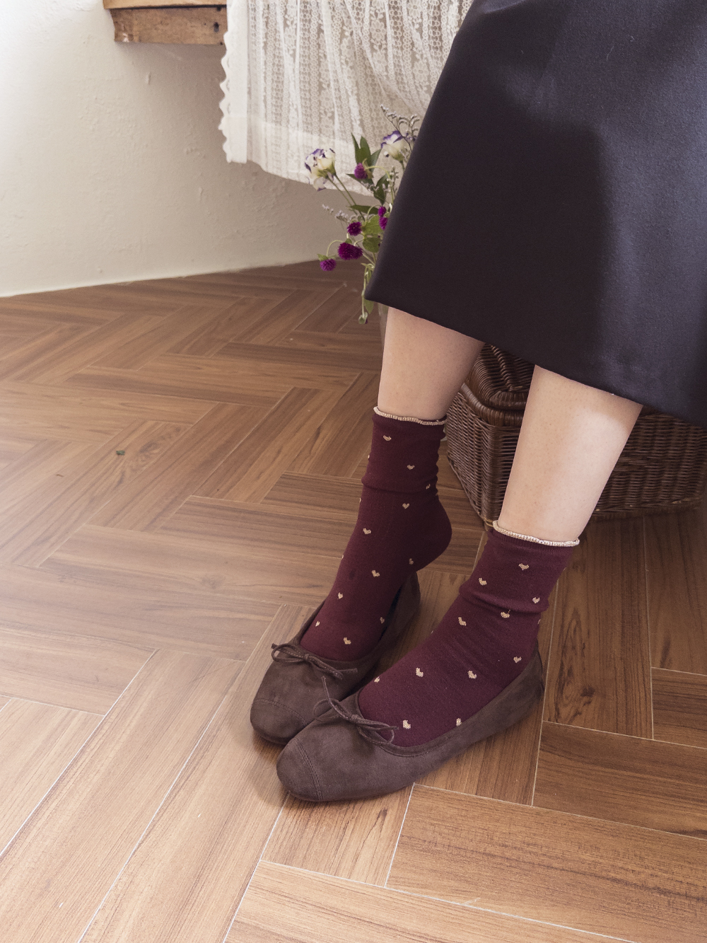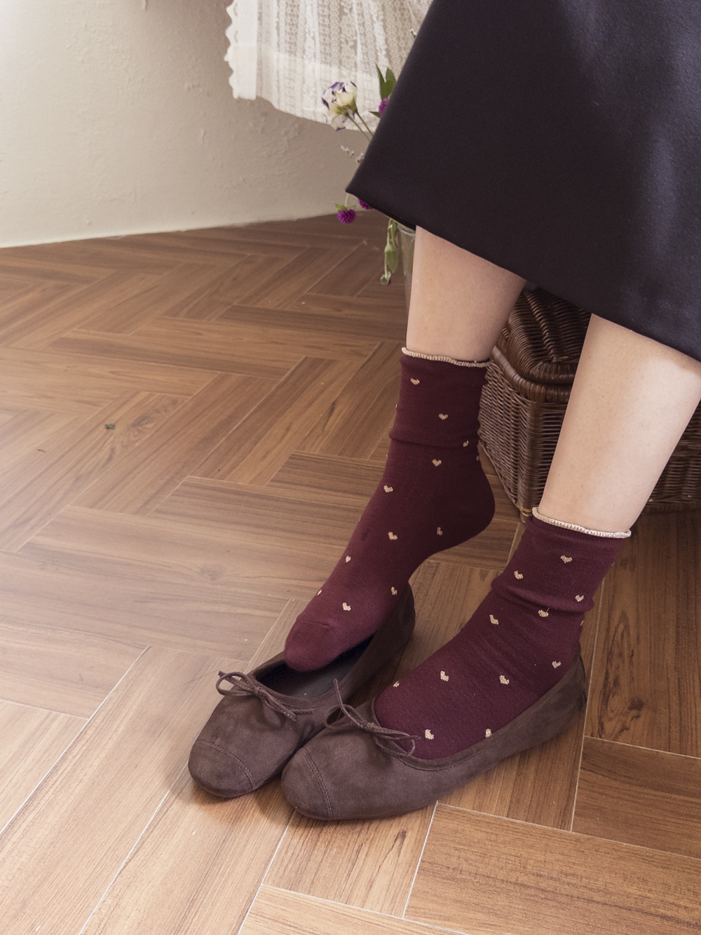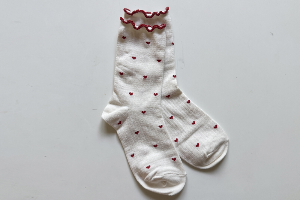 하트 패턴이 뿅~뿅~! 포인트가 되어주며~ 색마다 다 다른 프릴 배색 디테일로 러블리함 가~득 담아낸 양말이에요^.^ 양말 하나로 룩에 한층 더 특별한 포인트를 줄 수 있는 아이템~ 은은하게 반짝임도 느껴진답니다>.< 다양한 룩에 매치하여 사랑스러움을 한층 UP ↑ 시켜보세요*♥*