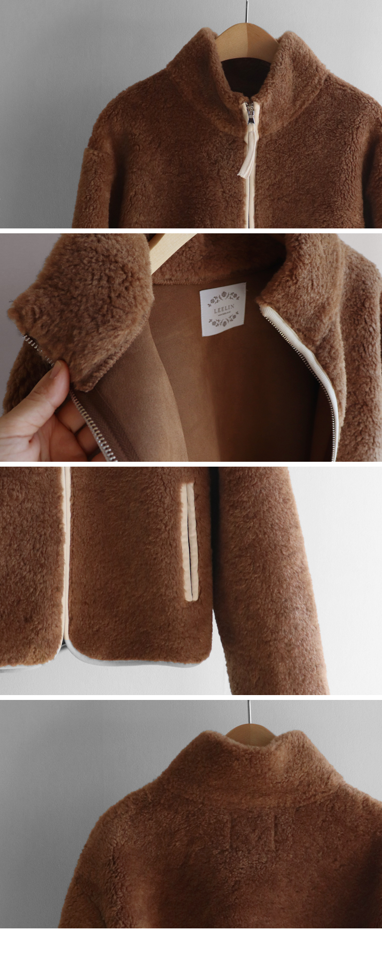폭닥~한 퍼 소재로 보기만 해도 따수운 LIN.MADE 집업 자켓 보여드려요~! 갑자기 추워진 날씨에 따듯한 아우터 찾으시는 분들 많으실텐데요 그래서 하루빨리 보여드리는 그런 집업이랍니다>< 부드럽고 적당히 도톰한 퍼 소재로 지금 날씨에 딱! 즐기기 좋은데다 안감도 부드런 스웨이드로 마무리 해주어서 완성도까지 높은 점퍼에요ㅎㅎ 집업 디자인으로 캐주얼함 한스푼 더해주었구요 소매끝단과 지퍼, 포켓부분은 배색 라이닝으로 마감해주어서 작은 부분까지도 퀄리티를 탄탄하게 챙겨주었어요:) 요런 점퍼는 자칫하면 너무 캐주얼해 보일 수 있는데요, 리린에서 만들면 달라요ㅎㅎ 앞쪽을 라운드 쉐입으로 디자인 해주어서 여성스러운 무드 한스푼 더했답니다~! 적당한 길이감에 여유있는 품으로 도톰한 이너와도 착용하기 좋구요 이너와 함께 요 점퍼 하나만 툭 걸쳐주어도 꾸안꾸 무드의 스타일링 완성*.* 또 하이넥 디자인으로 추운 겨울에도 바람이 들어오지 않도록 목까지 따숩게 디자인 해주어서 정말 추천드려요! 데일리로 부담없이 손이 갈 브라운과 차콜 두가지로 준비했구요 데일리로 꾸안꾸룩은 물론 출근룩 등 다양한 스타일링으로 착용하기 좋은, 지금 날씨에 딱 챙겨입기 좋은 점퍼니 눈여겨 봐주세요~!♡