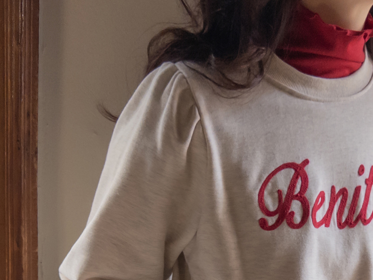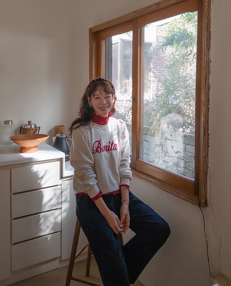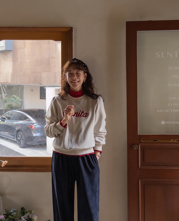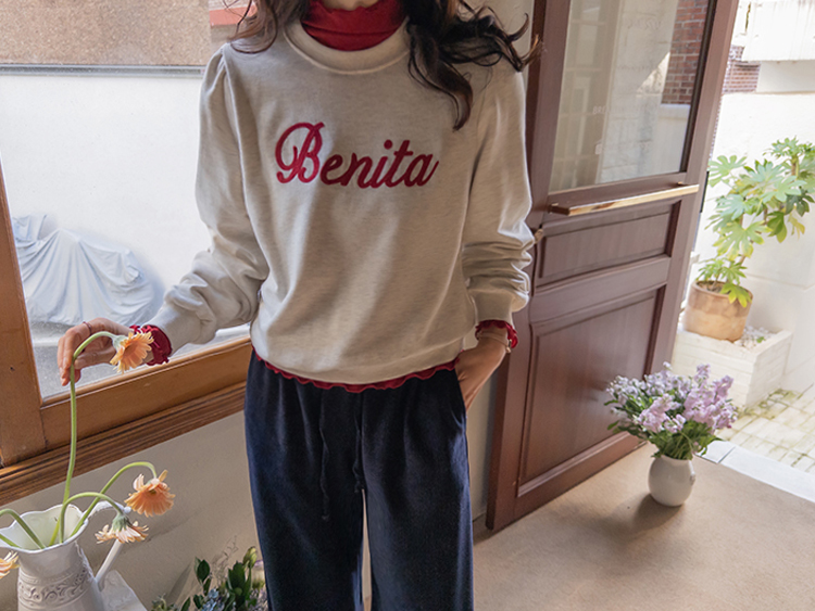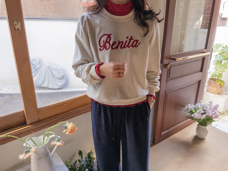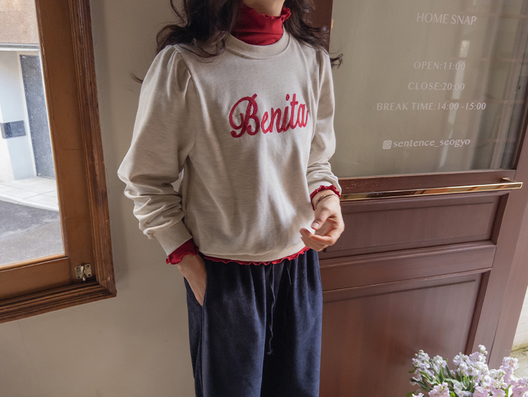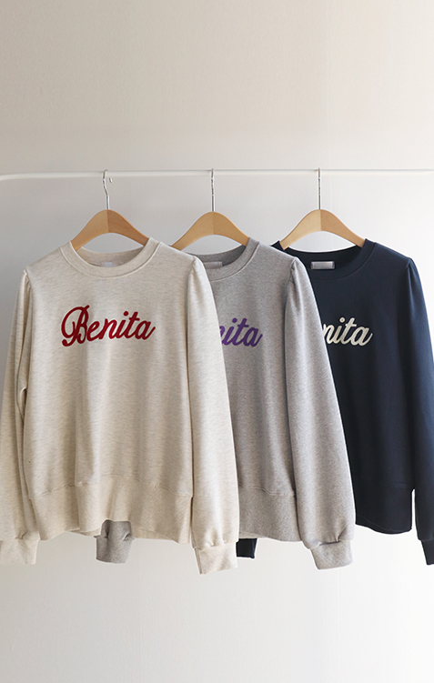 입체감이 느껴지는 자수 레터링이 포인트가 되어주는 맨투맨 보여드려요! 어깨에는 은은하게 셔링이 들어가 러블리한 분위기를 만들어 주었어요~ 뒷 밑단에는 슬릿 디테일로 활동성은 편하게! 핏은 더욱 예쁘게 잡아주어, 어떤 하의와도 찰떡으로 잘 어울린답니다ㅎㅎ 단독 & 레이어드 등 다양한 스타일을 완성해 보세요~♥