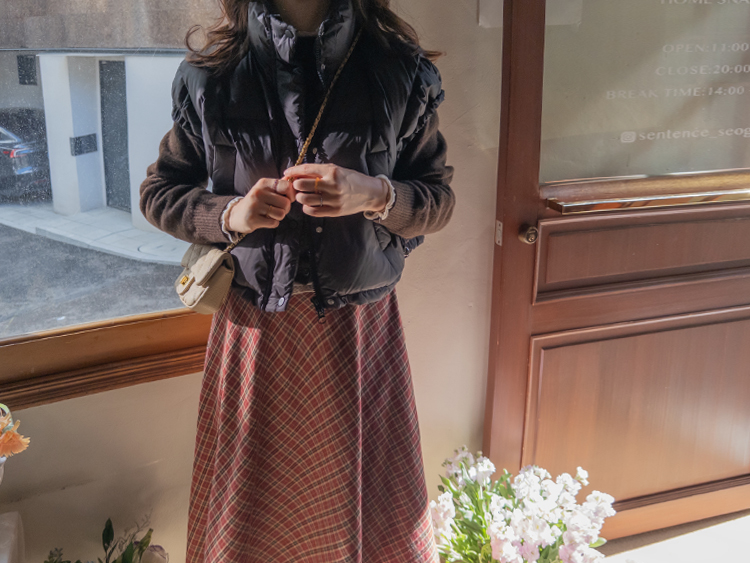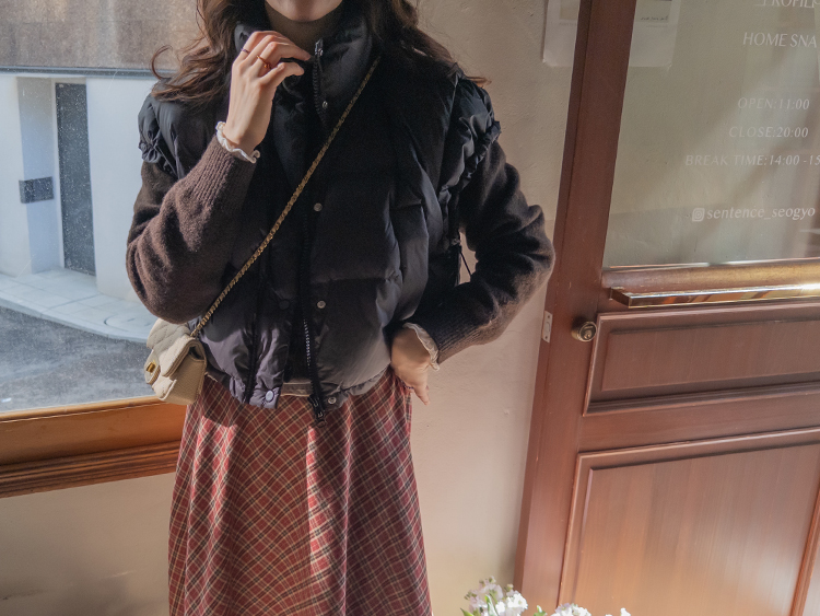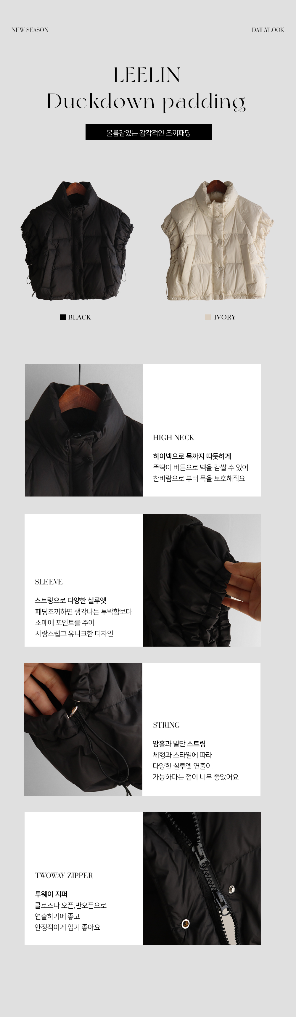 풍성한 볼륨감이 살아있는 실루엣에 세련된 겨울룩을 완성해 줄 조끼패딩*.* 오리털 100% 충전재로 정말 가볍지만~ 뛰어난 보온성으로 포근하게 감싸줘요 암홀과 밑단에는 쭉쭉 편하게 늘어나는 조절 가능한 스트링이 있어~ 체형과 스타일에 따라 다양한 실루엣 연출이 가능하다는 점이 너무 좋았어요~ 다양한 연출 가능한 투웨이 지퍼 디테일도 포인트! 두꺼운 니트, 맨투맨 위에도 가볍고 멋스럽게~ 데일리하게 즐기기 좋은 아이템이니 놓치지 말아요♥