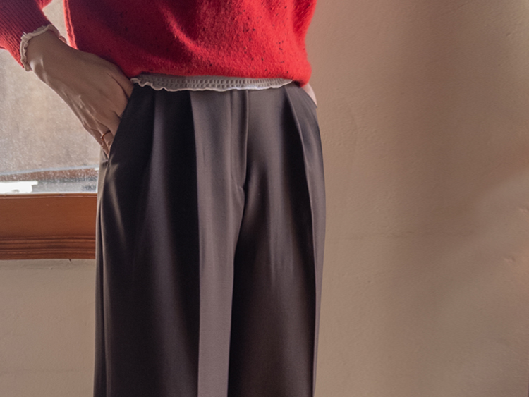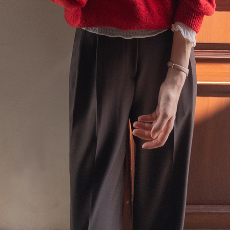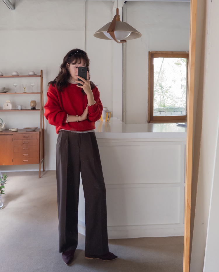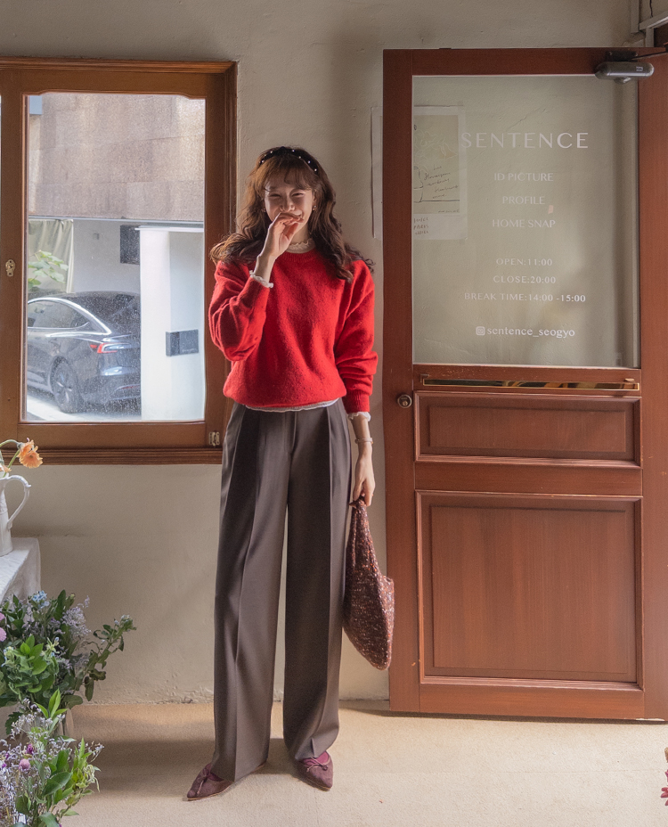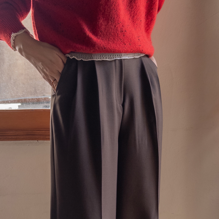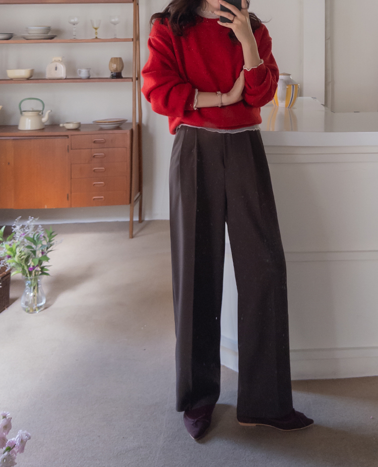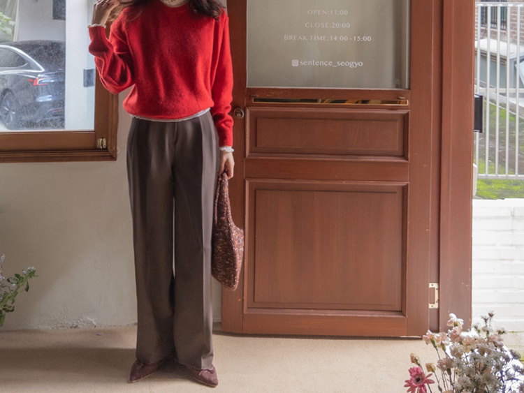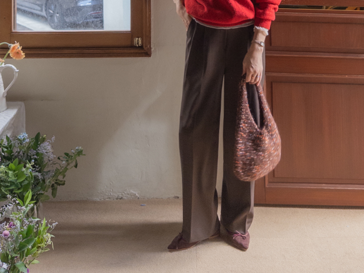 딥한 초코라떼같은 컬러감이 넘 매력적인,,♡ LIN.MADE 투턱 슬랙스 보여드릴게요~! 리린의 슬랙스는 정말 많은 분들이 좋아하시는데요ㅎㅎ 그동안 보여드렸던 슬랙스에 이어 이번에도 고퀄리티 원단과 많은 수정 끝에 완벽한 핏으로 제작해서 보여드려요:) 우선 원단은 쫀쫀 스판이 더해진 원단으로 탄탄하면서도 신축성이 있는데요 그래서 슬랙스이지만 편안한 착용감이 요 아이의 강점이에요! 게다가 후들후들~ 찰랑하게 떨어지고 링클프리 가공이 된 원단으로 구김도 없어서 하루종일 입어도 처음과 같은 최상의 퀄리티를 느껴보실 수 있으실 거에요~ 투턱 디자인으로 허리부분의 시선을 분산시켜주어서 체형커버도 가능하구요~ 세미와이드 실루엣으로 다리라인의 전체적인 커버도 가능해서 핏 또한 완벽하답니다ㅎㅎ 허리는 잘 잡아주면서 전체적으로 다리라인은 커버하고 다리가 길어보이게 만들어주는 실루엣을 위해 몇번을 수정해서 보여드리는 만큼 실제로 착용해보시면 더욱 만족스러우실 그런..♡ 안쪽 부분은 모두 가름솔 처리를 해주어서 착용시 울퉁불퉁 우는 부분 없이 깔끔한 실루엣으로 떨어진다는 점도 요 팬츠의 장점이에요*.* 블랙은 이미 많은 분들이 소장하고 계신만큼 어떤 컬러가 데일리로 부담없으면서도 고급스러울까 고민하다 딥한 브라운 컬러로 보여드려요~ 초코라떼같이 딥하고 무드감이 물씬 느껴지는 컬러까지 더해져 무엇하나 빠지지 않고 완벽한 팬츠이니 꼬옥 소장해주세요~♥