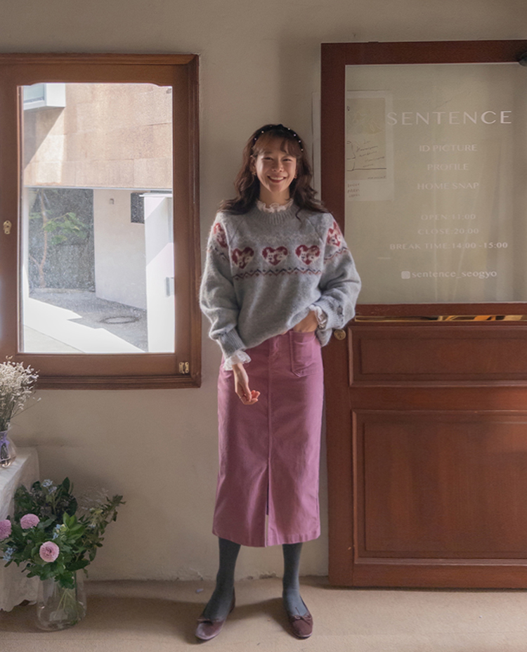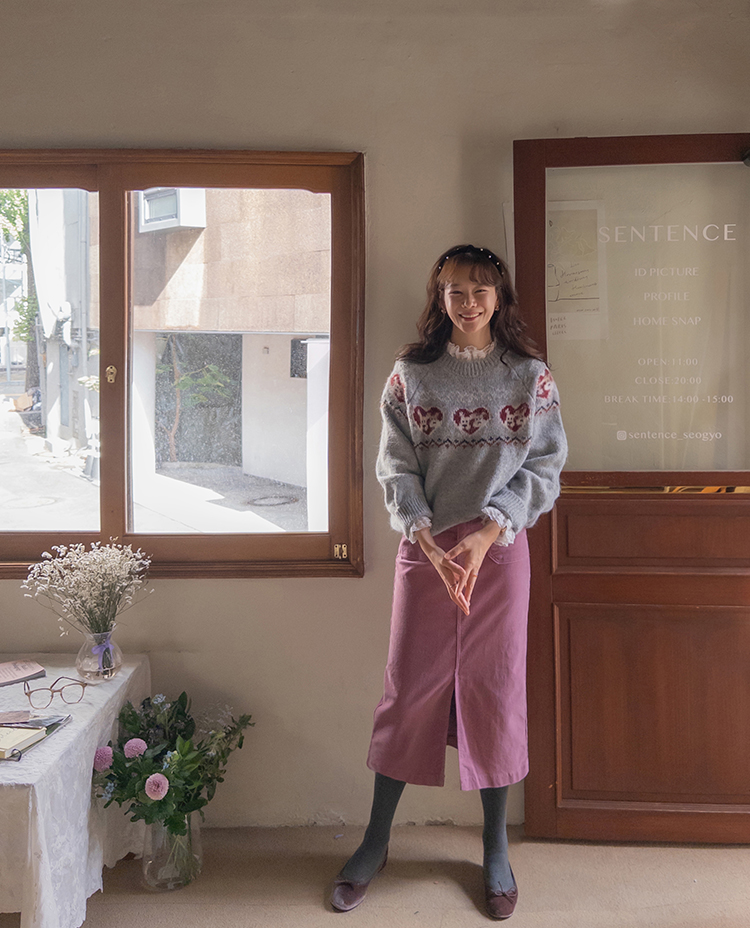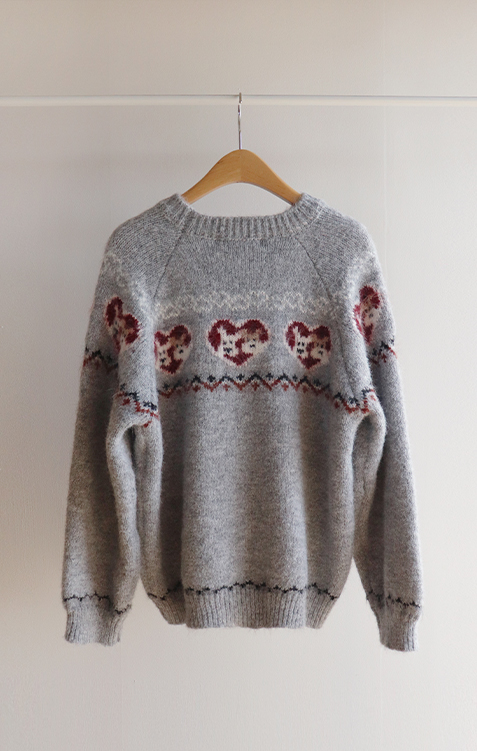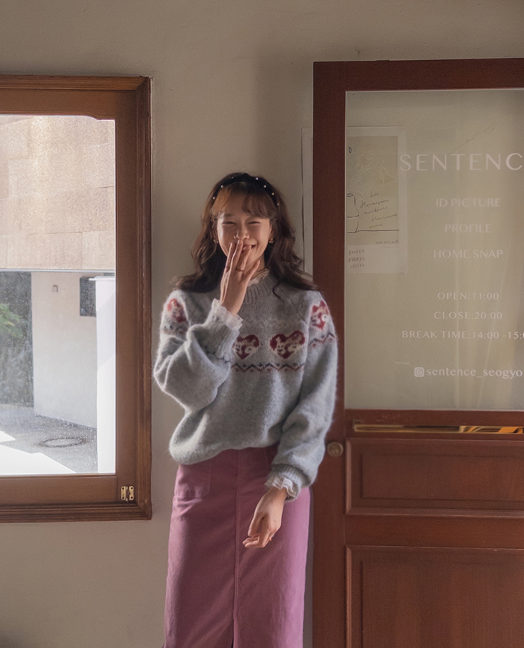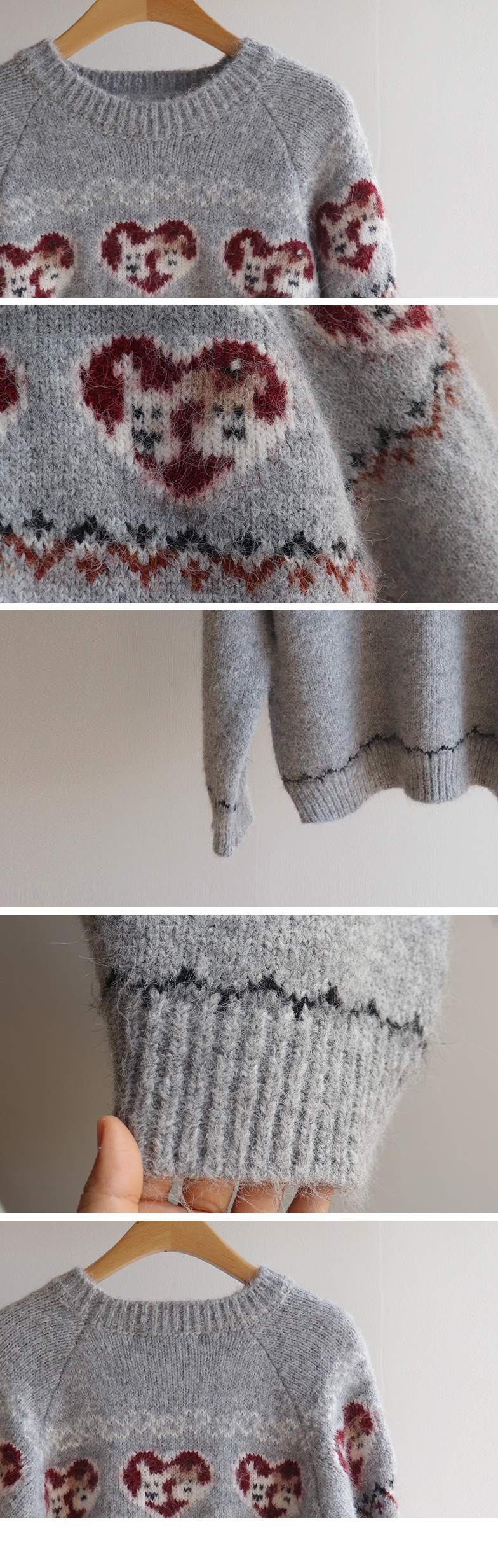 이번 겨울, 소장할 수 밖에 없는 매력적인 니트 아이템 데려왔어요*.* 몽글몽글~ 굵고 도톰한 울 블렌딩 소재로 니트 하나만 입어도 따뜻함이 느껴져 한겨울까지 든든하게 착용하기 좋아요! 하트 속 강아지 패턴으로 러블리한 매력까지 더해져 소장미 가득하답니다~♥ 루즈하고 박시한 실루엣이지만 부해보이지 않고 여리한 무드 낭낭하게 입어지구요 보송하고 포근한 무드로 너무너무 귀엽게 활용하기 좋아 적극 추천드려요~^^*