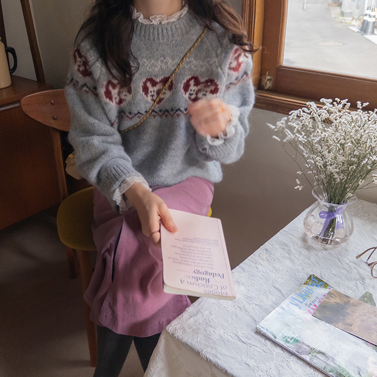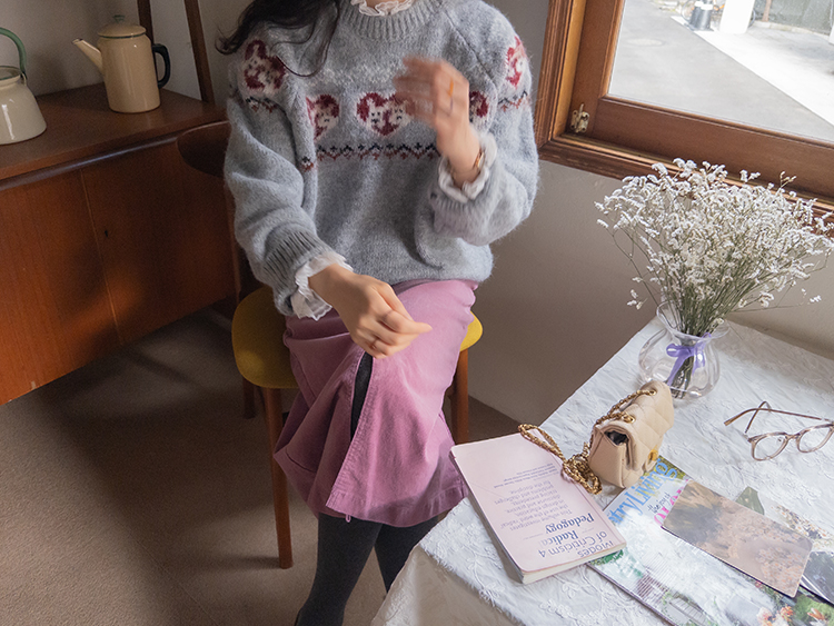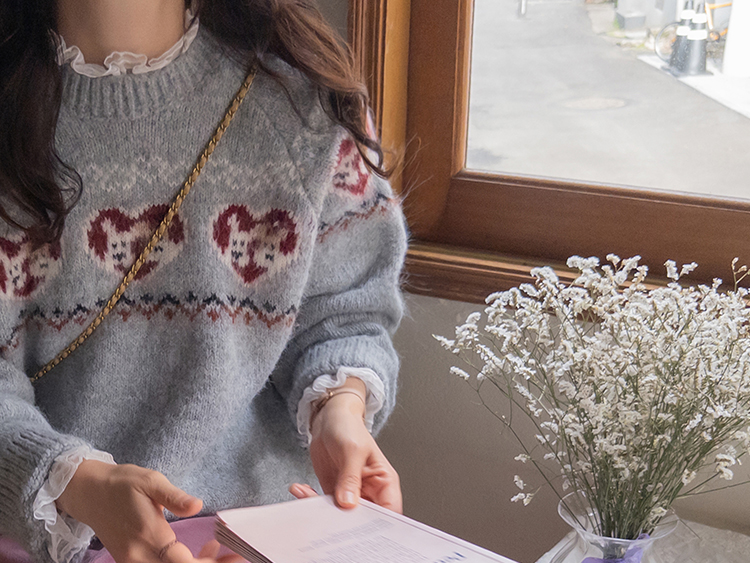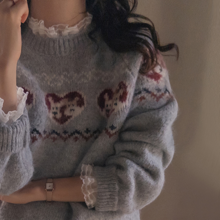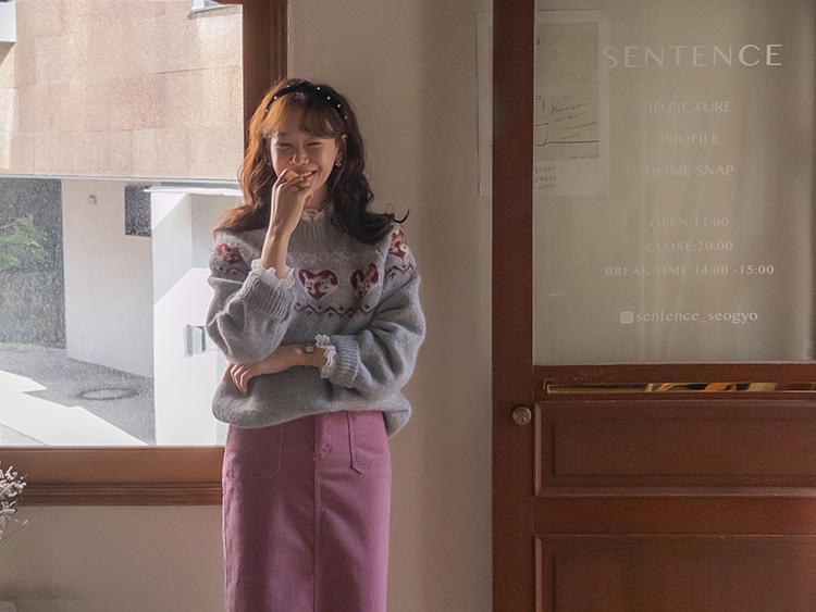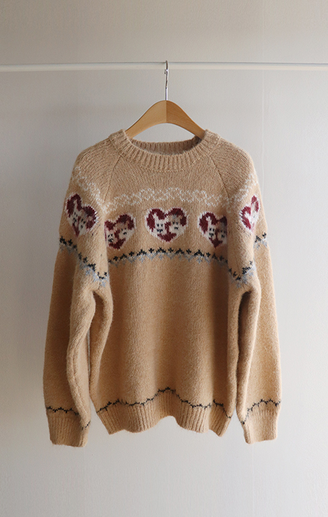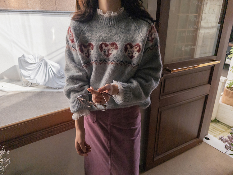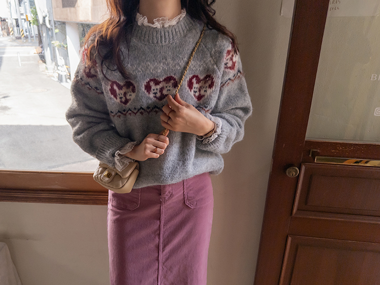 이번 겨울, 소장할 수 밖에 없는 매력적인 니트 아이템 데려왔어요*.* 몽글몽글~ 굵고 도톰한 울 블렌딩 소재로 니트 하나만 입어도 따뜻함이 느껴져 한겨울까지 든든하게 착용하기 좋아요! 하트 속 강아지 패턴으로 러블리한 매력까지 더해져 소장미 가득하답니다~♥ 루즈하고 박시한 실루엣이지만 부해보이지 않고 여리한 무드 낭낭하게 입어지구요 보송하고 포근한 무드로 너무너무 귀엽게 활용하기 좋아 적극 추천드려요~^^*