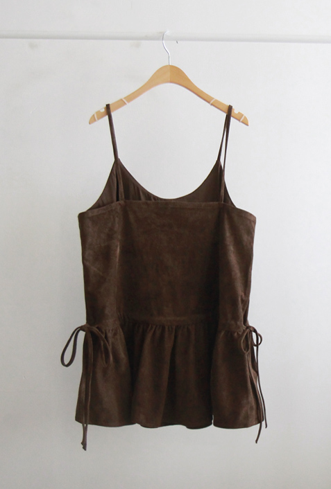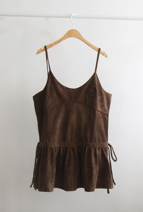 【スエード生地のユニークなビスティエ】【両ストリングはサイズ調節してリボン縛っていただければ美しいです】 【カラー感のため雰囲気のあるムードを載せました】