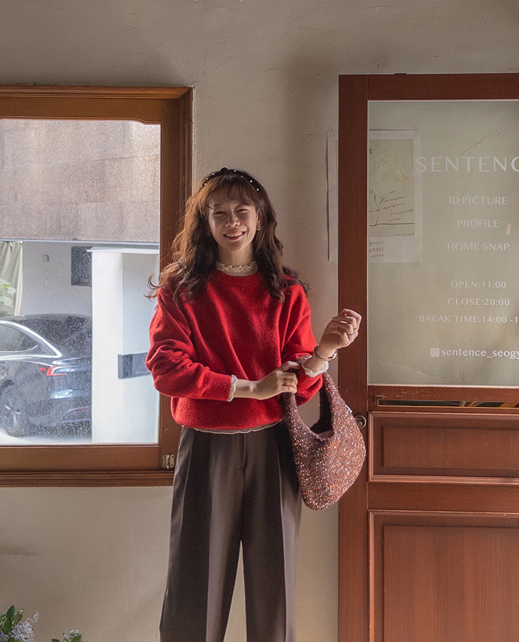 깔끔한 디자인에 보카시를 더해 은은한 센스가 돋보이는 F/W 시즌 필수 아이템 라운드 니트♥ 소프트한 램스울 소재로 부드러운면서 따뜻해서 추운 날씨에 자꾸만 손이 가는 니트랍니다! 톡톡한 두께감으로 한겨울 시즌까지 쭈욱 즐기기 좋고 여유있는 핏이라 이너티, 블라우스 등과 레이어드해서 코디하기 좋아 적극 추천드려요:) 은은하게 포인트가 되어주는 보카시 디테일로 하나만 입어도 완성도 있는 룩 연출은 물론~^^ 데일리한 컬러부터 포인트 컬러까지 총 8컬러로 준비했으니 여러장 소장하셔서 다양하게 활용하기도 딱 좋답니다~♥