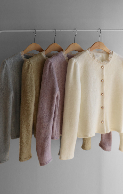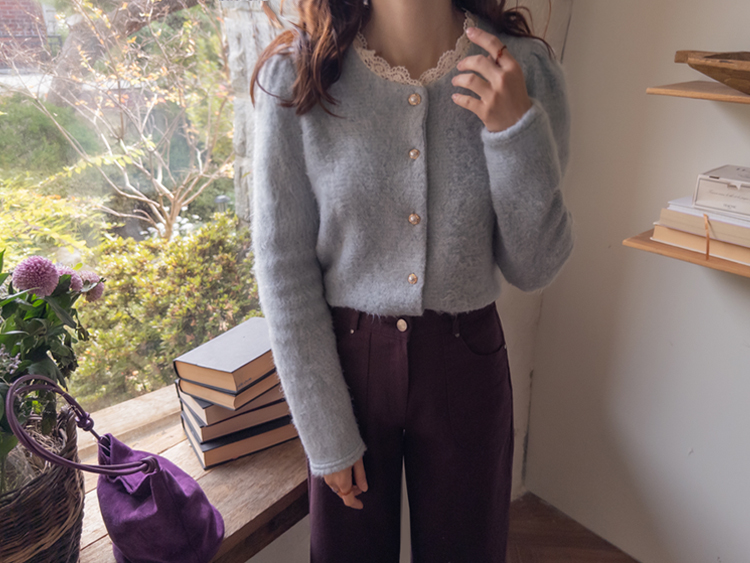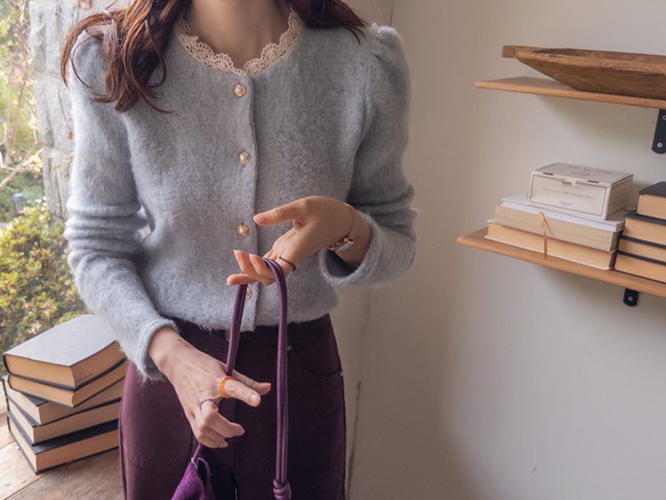 보들보들~한 촉감이 매력적인 활용도 만점 가디건 소개드려요 ~♥ 부드러운 감촉감으로 예민한 피부도 단독으로 좋구요~ 가을엔 가볍게 가디건처럼~ 겨울엔 아우터 안에 겨울 블라우스로 활용하기 좋아 코디 만점템-!! 러블리한 넥라인 레이스와 고급스러운 진주버튼으로 하객룩/출근룩/데이트룩에 너무 좋아요~:D 러블리한 어깨퍼프로 봉긋~하니 상체커버에도 좋으니 러블리한 겨울룩 리린과 함께 준비해요~♥