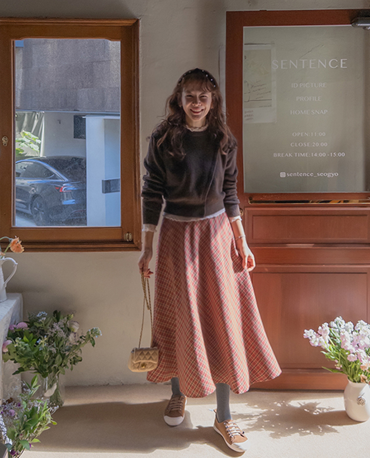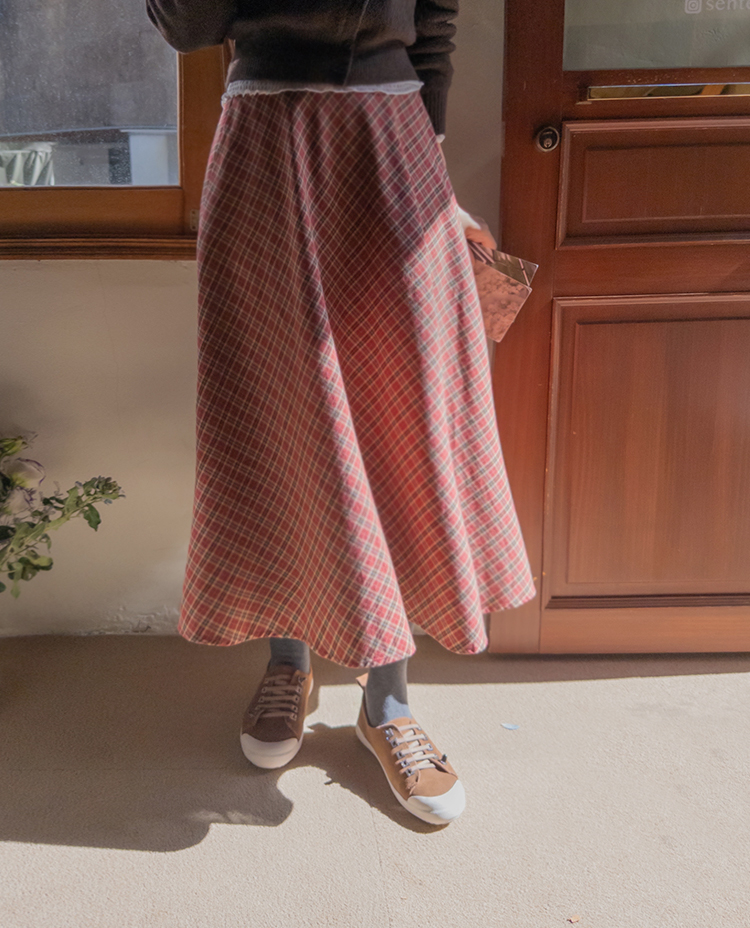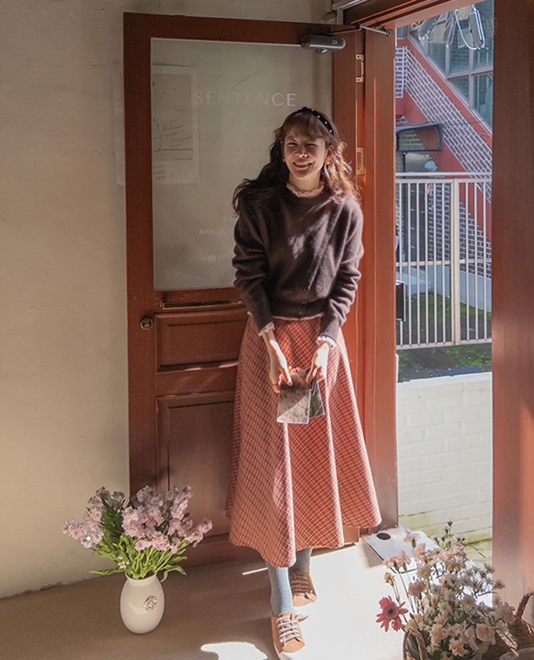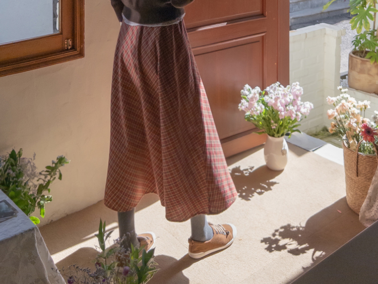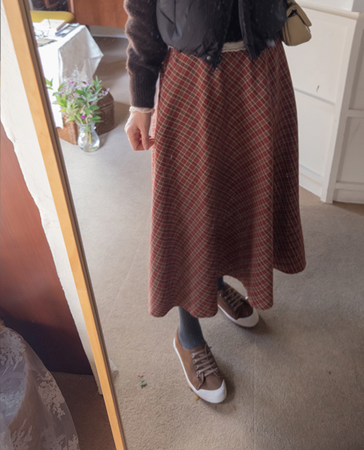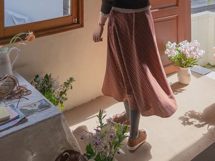 FW느낌 낭낭~하니 무드있는 컬러감의 린메이드 체크 스커트 보여드릴게요~! 요 스커트, 풍성한 훌라인으로 여성스러운 매력이 가득 넘치는 그런 아이인데요 요척을 정말 아낌없이 사용해주어서 자연스레 지는 훌라인이 넘 고급지고 사랑스럽답니다ㅎㅎ 그래서 걷거나 활동시에 풍성하게 퍼지는 라인감이 돋보여 실생활에서 착용하시면 더욱 만족스러우실 그런 스커트일거에요:) 허리는 뒷밴딩으로 제작해주어서 허리부분 조임없이 하루종일 착용해도 편하게 착용되구요 실루엣 자체도 풍성해서 다리라인을 완벽하게 보정해주는 핏이라 허리는 쏘옥 들어가보이고 하체라인도 커버해주어서 체형보정 효과도 톡톡해요:) 컬러감도 지금 시즌에 잘 어울리는 아이들로 셀렉해 주었구요, 리린 고객님들이라면 좋아하실만한 컬러감이니 꼭 눈여겨 봐주세요~♡