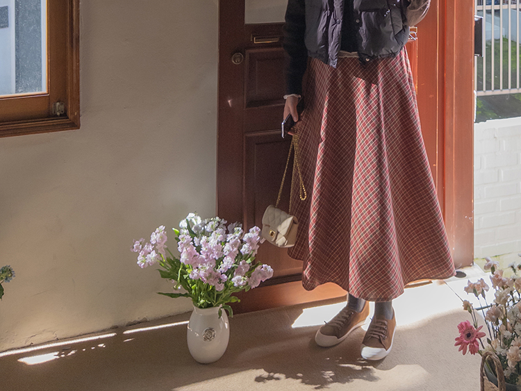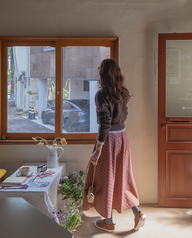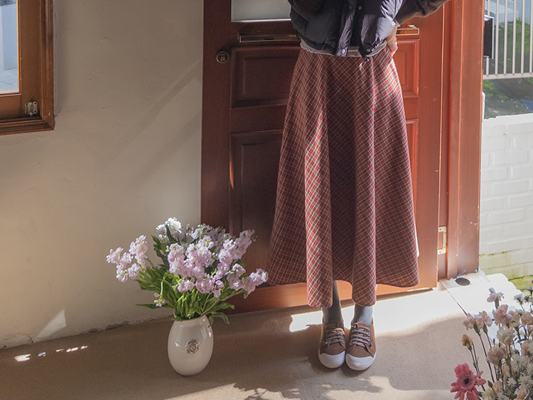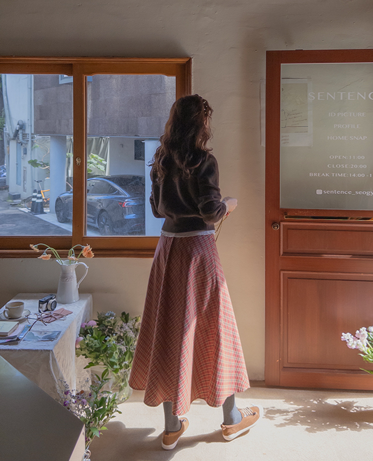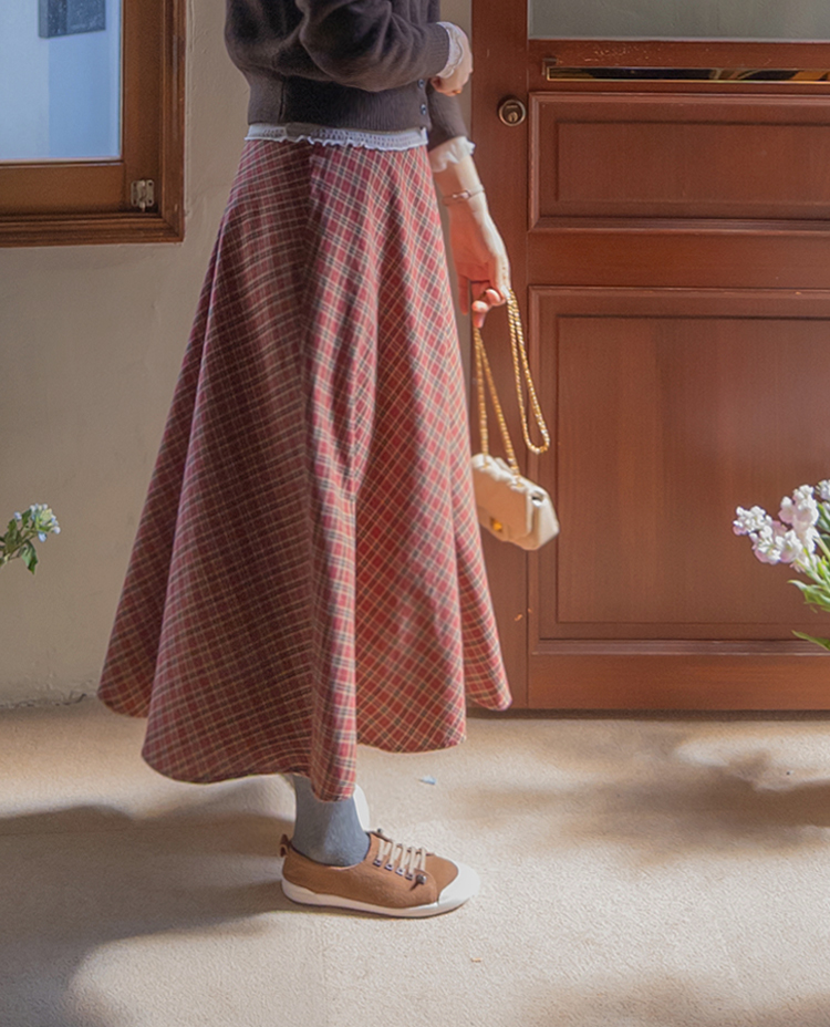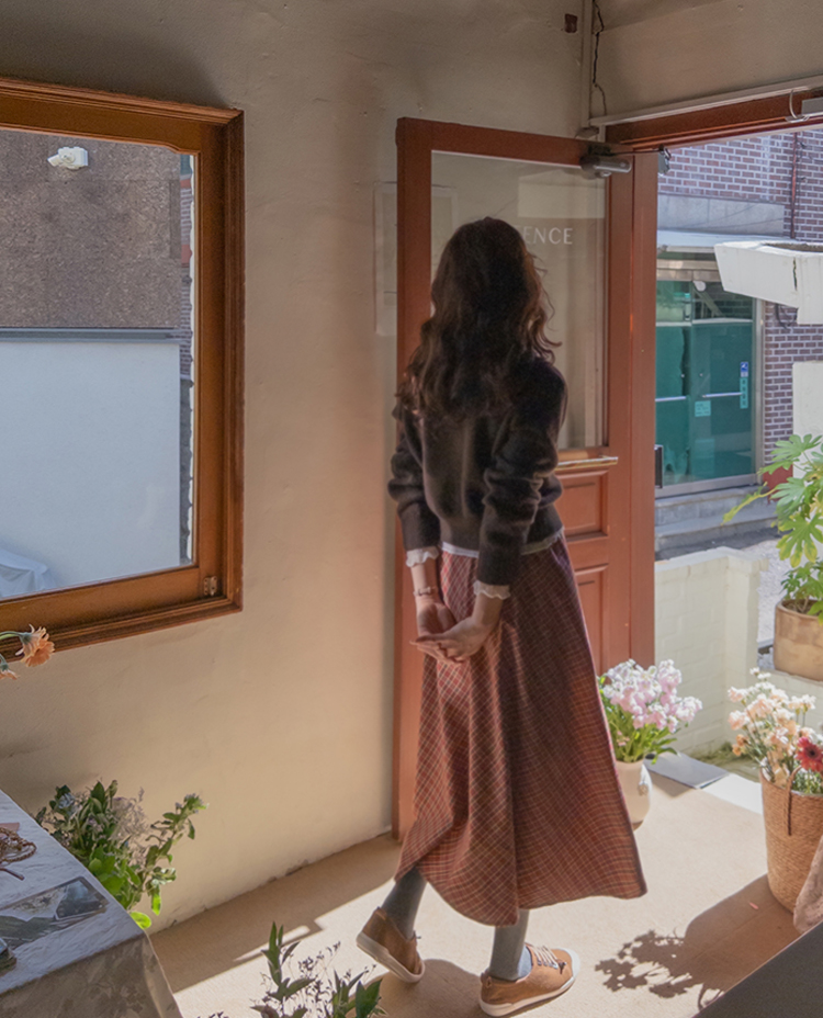 FW느낌 낭낭~하니 무드있는 컬러감의 린메이드 체크 스커트 보여드릴게요~! 요 스커트, 풍성한 훌라인으로 여성스러운 매력이 가득 넘치는 그런 아이인데요 요척을 정말 아낌없이 사용해주어서 자연스레 지는 훌라인이 넘 고급지고 사랑스럽답니다ㅎㅎ 그래서 걷거나 활동시에 풍성하게 퍼지는 라인감이 돋보여 실생활에서 착용하시면 더욱 만족스러우실 그런 스커트일거에요:) 허리는 뒷밴딩으로 제작해주어서 허리부분 조임없이 하루종일 착용해도 편하게 착용되구요 실루엣 자체도 풍성해서 다리라인을 완벽하게 보정해주는 핏이라 허리는 쏘옥 들어가보이고 하체라인도 커버해주어서 체형보정 효과도 톡톡해요:) 컬러감도 지금 시즌에 잘 어울리는 아이들로 셀렉해 주었구요, 리린 고객님들이라면 좋아하실만한 컬러감이니 꼭 눈여겨 봐주세요~♡