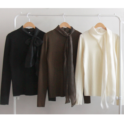 우선 부드럽고 유연하고 쫀쫀한 신축성으로 이너로 입기에 너무 좋은 착용감과 텍스쳐로~ 호불호 없이 누구나 좋아하실 니트구요~ 부드럽고 유연한 세틴 느낌의 넥 소재로~ 리본으로 묶으셔서 러블리하게 입으셔도 좋구요~ 한번 묶으셔서 타이처럼 늘어뜨리셔도 좋아요~ 저는 제일 타이를 뒤로 묶어서~ 앞 부분은 세틴이 주는 유연한 반폴라로 깔끔하게 입는게 제일 이쁘더라구요~ 좋아하시는 느낌 또는 코디용으로` 다 이쁘게 입으시기 좋구요~ 사이즈가 몸에 살짝 핏되지만 부담스럽지 않는 이너로 입기에 제일인 사이즈감이 55-66까지 다 좋으실것 같아요~ 컬러별로도 권해 드리고 싶은 활용도 좋은 반폴라 니트~ 길이감은 골반을 충분히 덮고 남음이 있는 정도로~ 넣어서 단정하게 입으셔도 좋구요~ 꺼내서 입으셔도 좋으실것 같아요~ 원단이 너무 얇지 않고 이너로 따스한 정도의 두께감이라~ 한 겨울에 보온성까지 업해드릴꺼랍니다~ 진심 사심을 담뿍이 담아 강추 강추 드려요~^^