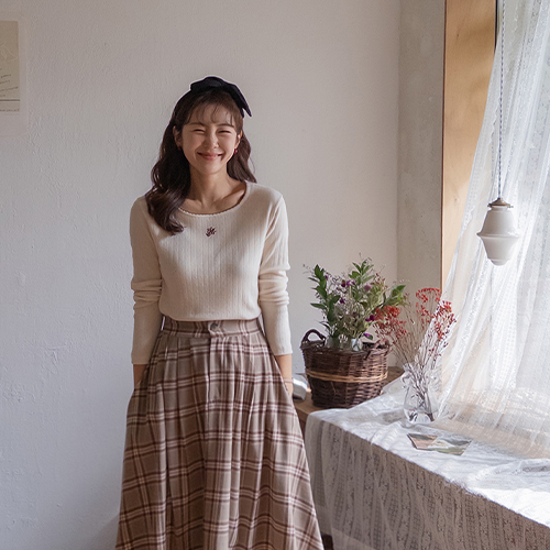 짱짱~하게 늘어나는 신축성 좋은 펀칭 원단에 넥부분 배색 트리밍으로 포인트를 주어 기본인듯~ 디테일을 살려준 티셔츠 보여드릴게요~! 요런 긴팔 티셔츠는 하나 소장하시면 시즌리스하게 단독&이너로 활용도 높게 입기 좋은 아이템인데요ㅎㅎ 미니멀한 펀칭이 들어가 있어서 은근한 사랑스러움이 느껴지는 골지 원단에 세로결 골지 라인으로 상체라인이 전체적으로 늘씬해 보이는 효과까지 있답니다~ 게다가 요 아이의 포인트! 바로 넥 배색 디테일인데요~ 넥라인에 물결 쉐입으로 트리밍을 더해주었구요 넥 아래부분에 플라워 자수를 더해주어서 밋밋하지 않고 포인트가 되도록 만들어 주었어요*.* 스탠다드한 실루엣으로 데일리 티셔츠로도 좋구요 기본 티셔츠처럼 매일 입기 좋지만 무언가 포인트가 있는 아이 찾으셨다면 강추! 컬러도 크림, 블랙 두가지로 보여드리니 취향에 따라 초이스 해주셔서 예쁘게 즐겨주세요~♡