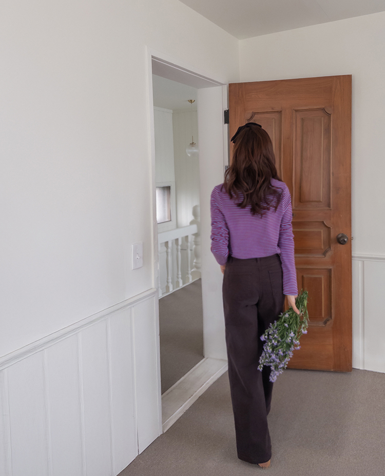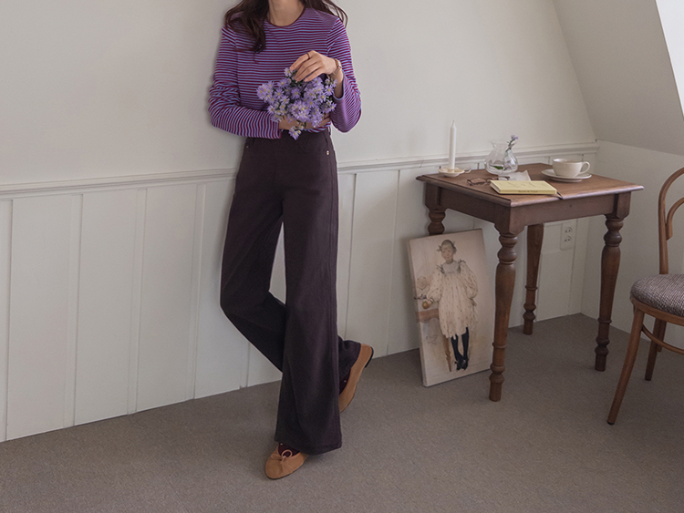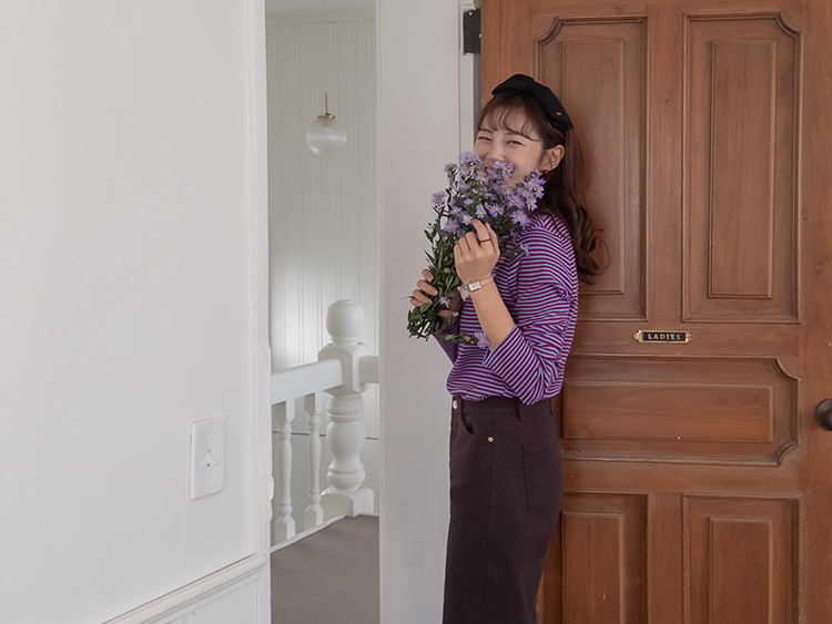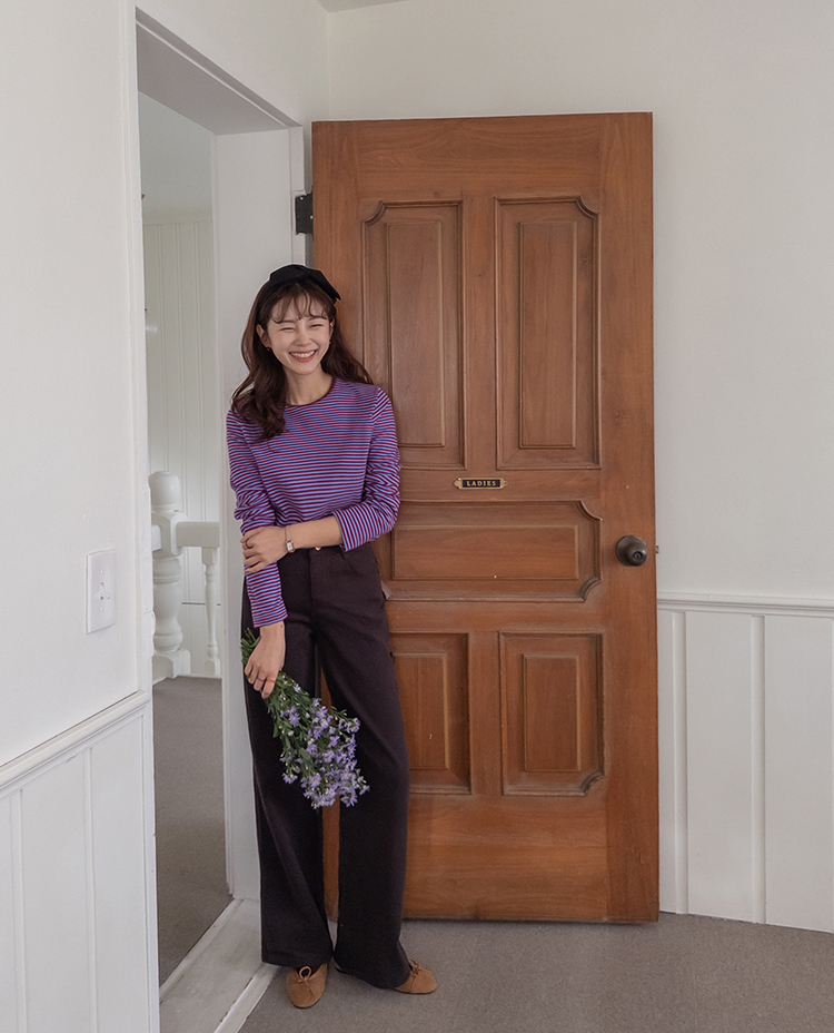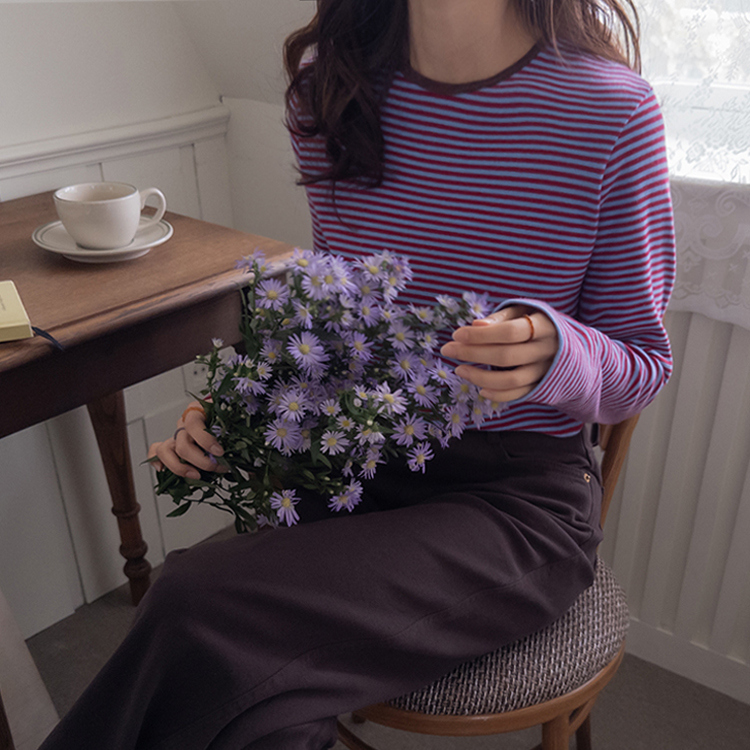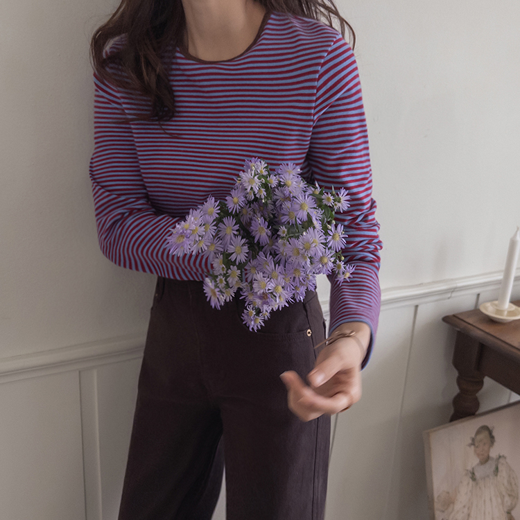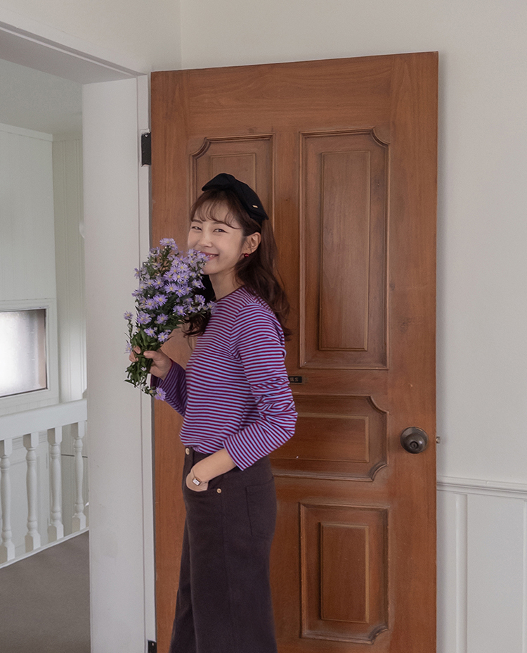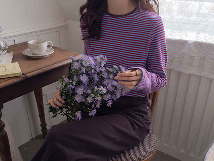 치즈처럼 쭈~욱 늘어나는 스판력 200% 원단에 넘 부드럽고 도톰한 원단으로 FW시즌내내 예쁘면서도 편하게 착용될 티셔츠 보여드려요~! 요 티셔츠, 우선 배색도 너무 예쁜데 원단까지 좋아서 실제로 입어보시면 누구나 푹 빠져버릴 그런 티셔츠에요ㅎㅎ 우선 원단이 너무 보드랍고 살짝 두께감이 있어서 추운 겨울시즌까지 휘뚤마뚤 입기 좋은 그런 원단이구요 신축성은 또 얼마나 좋은지, 쭈우우욱! 잘 늘어나는 소재라서 착용하시면 바디에 부드럽고 편하게 감기는 착용감으로 입어보시면 반해버릴 수밖에 없는 그런 아이에요:) 스탠다드한 실루엣으로 체형에 큰 구애없이 누구나 편하게 착용되는건 물론이구요 요 티셔츠의 포인트! 바로 넥부분 배색이랍니다ㅎㅎ 테리 소재의 원단으로 넥부분 마감을 해주었는데요 소재도 다르고 배색처리가 되어서 티셔츠이지만 한끗 디테일을 더해주었어요~ 원단 자체의 컬러도 리린 제작이니만큼 오직 리린에서만 볼 수 있는, 통통 튀는 매력이 있는 배색 스트라이프로 셀렉해주어서 단독 또는 가디건이나 니트 안에 레이어드로 입어주시기 넘 좋답니다>< 탄탄 봉제 퀄리티까지 더해져 하나쯤 소장하시면 후회없이 매 시즌마다 유행타지 않고 입기 좋으니 취향에 따라 소장해주세요~!♡
