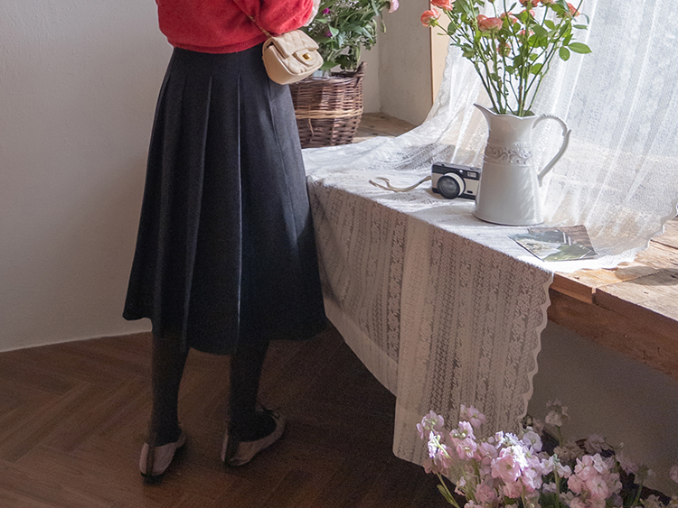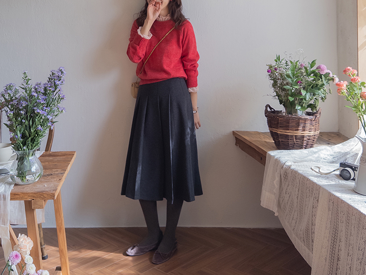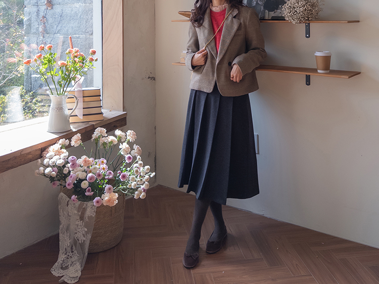 차분한 무드의 매력적인 플리츠SK 소개드릴게요~♥ 탄탄한 소재감과 부드러운 터치감으로 편안한 착용감은 물론이구요~ 구김이 적어 스팀 걱정은 NO,NO,NO~! 자연스러운 플레어 라인으로 여리~여리~ 사랑스러운 실루엣*.* 도톰한 두께감으로 올 겨울 데이트/하객룩으로 정말 자주 입어질 아이템이니 굿초이스 해주세요~!♥
