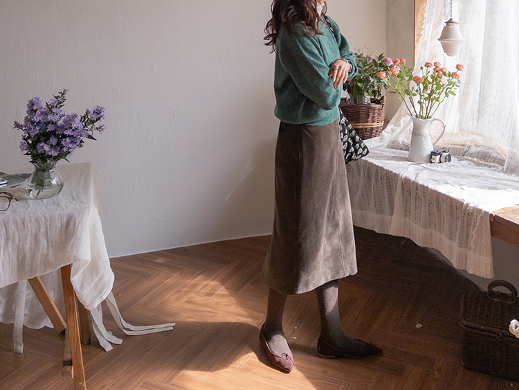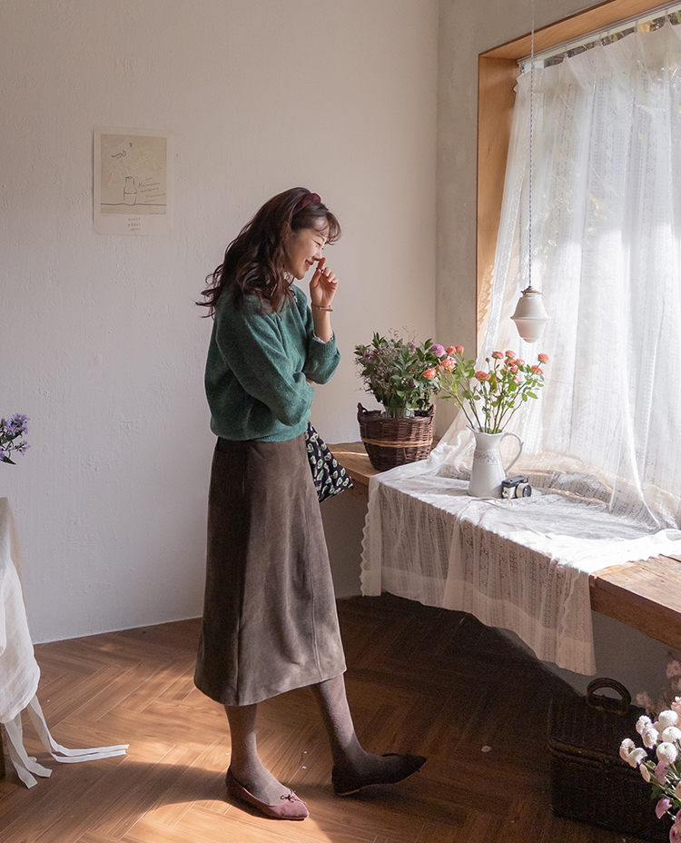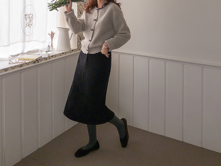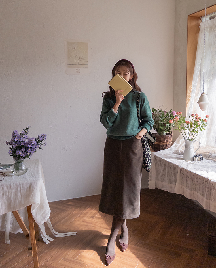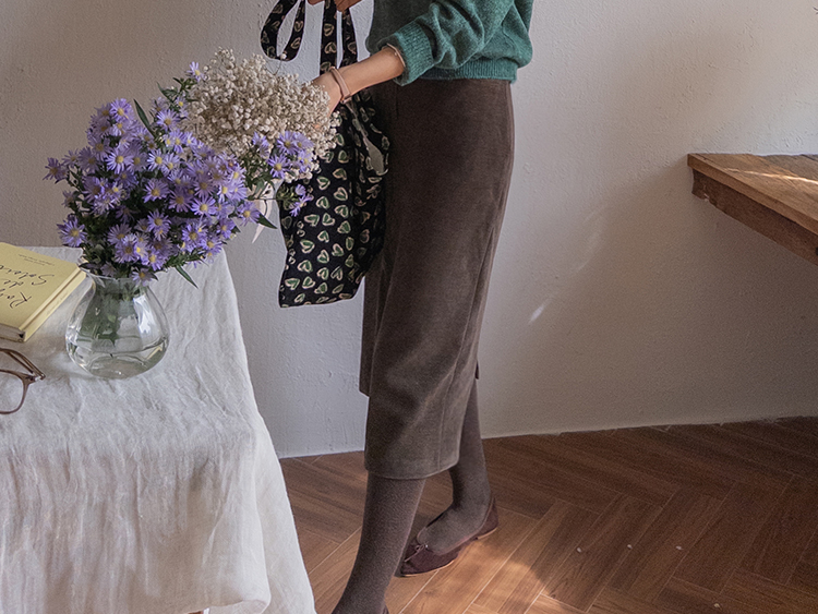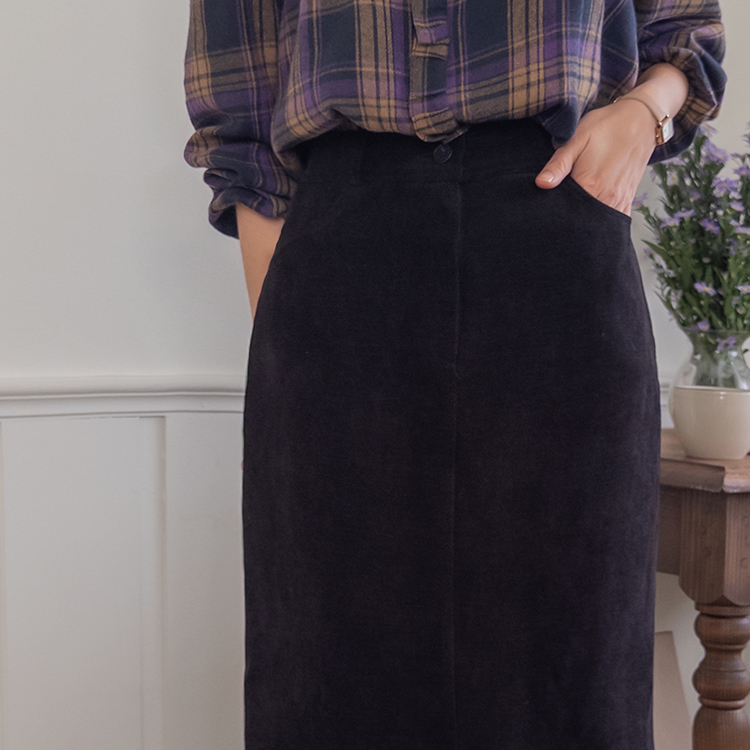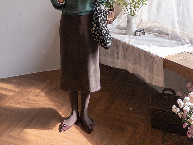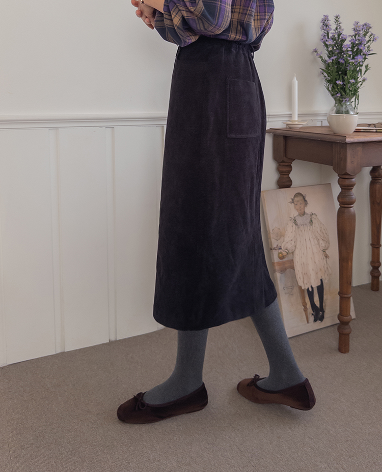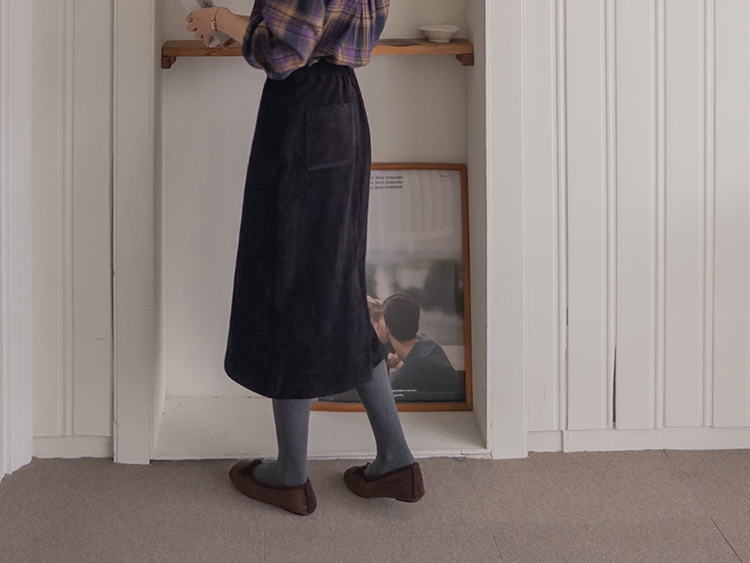 극강의 부드러움이 느껴지는 H라인스커트에요♥ 보들보들~ 부드러움 끝판왕 소재로 손이 자주 갈 아이템인데요ㅎㅎ 코듀로이인 듯한 느낌의 겉감으로 고급스러움이 느껴지구요~ 도톰한 두께감으로 겨울에 따뜻하게 착용하기 좋아요:) H라인이라 불편할까? 하는 걱정NO!! 백 슬릿 디테일로 활동성UP!! 허리 뒷밴딩& 신축성이 좋아 편안하게 착용하기 좋아요ㅎㅎ