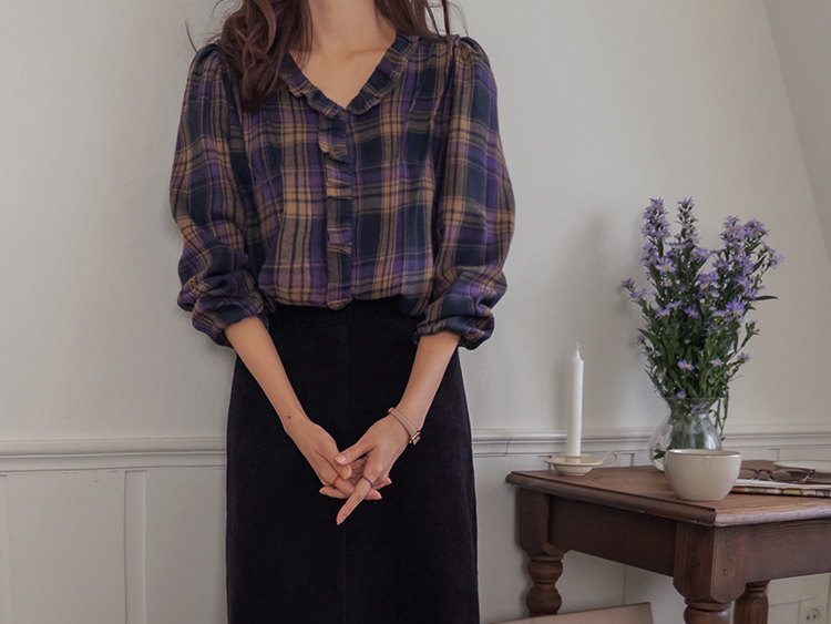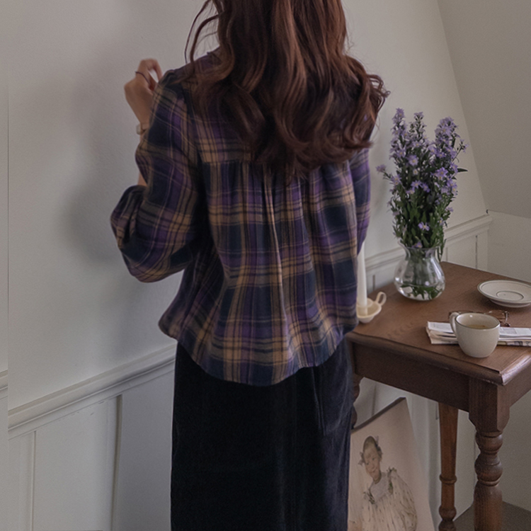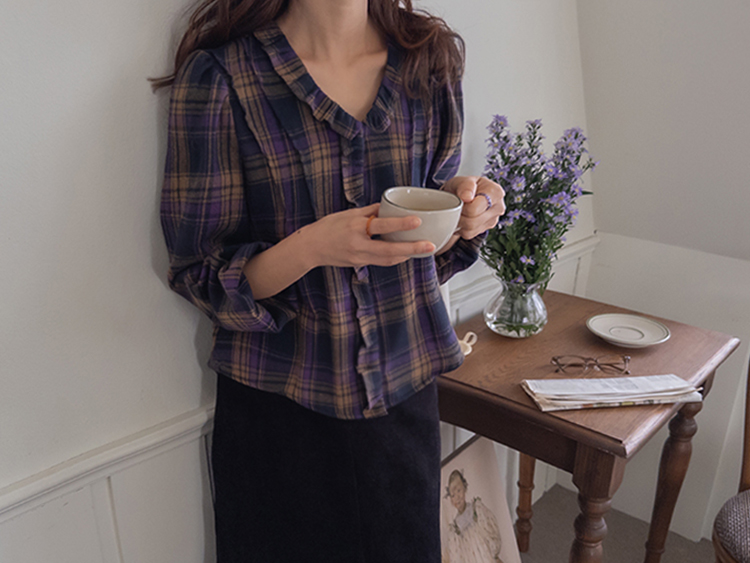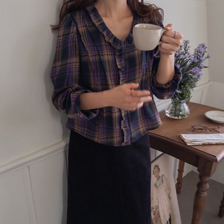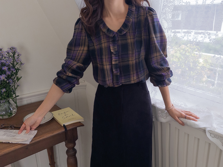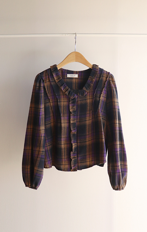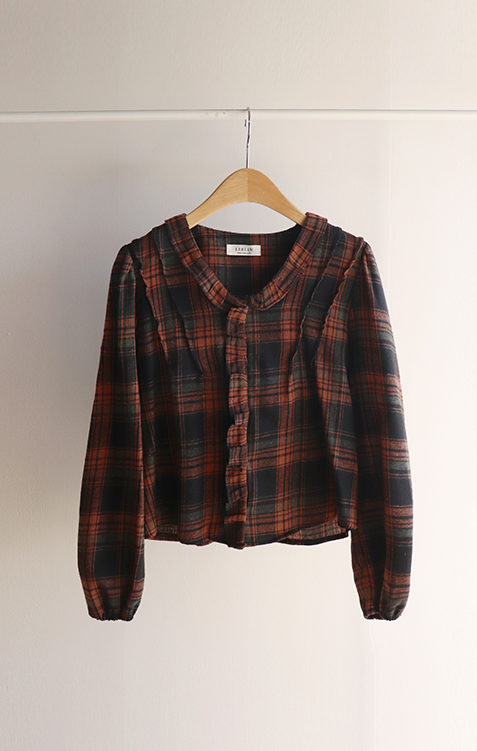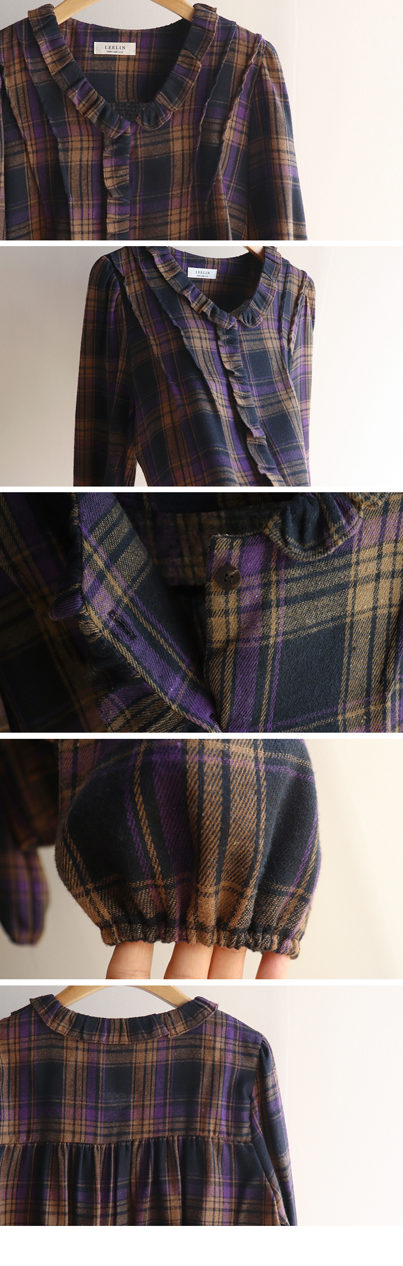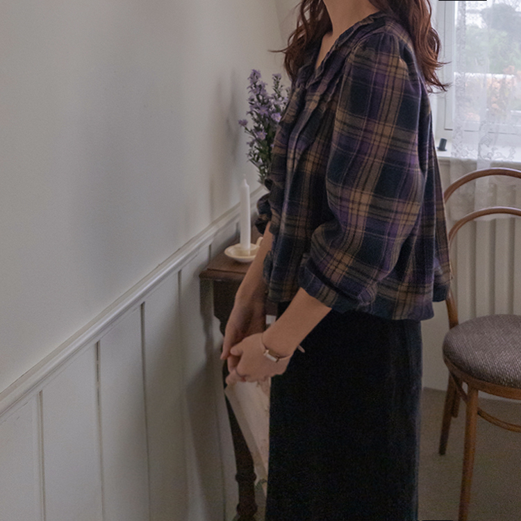 首页 > メイドリン > [起毛][身上特価5千ウォン割引] MADE LINプレニンラブリーフリルチェックブラウス[size:F(55~66盤)]