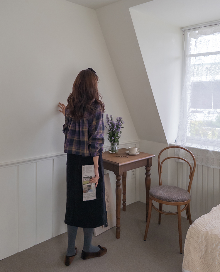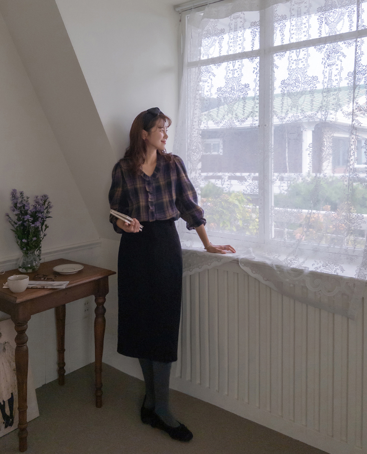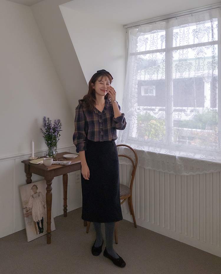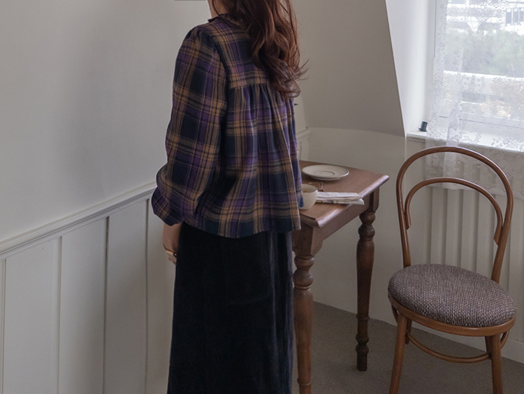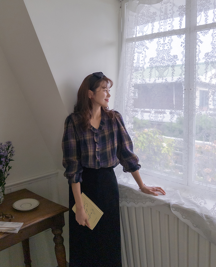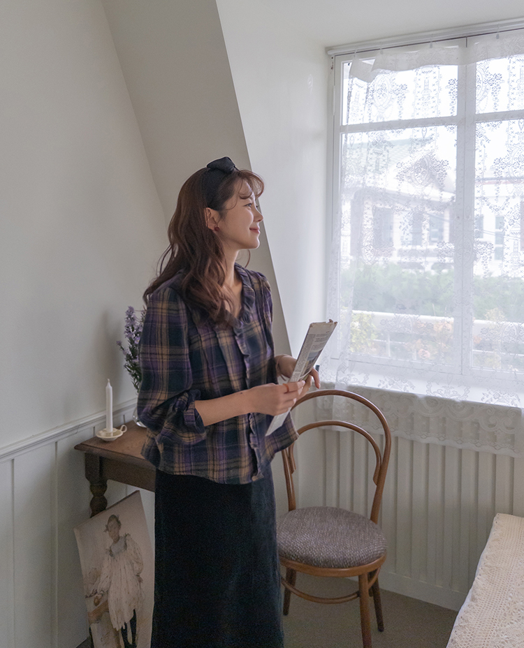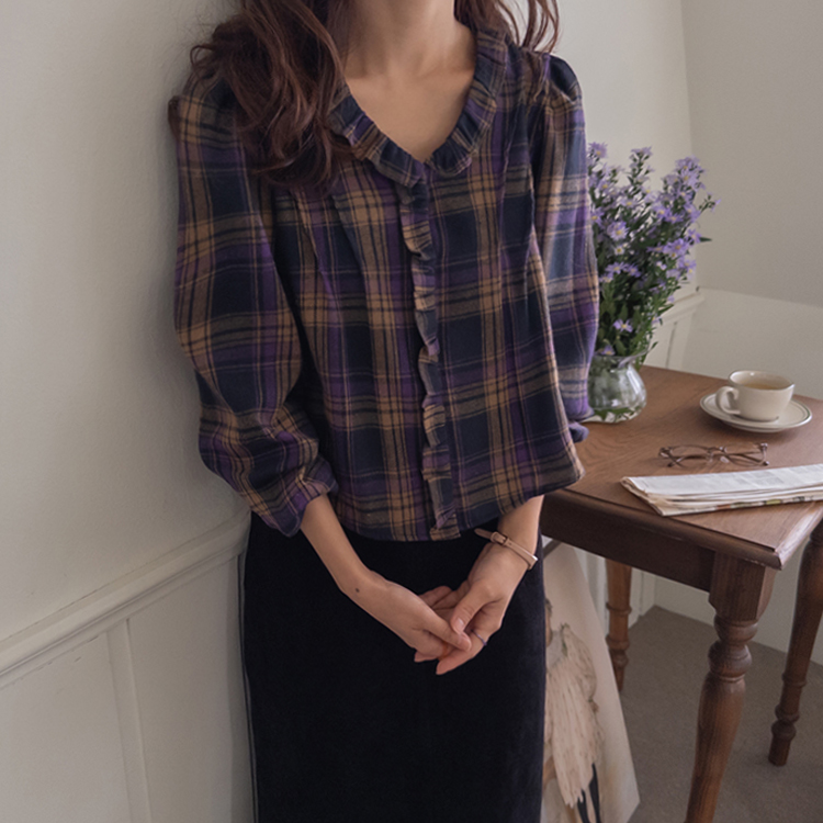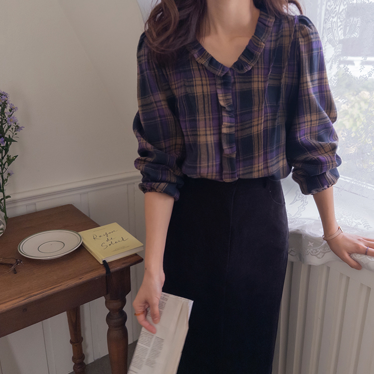 首页 > メイドリン > [起毛][身上特価5千ウォン割引] MADE LINプレニンラブリーフリルチェックブラウス[size:F(55~66盤)]