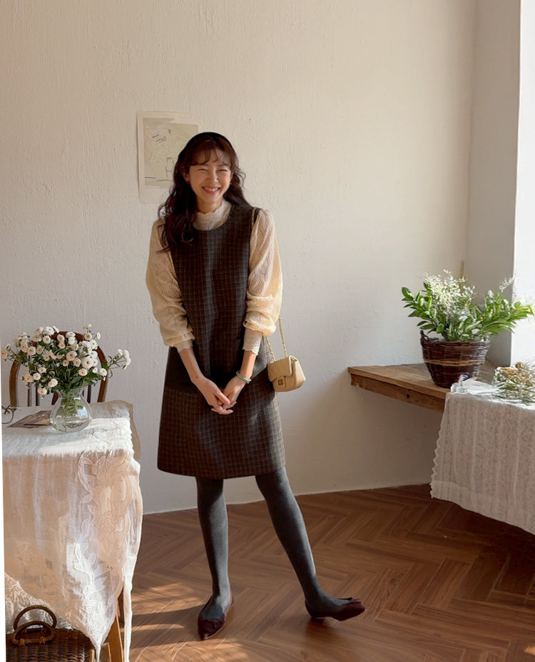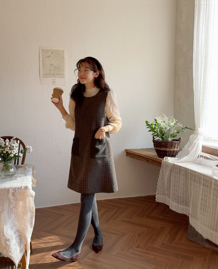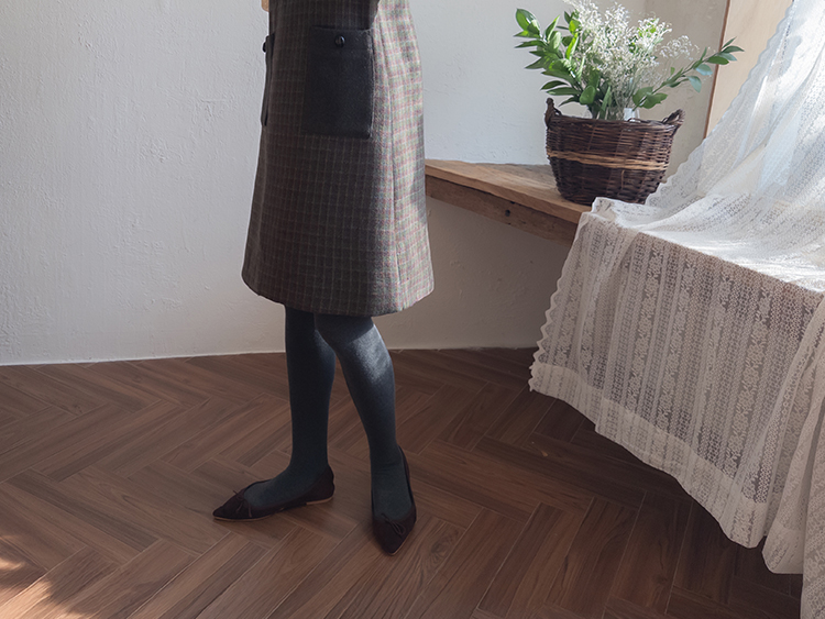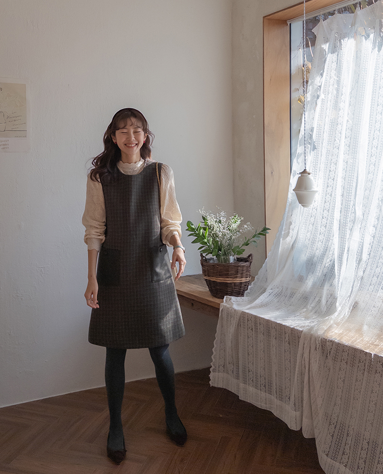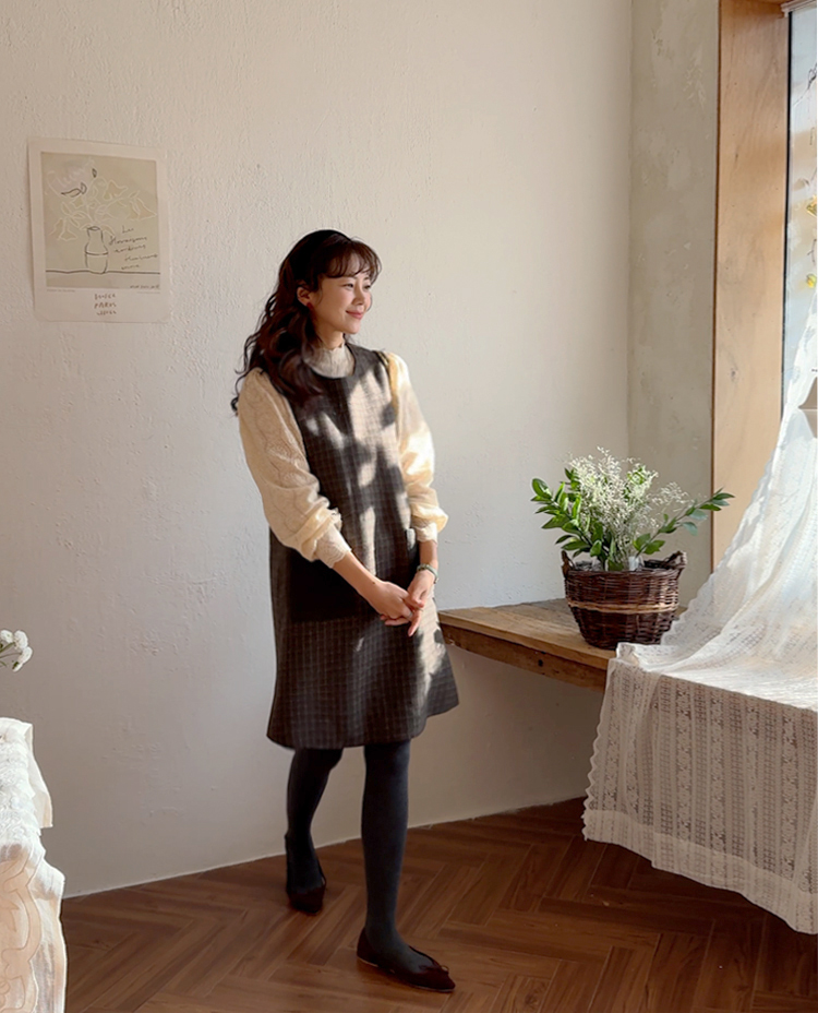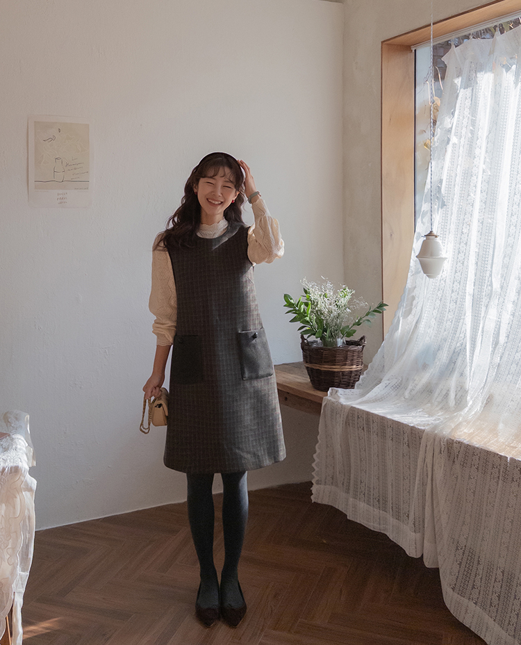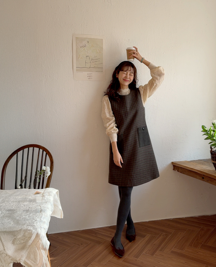 체크 배색 패턴으로 고급스러우면서도 차분한 매력이 돋보이는 원피스 보여드릴게요~! 기본 폴라티셔츠나 블라우스 등 다양한 아이템에 레이어드해서 착용하기 좋은 아이라 하나 소장하시면 다채로운 데일리룩으로 연출하기 좋은 원피스에요ㅎㅎ 울이 20% 블랜딩된 원단으로 탄탄하면서 부드러운 터치감이구요 적당히 도톰한 두께감으로 FW시즌에 함께하기 좋아요:) 전체적으로 깔끔하면서도 여유있게 떨어지는 실루엣으로 체형 커버도 되고 부담없이 착용하기 좋구요 A라인 실루엣에 하프 길이감으로 여성스러욱 매력도 돋보인답니다*.* 특히 양 사이드 아웃포켓으로 포켓도 넘 귀엽게 달아주었는데요 포켓은 체크가 아닌 원단을 사용해주어서 은근한 포인트로 디테일적인 부분까지 신경써 주었어요~! 또한 주머니에 버튼은 실제 오픈클로징이 가능한 리얼 버튼으로 실용성까지 UP! 컬러도 지금 시즌과 잘 어울리는 차분하면서도 룩에 은근한 포인트를 주기 좋은 컬러감이라 소장하셔서 다양한 스타일링으로 즐겨주세요~♡
