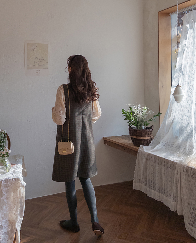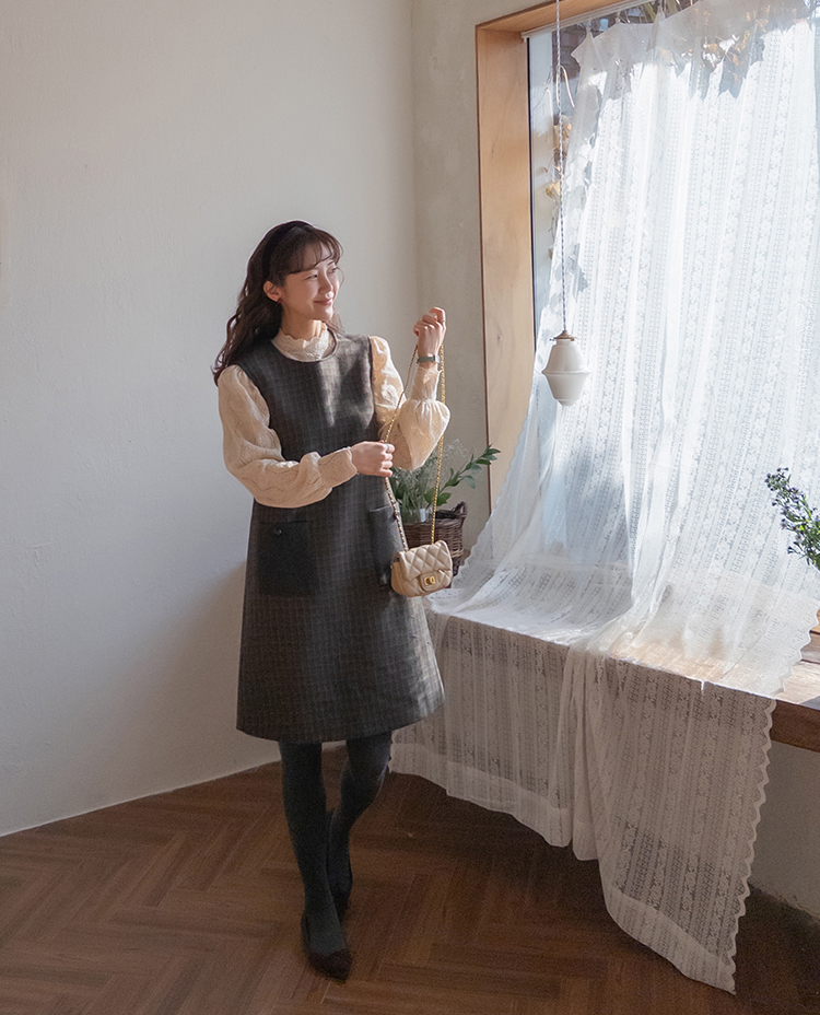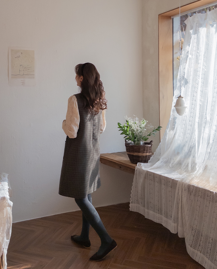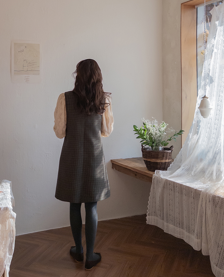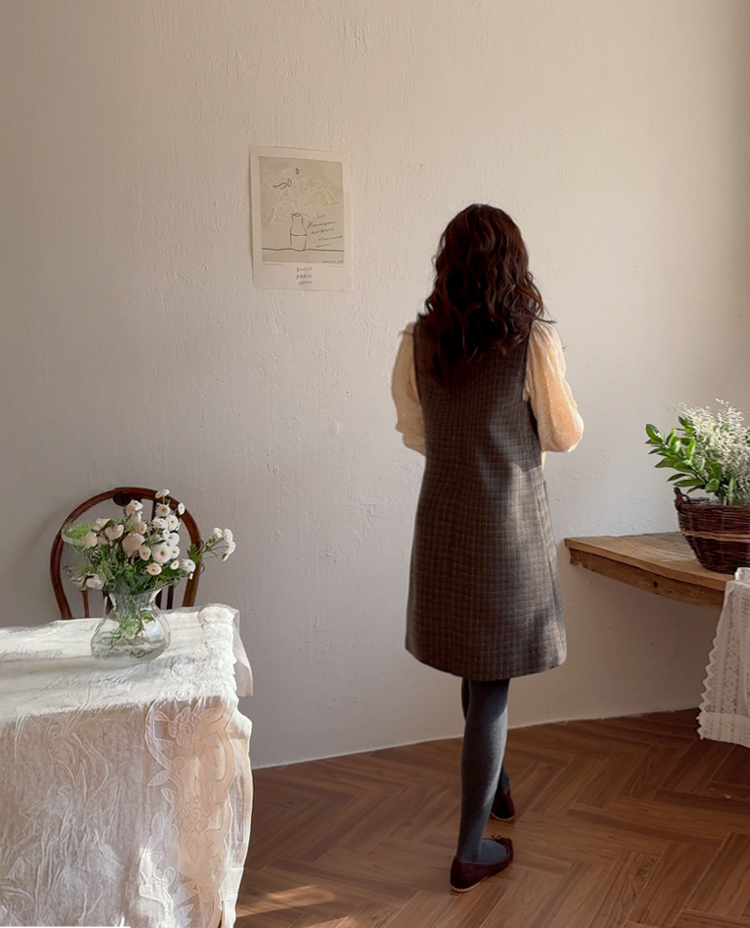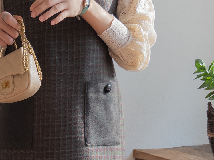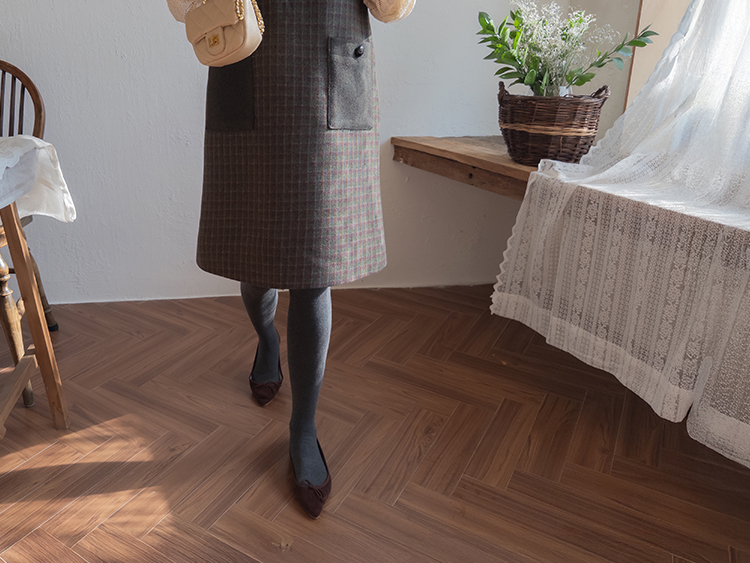 체크 배색 패턴으로 고급스러우면서도 차분한 매력이 돋보이는 원피스 보여드릴게요~! 기본 폴라티셔츠나 블라우스 등 다양한 아이템에 레이어드해서 착용하기 좋은 아이라 하나 소장하시면 다채로운 데일리룩으로 연출하기 좋은 원피스에요ㅎㅎ 울이 20% 블랜딩된 원단으로 탄탄하면서 부드러운 터치감이구요 적당히 도톰한 두께감으로 FW시즌에 함께하기 좋아요:) 전체적으로 깔끔하면서도 여유있게 떨어지는 실루엣으로 체형 커버도 되고 부담없이 착용하기 좋구요 A라인 실루엣에 하프 길이감으로 여성스러욱 매력도 돋보인답니다*.* 특히 양 사이드 아웃포켓으로 포켓도 넘 귀엽게 달아주었는데요 포켓은 체크가 아닌 원단을 사용해주어서 은근한 포인트로 디테일적인 부분까지 신경써 주었어요~! 또한 주머니에 버튼은 실제 오픈클로징이 가능한 리얼 버튼으로 실용성까지 UP! 컬러도 지금 시즌과 잘 어울리는 차분하면서도 룩에 은근한 포인트를 주기 좋은 컬러감이라 소장하셔서 다양한 스타일링으로 즐겨주세요~♡