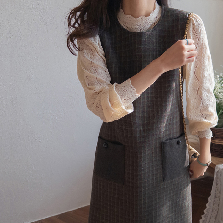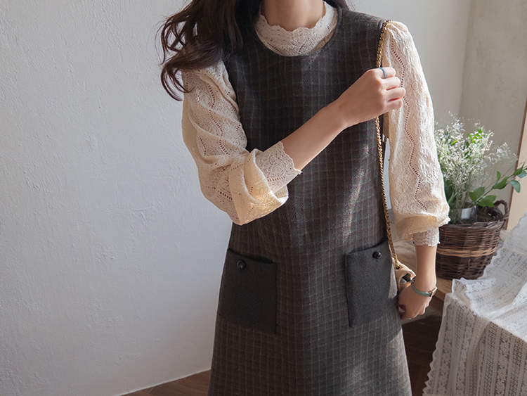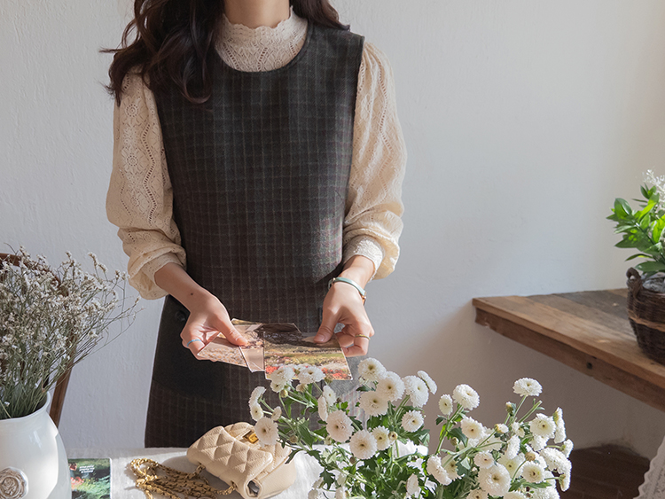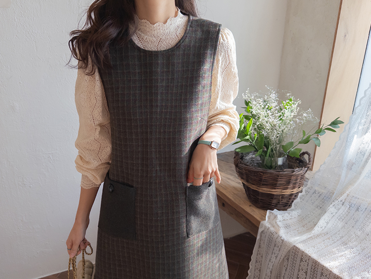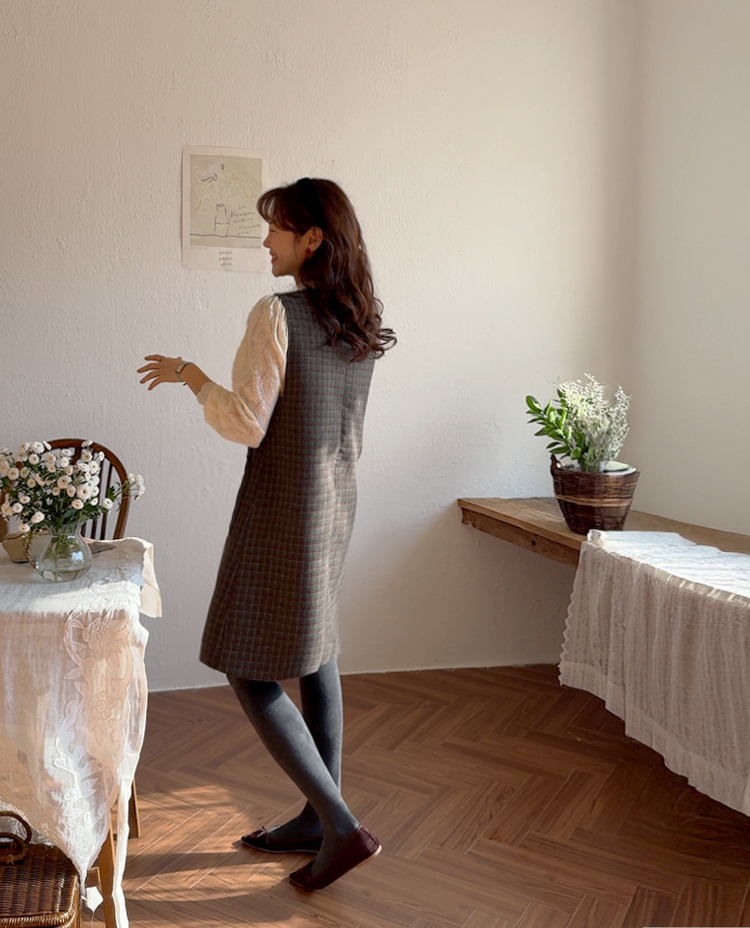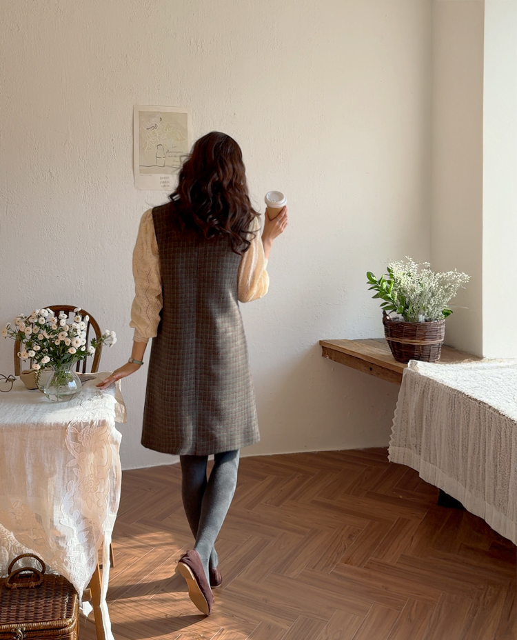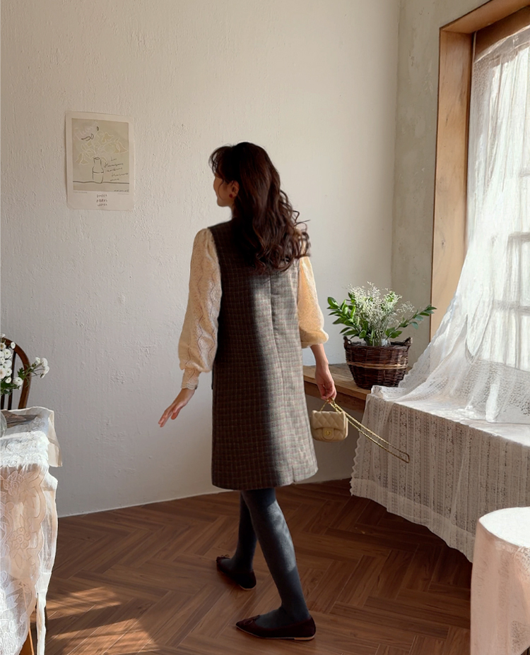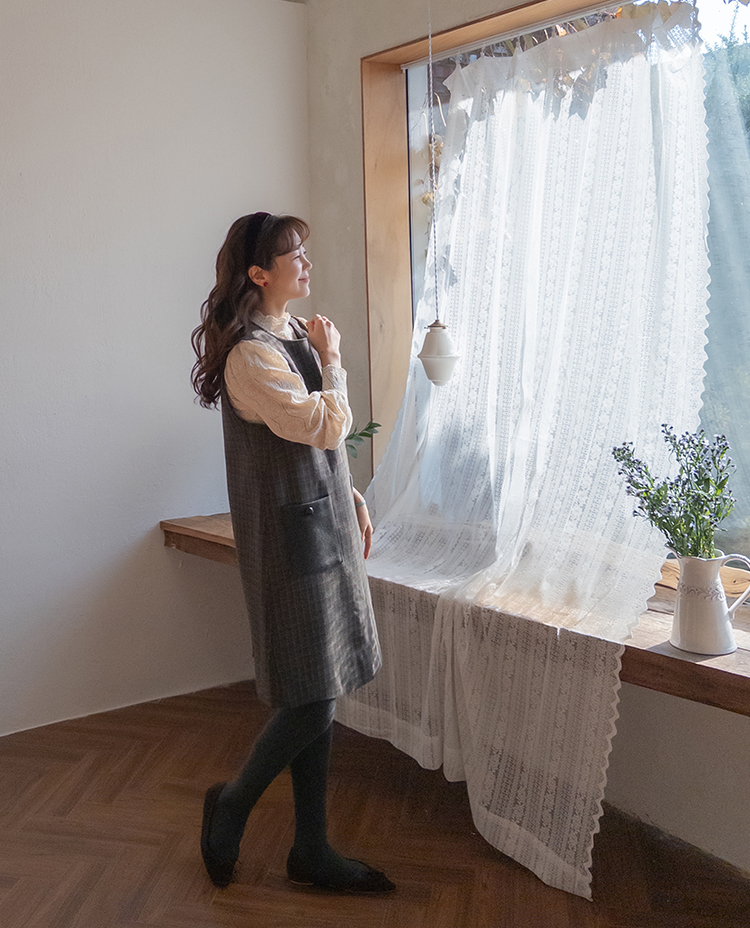체크 배색 패턴으로 고급스러우면서도 차분한 매력이 돋보이는 원피스 보여드릴게요~! 기본 폴라티셔츠나 블라우스 등 다양한 아이템에 레이어드해서 착용하기 좋은 아이라 하나 소장하시면 다채로운 데일리룩으로 연출하기 좋은 원피스에요ㅎㅎ 울이 20% 블랜딩된 원단으로 탄탄하면서 부드러운 터치감이구요 적당히 도톰한 두께감으로 FW시즌에 함께하기 좋아요:) 전체적으로 깔끔하면서도 여유있게 떨어지는 실루엣으로 체형 커버도 되고 부담없이 착용하기 좋구요 A라인 실루엣에 하프 길이감으로 여성스러욱 매력도 돋보인답니다*.* 특히 양 사이드 아웃포켓으로 포켓도 넘 귀엽게 달아주었는데요 포켓은 체크가 아닌 원단을 사용해주어서 은근한 포인트로 디테일적인 부분까지 신경써 주었어요~! 또한 주머니에 버튼은 실제 오픈클로징이 가능한 리얼 버튼으로 실용성까지 UP! 컬러도 지금 시즌과 잘 어울리는 차분하면서도 룩에 은근한 포인트를 주기 좋은 컬러감이라 소장하셔서 다양한 스타일링으로 즐겨주세요~♡