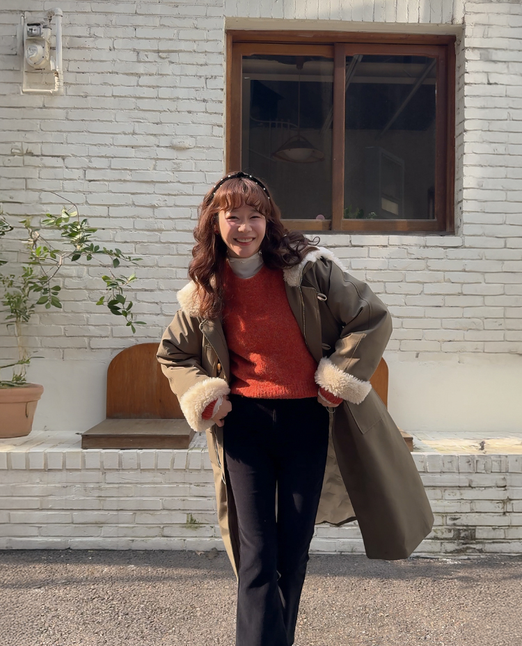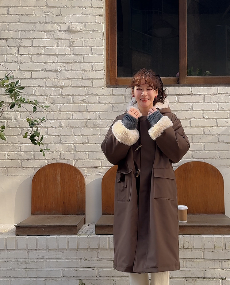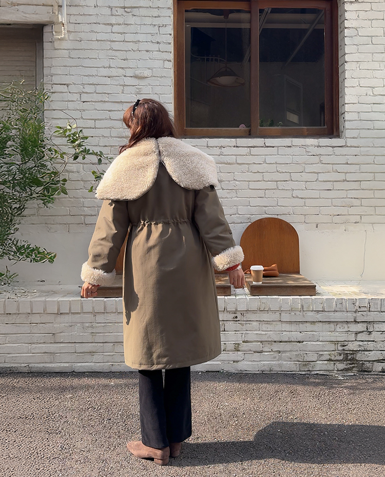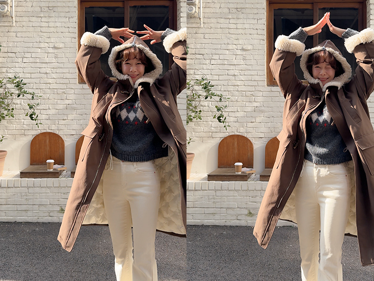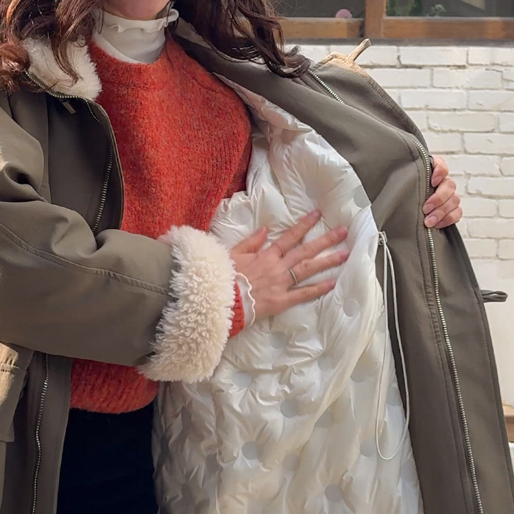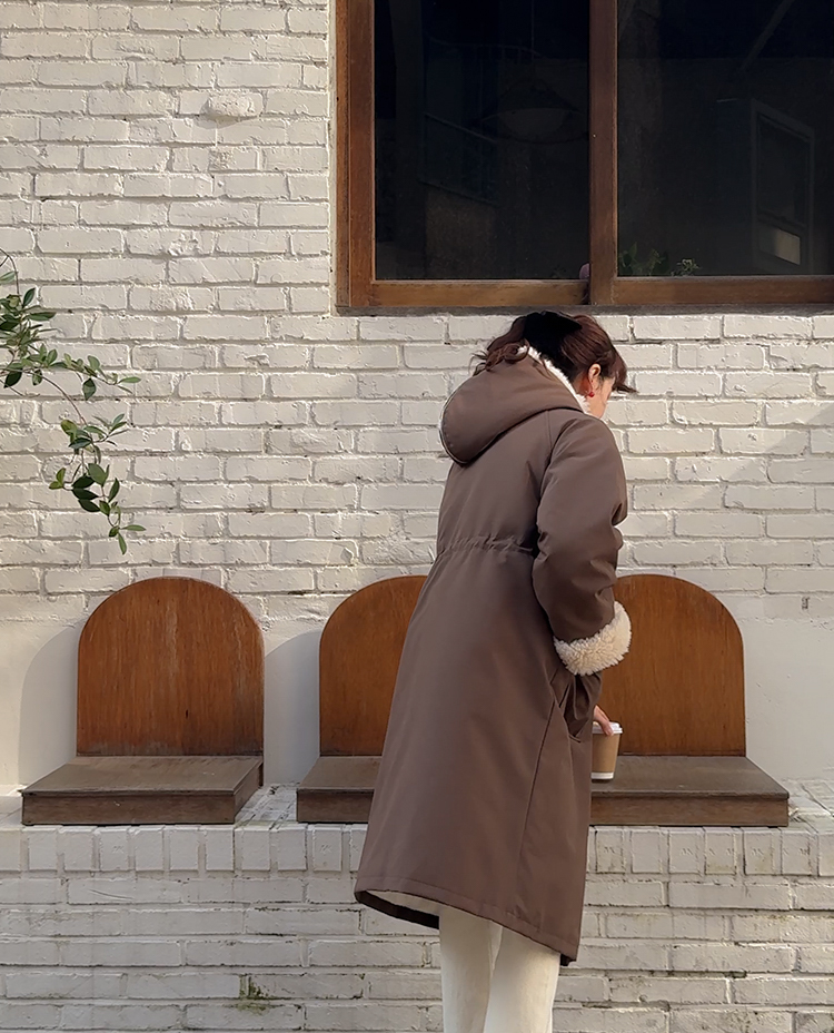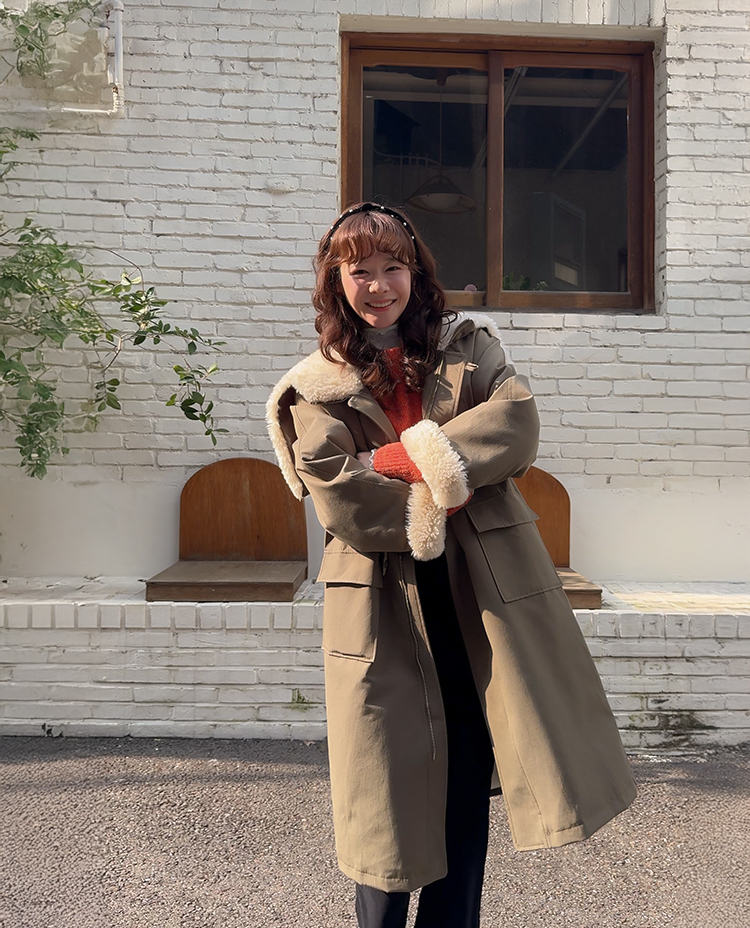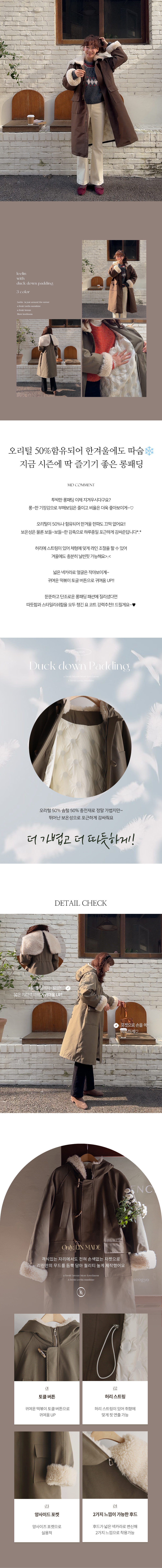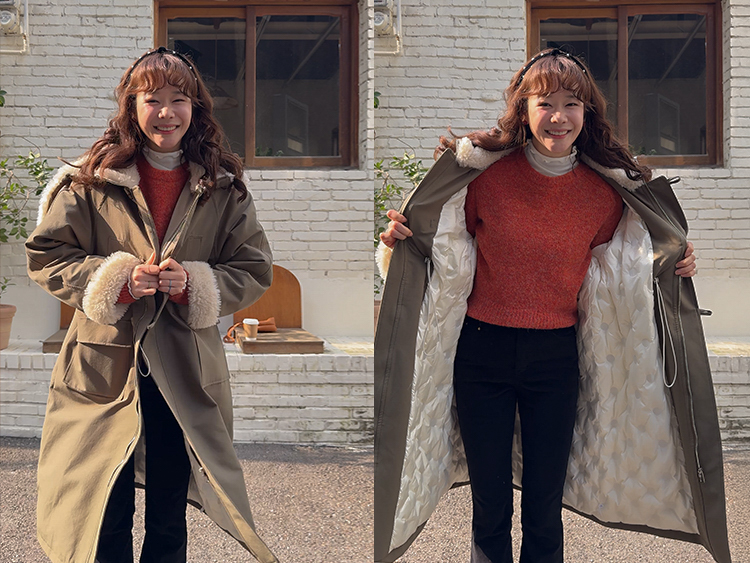 투박한 롱패딩 이제 지겨우시다구요? 그럼 요 야상패딩 추천드립니다 ^^ 야상이라 추운거 아닐까~ 싶으시겠지만~ 오리털이 50%나 함유되어 한겨울 한파도 끄떡 없어요!! 누빔 안감까지 더해져 폭신~폭신~ 보온성 GOOD!! 후드부분과 소맷단 안감은 부드러운 퍼로 채워주어 부들부들~ 포근하게~ 후드로 폭~ 써주시다가 후드 지퍼를 내려주시면 빅카라로 투웨이 연출 OK♥ 허리 안쪽 스트링이 있어 롱 패딩이지만 슬림하게 연출 가능해 부해보이지 않답니다 :) 단조로운 롱패딩에 질리셨다면 따뜻함과 스타일리쉬함을 모두 챙긴 요 패딩 강추해요♥