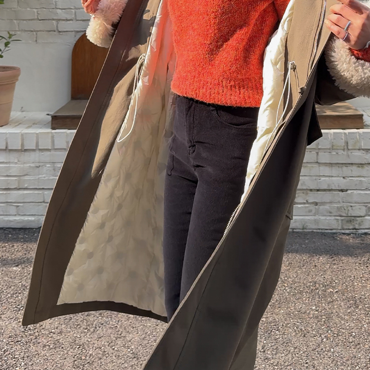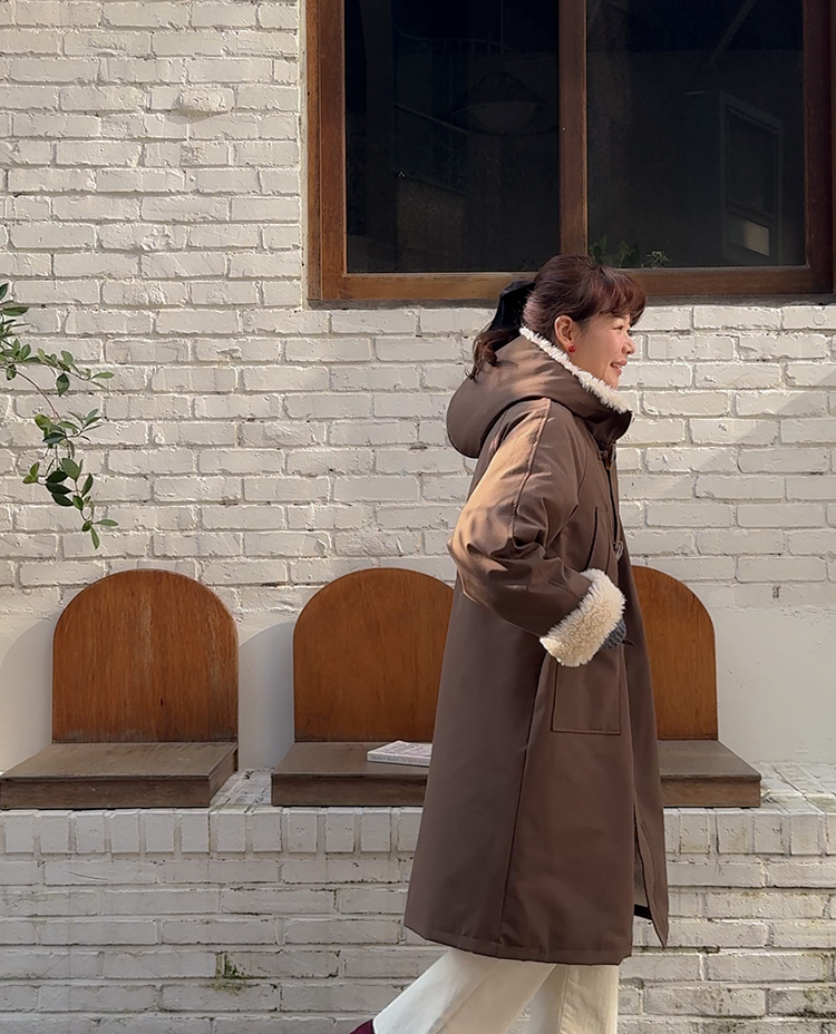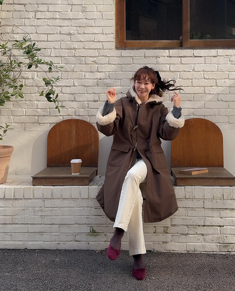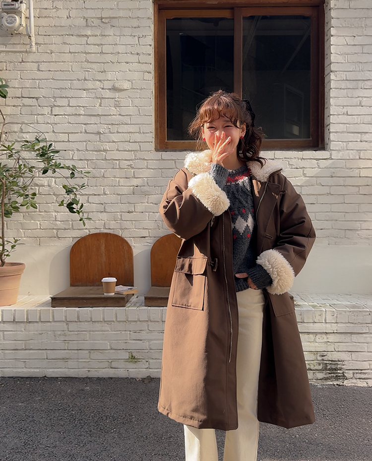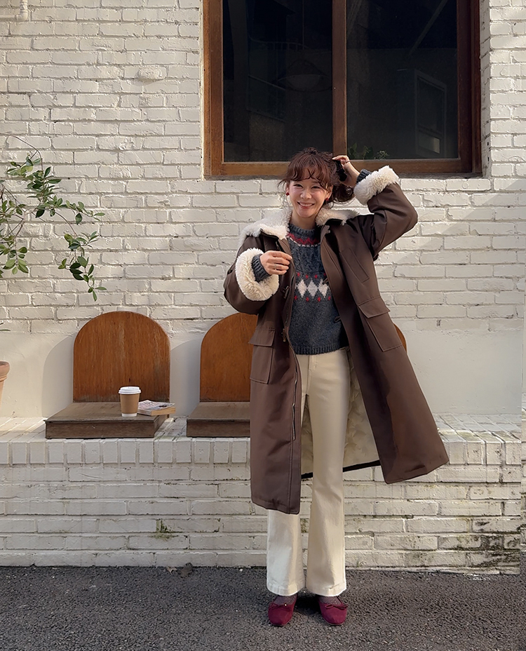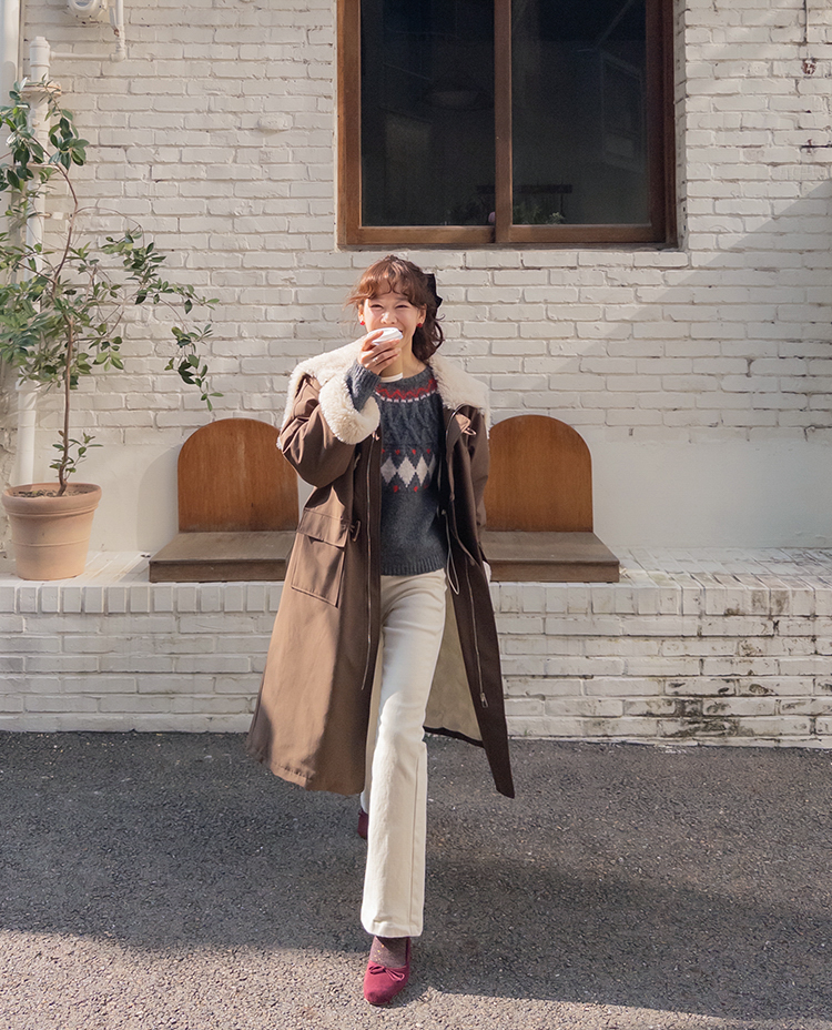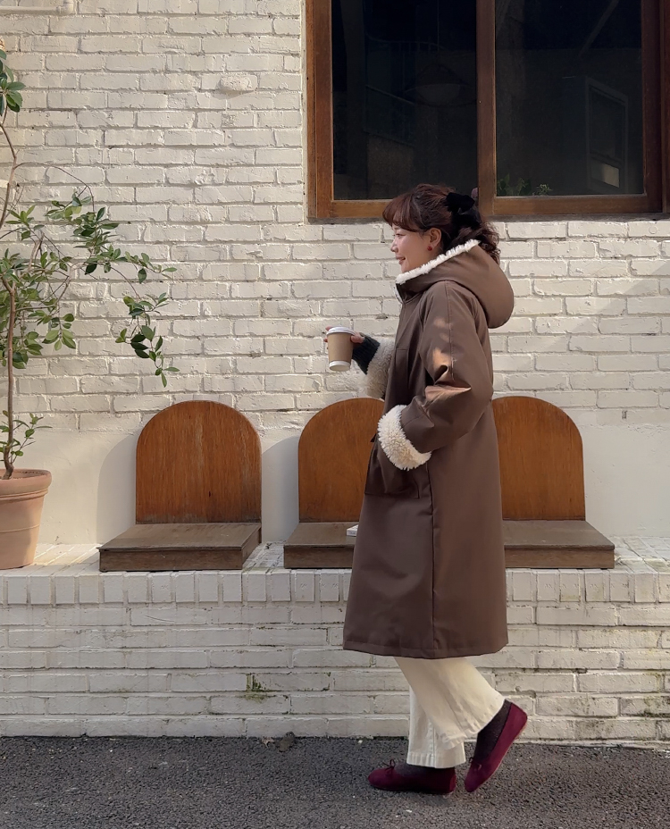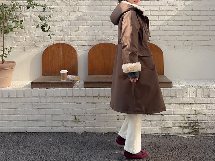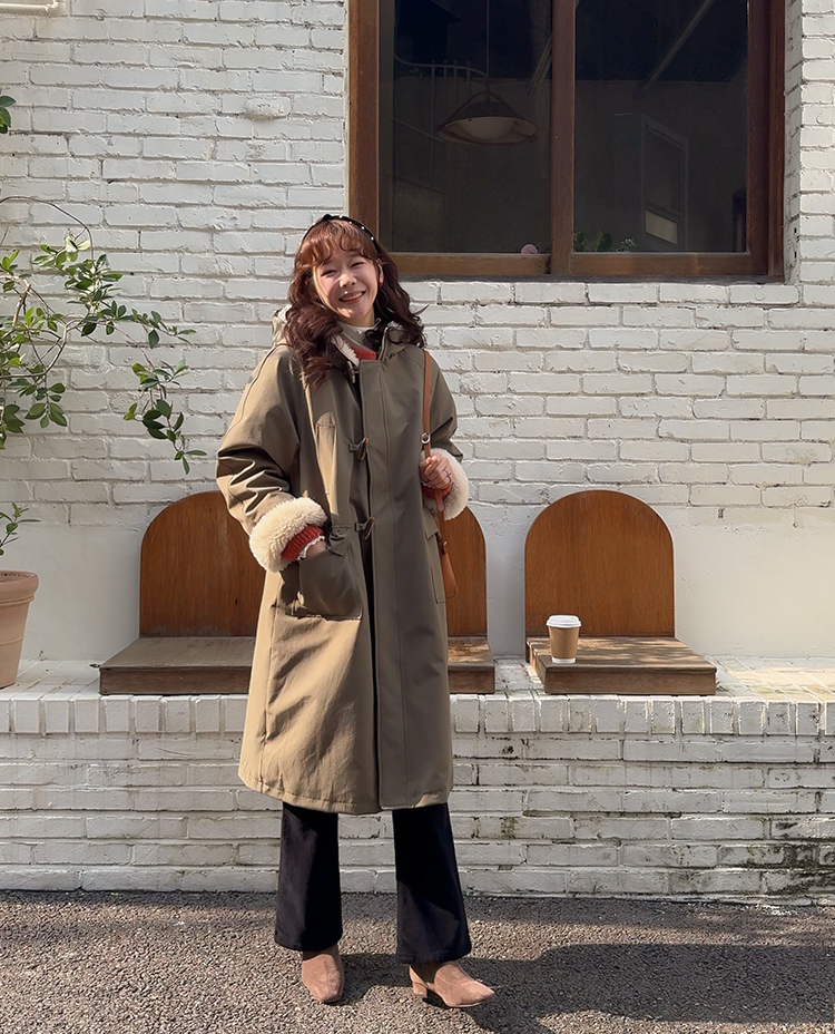 투박한 롱패딩 이제 지겨우시다구요? 그럼 요 야상패딩 추천드립니다 ^^ 야상이라 추운거 아닐까~ 싶으시겠지만~ 오리털이 50%나 함유되어 한겨울 한파도 끄떡 없어요!! 누빔 안감까지 더해져 폭신~폭신~ 보온성 GOOD!! 후드부분과 소맷단 안감은 부드러운 퍼로 채워주어 부들부들~ 포근하게~ 후드로 폭~ 써주시다가 후드 지퍼를 내려주시면 빅카라로 투웨이 연출 OK♥ 허리 안쪽 스트링이 있어 롱 패딩이지만 슬림하게 연출 가능해 부해보이지 않답니다 :) 단조로운 롱패딩에 질리셨다면 따뜻함과 스타일리쉬함을 모두 챙긴 요 패딩 강추해요♥