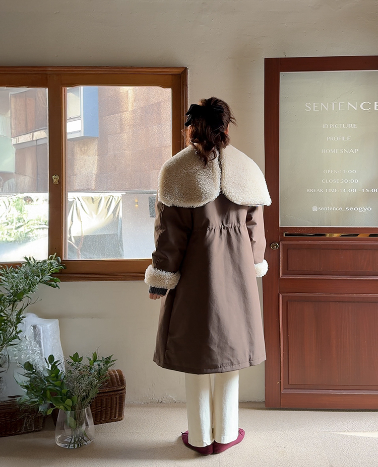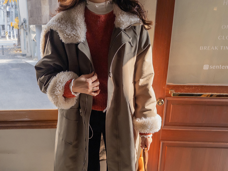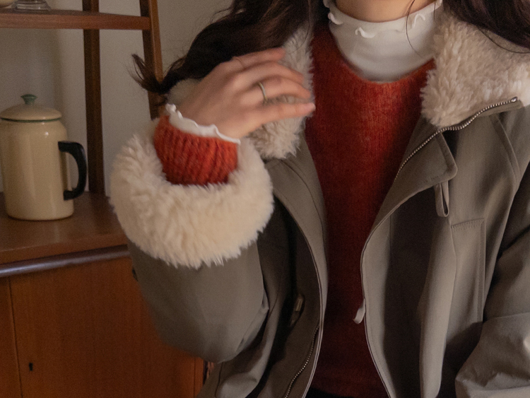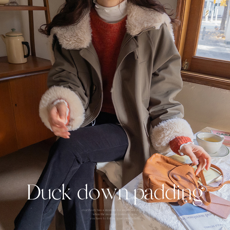 - 首页 > OUTER > ジャンパー > [シープスキン50%含有裏地パディング] メロウの暴食暖かいファービックカラーツーウェイ ダックダウン 野上パディング [size:F(55~66盤)]