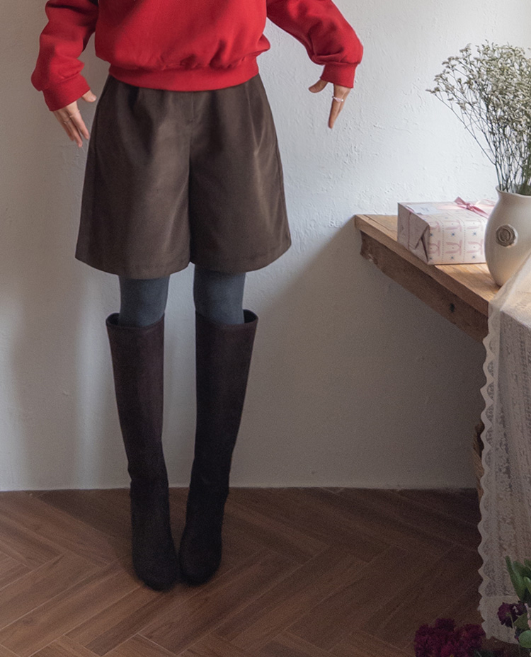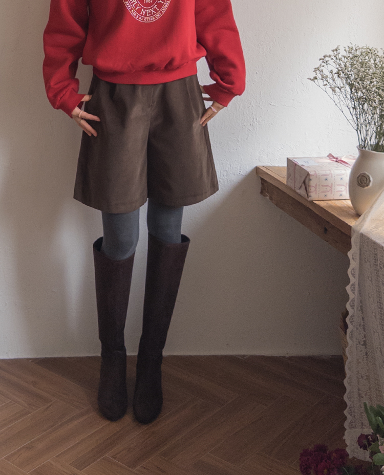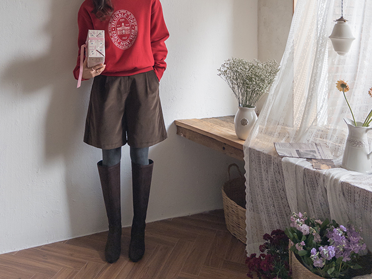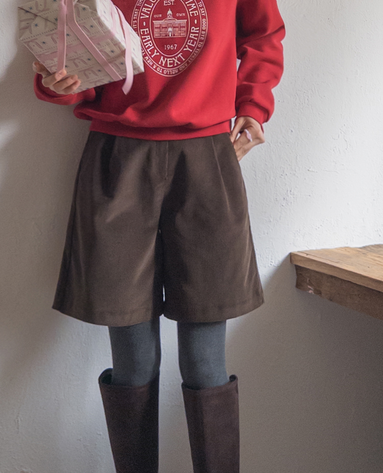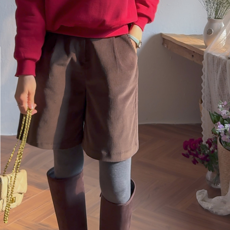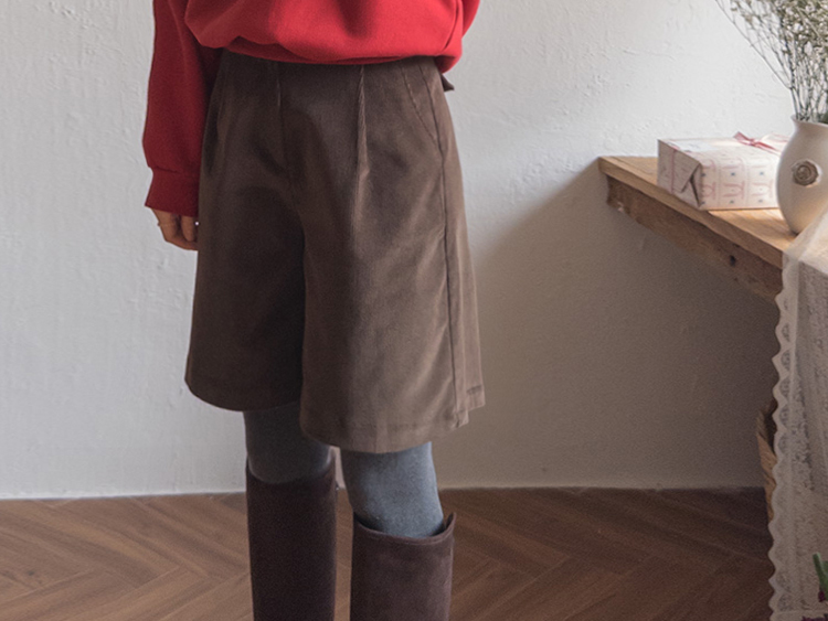겨울시즌에 빼놓을 수 없는 소재가 바로 코듀로이죠*.* 코듀로이로 긴 길이감의 팬츠는 많이 보셨을텐데요 오늘은 하프길이감의 팬츠로 보여드려요~! 골지 조직이 얇은 코듀로이로 신축성도 있고 원단 자체가 뻣뻣하지 않아서 정말 편하게 착용되는데요~ 하프 길이감으로 너무 짧지 않아서 부담스럽지 않고 와이드한 실루엣이라 허벅지라인 군살을 다 커버해주어서 실제 착용해보시면 더욱 마음에 드실거에요ㅎㅎ 타이즈나 부츠류와 함께 착용해주시면 겨울에도 스타일리쉬하고 완성도 높은 스타일링이 가능하구요 허리부분 핀턱 디테일로 허리라인이 얄쌍해보이는 포인트까지 더해준 팬츠라 정말 추천드려요~ 컬러도 요즘 시즌에 부담없으면서도 한끗 포인트 있게 착용가능한 브라운과 네이비로 보여드리니 소장하셔서 다양하게 즐겨주세요-♡