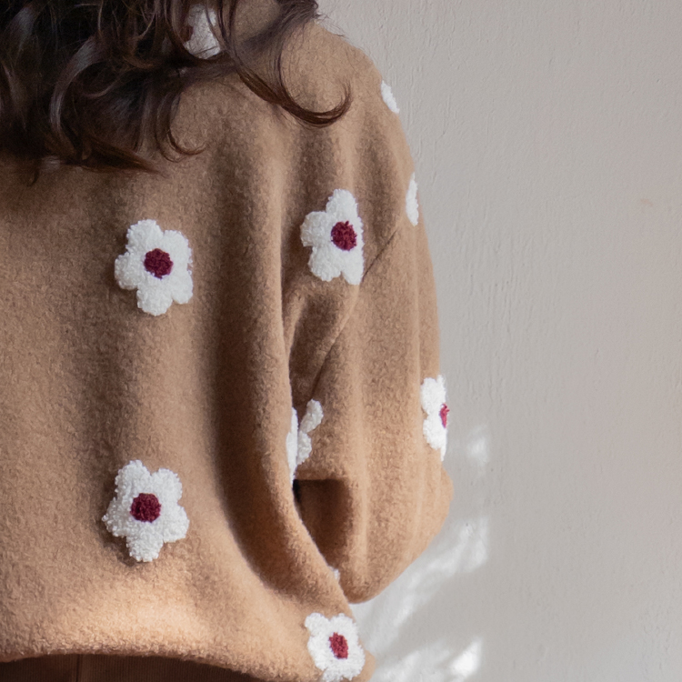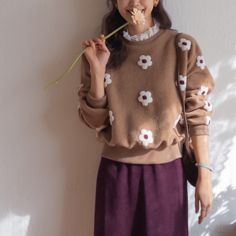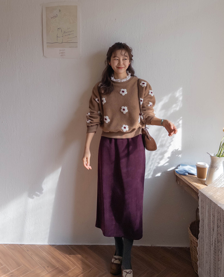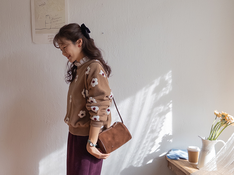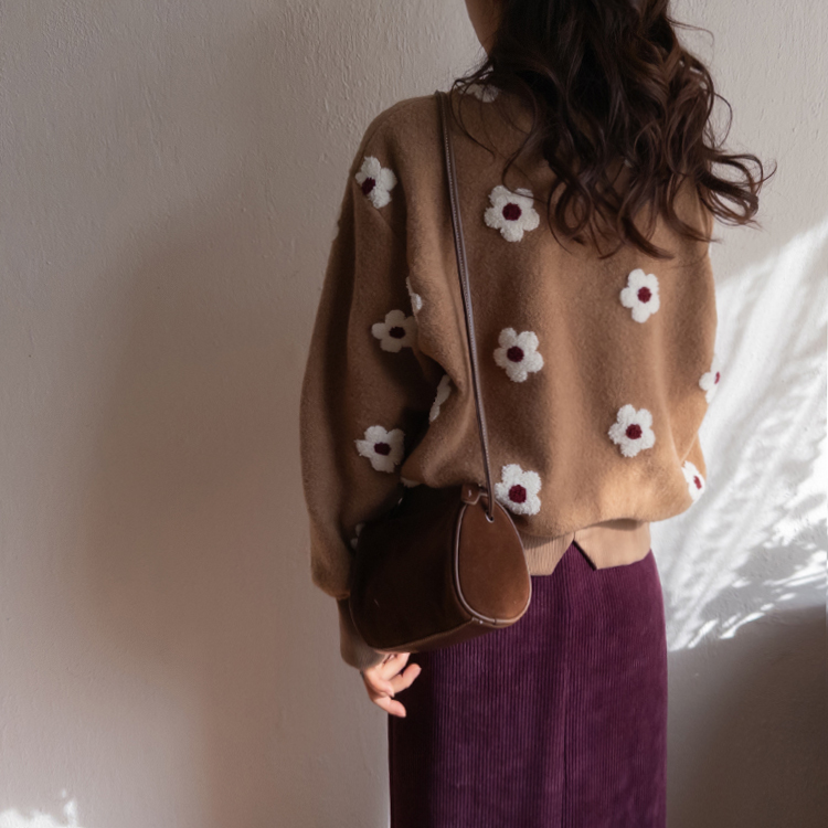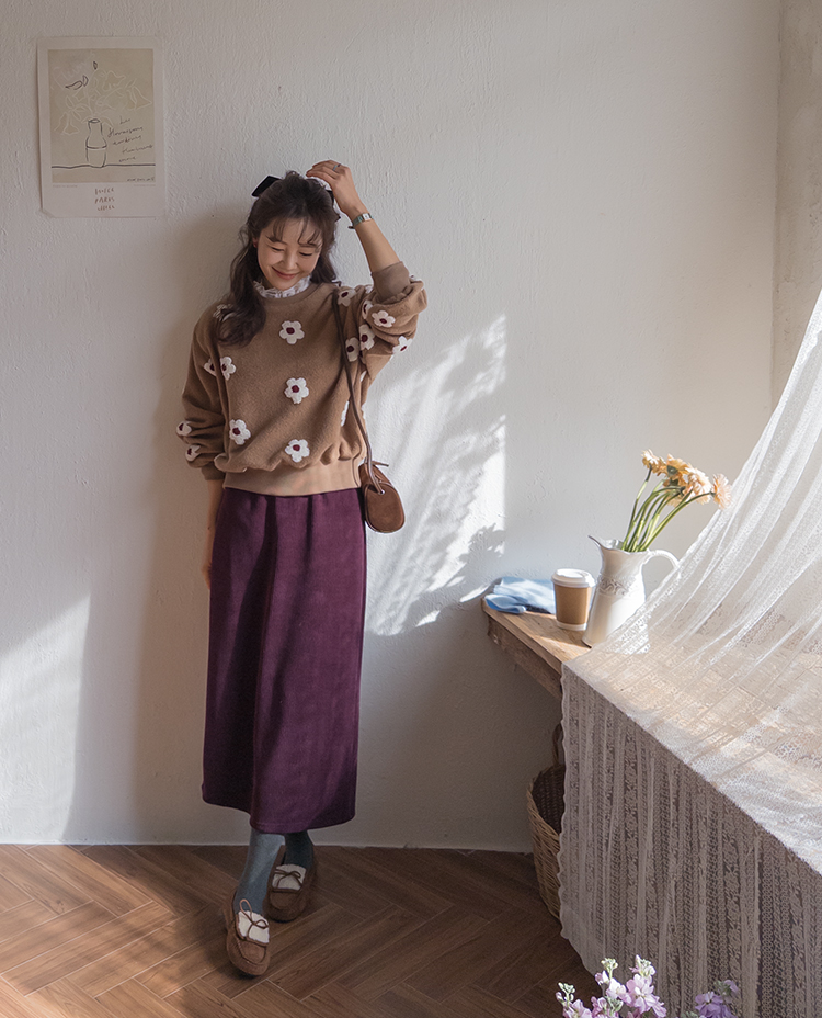 입체감이 느껴지는 플라워 자수 패턴이 뿅뿅 박혀있어 러블리함이 극대화된 맨투맨 티셔츠에요 :) 요 아이템 하나만 있어도 룩에 톡톡한 포인트가 되면서도 과한 느낌 없이 데일리룩으로 활용도가 정말 높아요~! 부들~부들~ 기분좋은 터치감으로 하루종일 입어도 포근함이 가득해요~♥.♥ 코튼소재가 아닌 니트소재의 맨투맨이라 청바지, 치마, 슬랙스 등 어떤 아이템과 매치해도 데일리룩의 톡톡한 포인트가 되구요~ 차분하고 따뜻한 감성이 느껴지는 브라운, 그레이 두가지 색상으로 준비되어 있어요💕 살짝 넉넉한 품으로 이너와 레이어드해서 입으면 여성스럽고 귀여운 무드가 UP!!되는 아이템이랍니다~^^