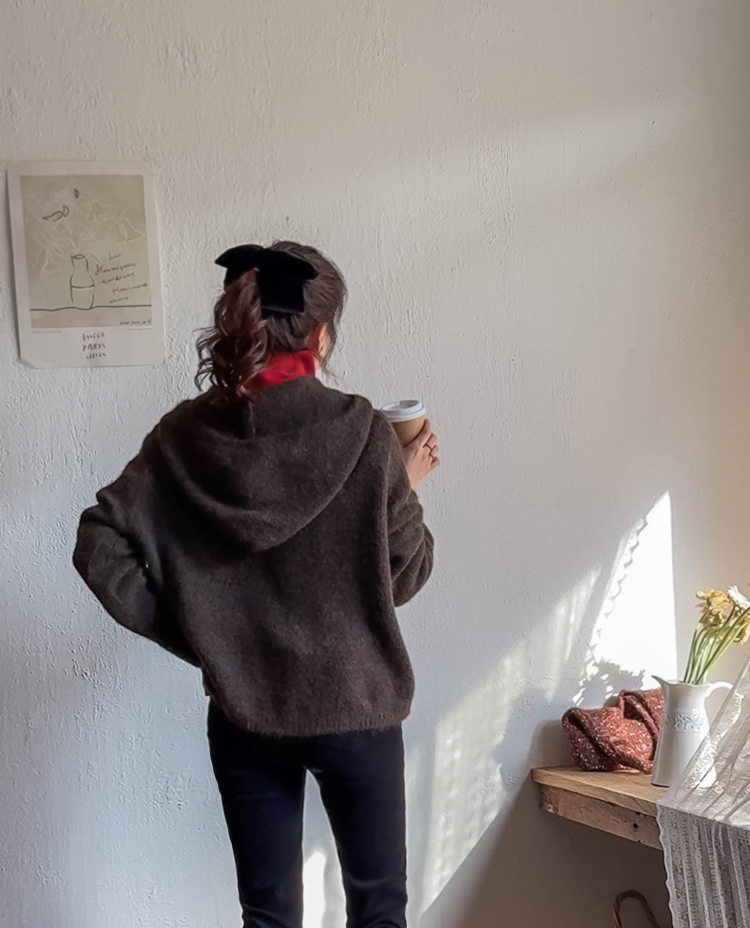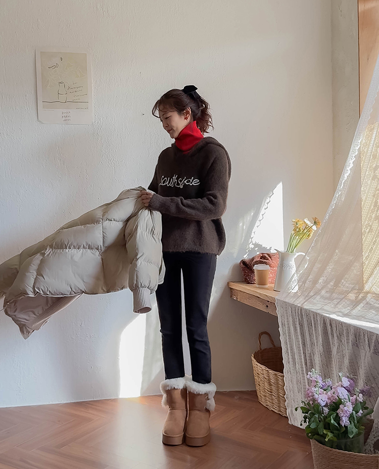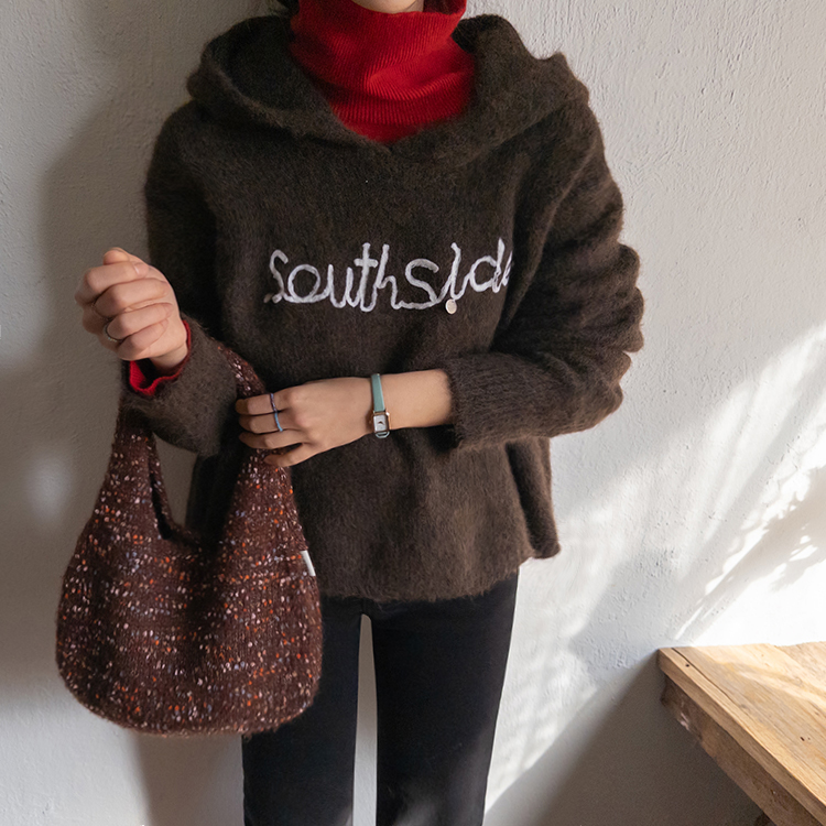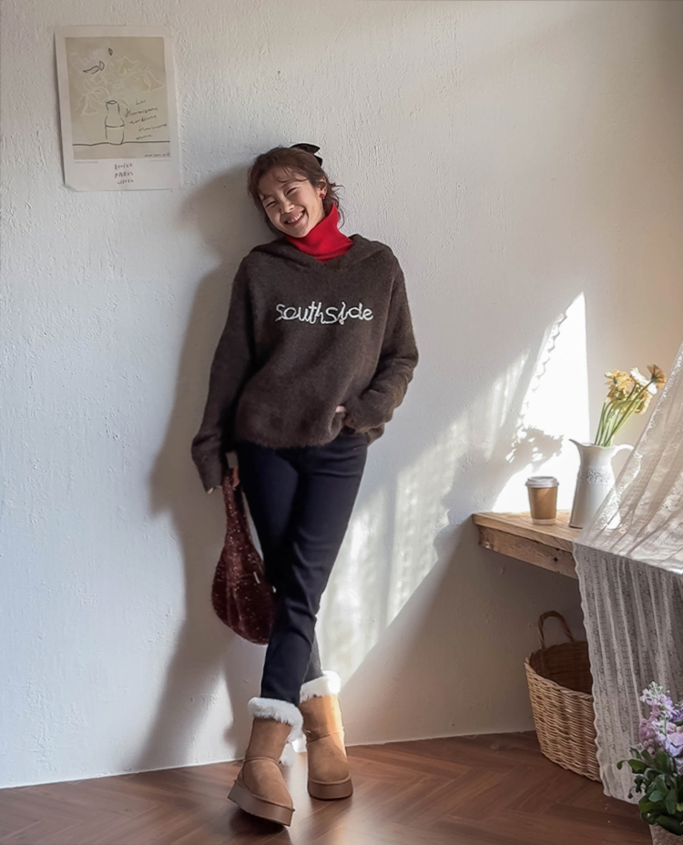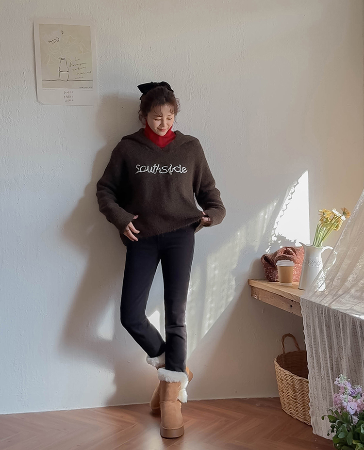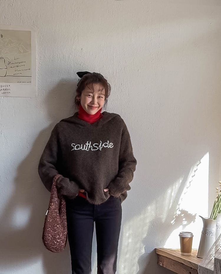 니트지만 후드가 있어 귀엽고 캐주얼한 무드 UP!! 캐주얼한 데일리 꾸안꾸룩에 딱 맞는 아이템이에요~^.^ 많이 두껍지 않은 두께로 아우터 안에 입어도 낑기는 불편함 없구요~ 단독으로 입어도~레이어드해서 입어도 예쁜 아이템이에요✨ 울블랜드 소재로 맨살에 닿아도 꺼끌거림 없는 부드러움이에요!!>.< 감성이 가득 느껴지는 중앙에 위치한 깔끔한 레터링 디테일이 밋밋하지 않으면서도 룩에 포인트를 주어 캐주얼한 겨울 코디를 완성시켜준답니다!!*.* 브라운, 그레이, 아이보리 3가지 컬러로 베이직한 디자인과 색감으로 준비되어 있으니 굿초이스 해주세요~♡