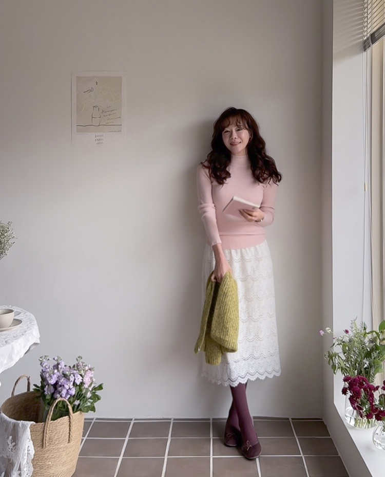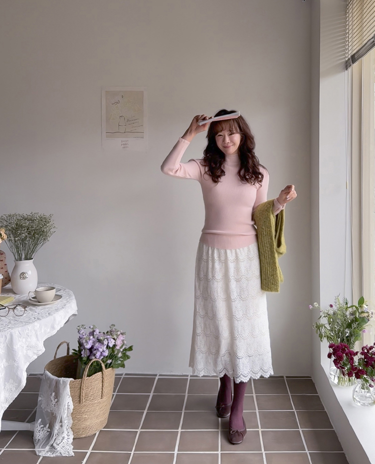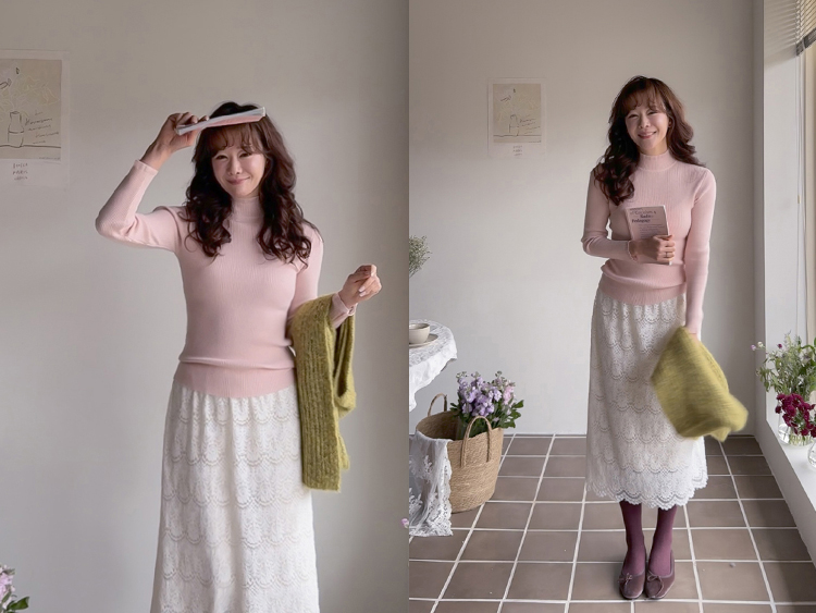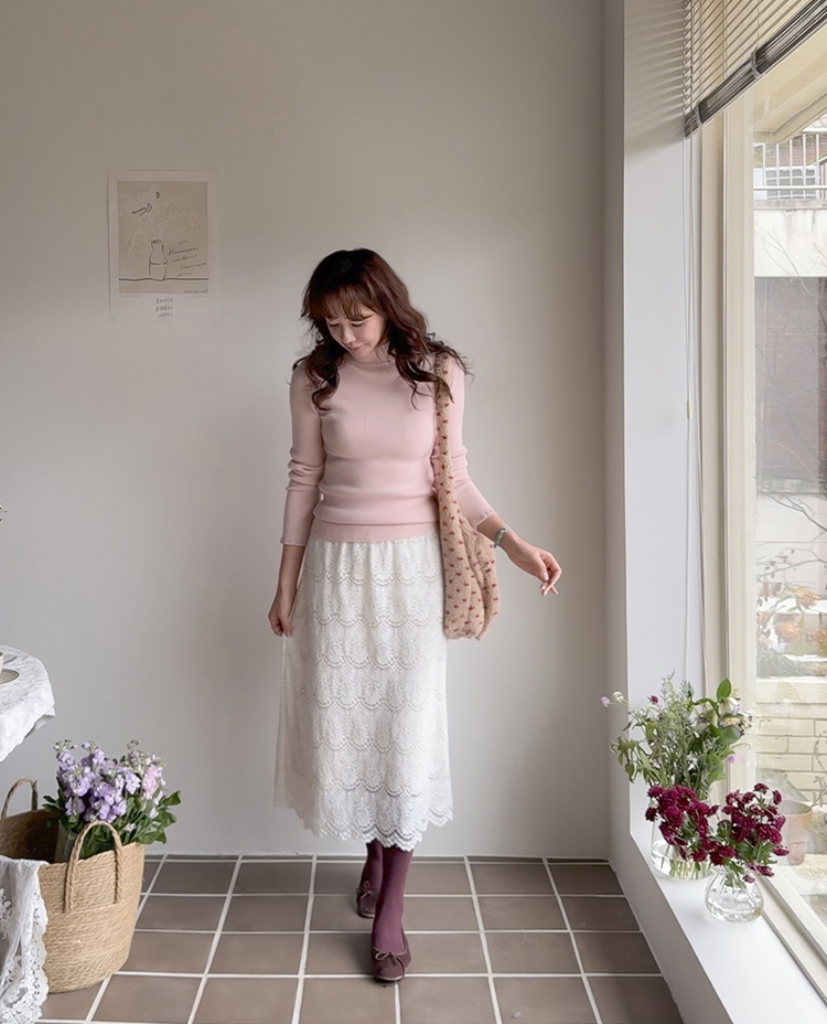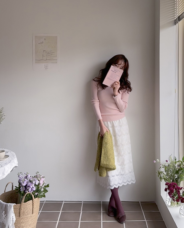 잔잔한 골지와 부드럽고 따뜻한 색감으로 러블리한 무드를 완성해 줄 폴라니트 보여드려요~ 넥라인 & 소매 끝 은은하게 반짝이는 프릴 디테일이 룩에 포인트가 되어 주고~! 단독은 물론이고 레이어드템으로 강추 드려요^.^ 피부에 까슬거림 없이 부드럽고 따뜻하게 촥! 감싸주어 너무 편안한 착용감에 쫀쫀~ 치즈 같이 쭉 늘어나 하루 종일 편해요! 리린 감성이 느껴지는 골지 폴라니트 추천 드려요~♥