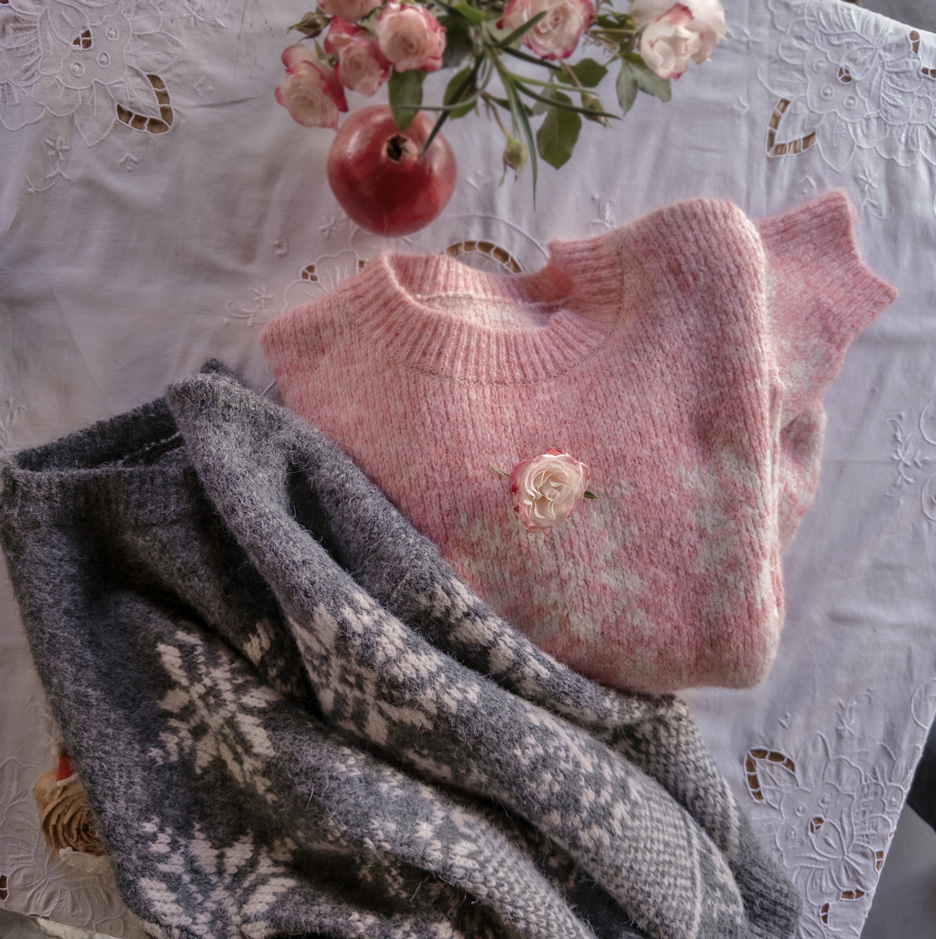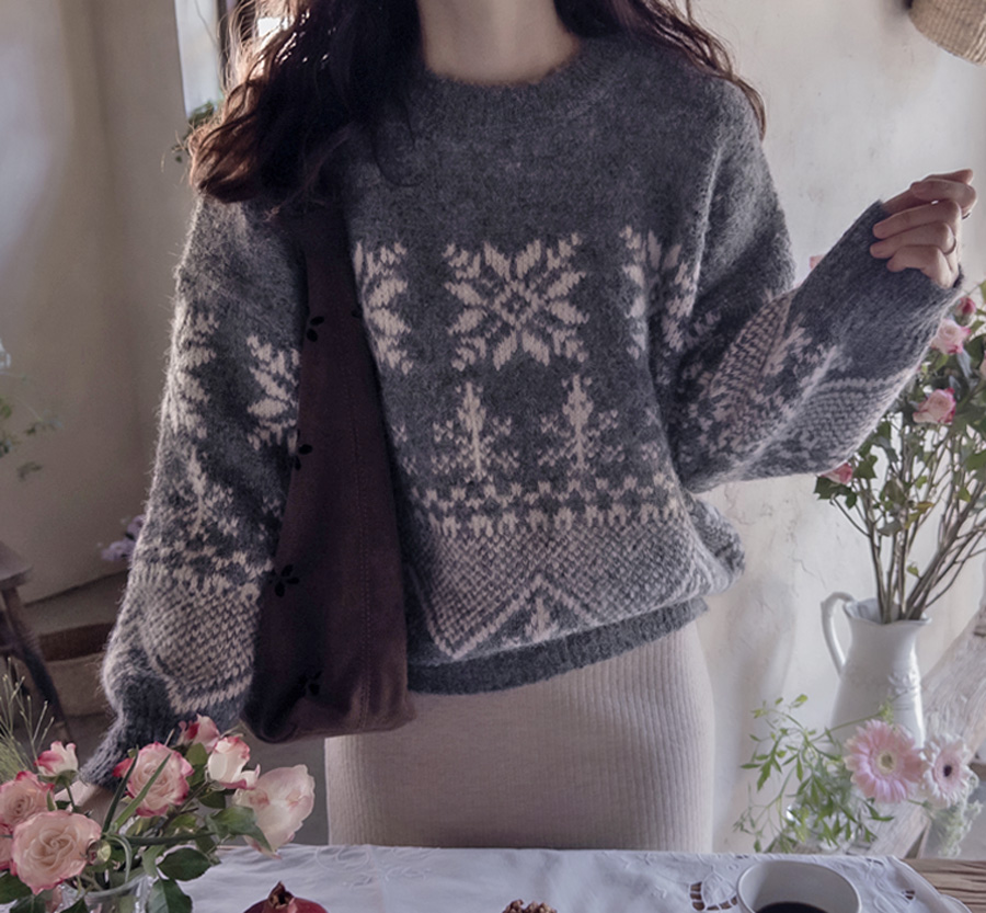 【雪花柄のふわふわでソフィスティケイトムードを載せたデイリーにいいニット】【タスミニットで着こなすのが好き】【戻ってくるシーズンを通してソフィスティケイトパターンのせいで暖かく着るのが好き】