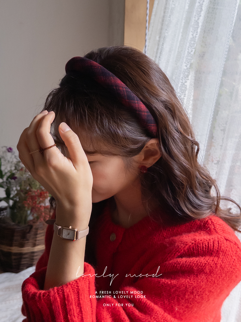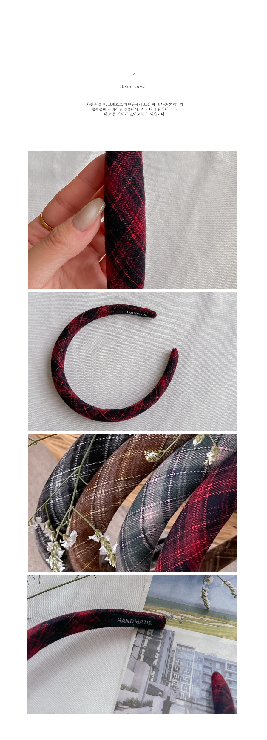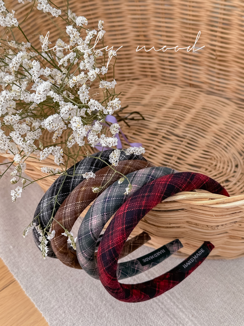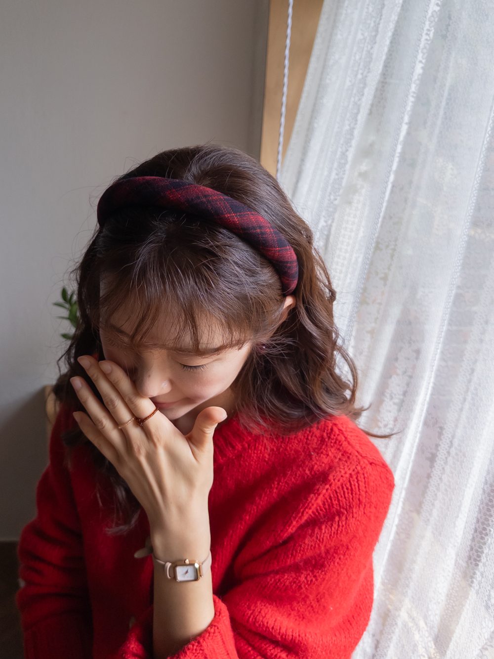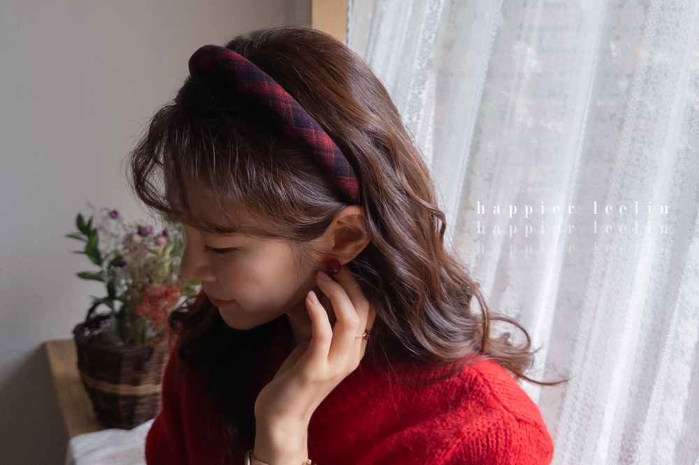 포근한 무드의 체크 패턴 헤어밴드에요~ 잔잔 체크 패턴이 확실한 포인트가 되는데요ㅎㅎ 과하지 않은 폭에 볼륨감이 살아있어 고급스러워요:) 안쪽에는 부드러운 안감 처리가 되어 장시간 착용해도 편안하답니다! 은은한 헤어감이 느껴져 겨울에 착용하기 좋아요^^