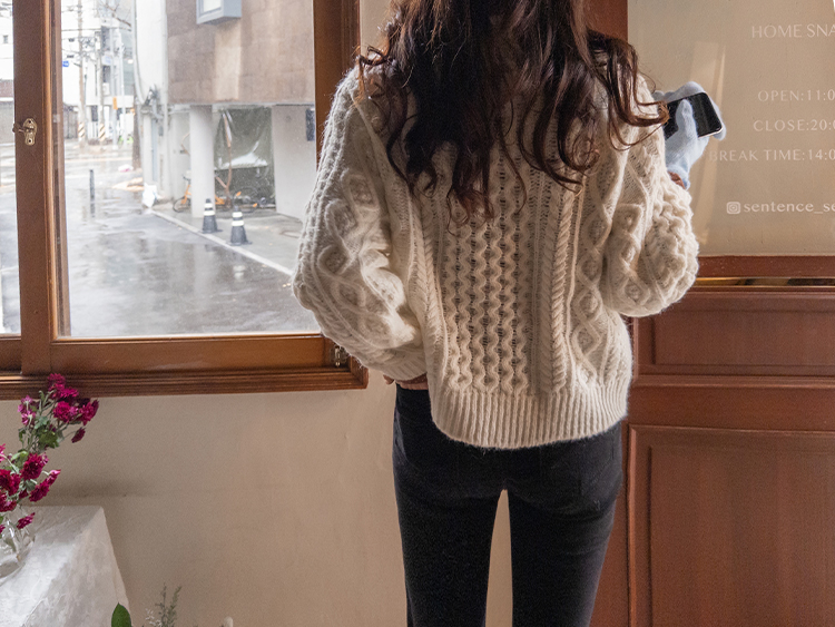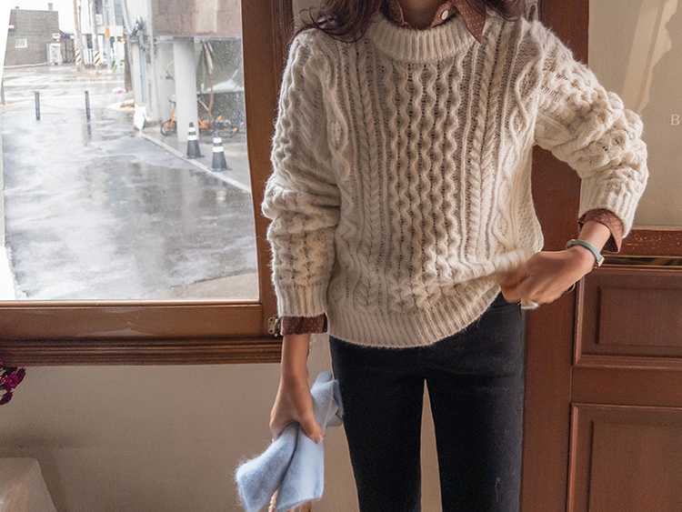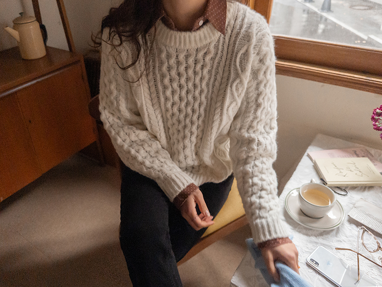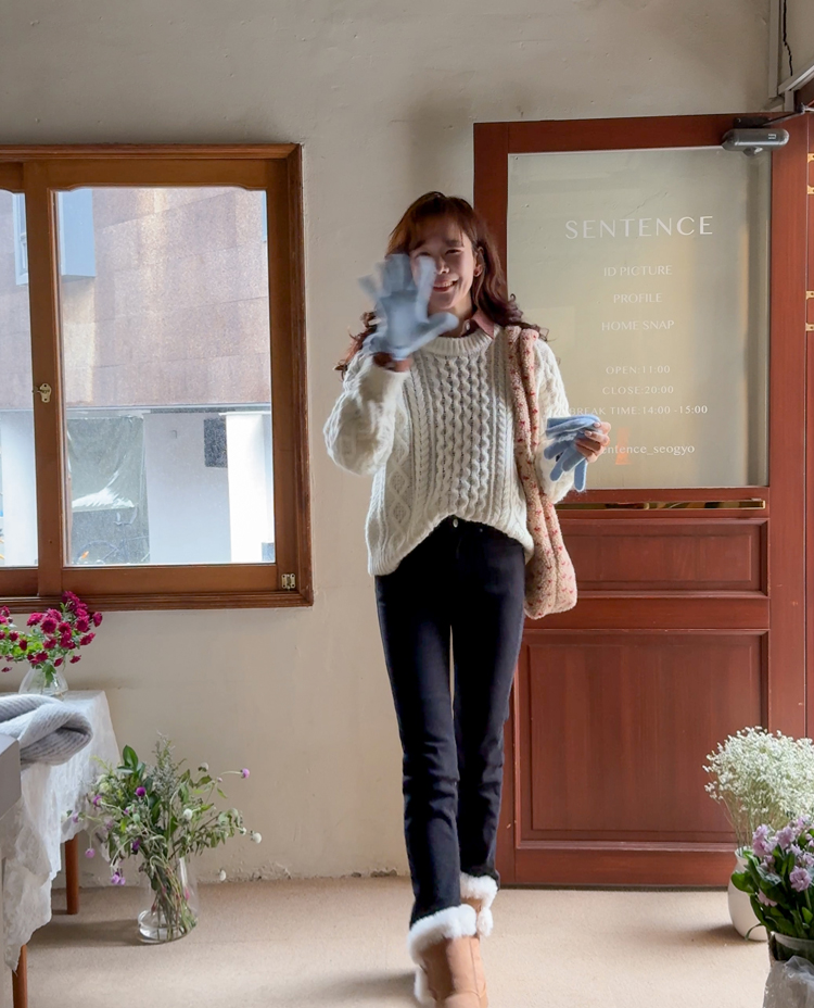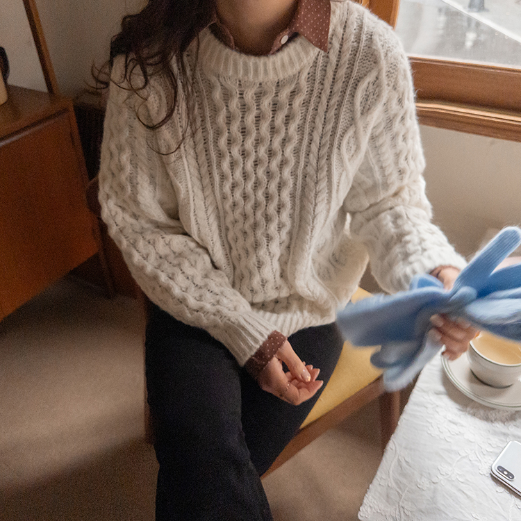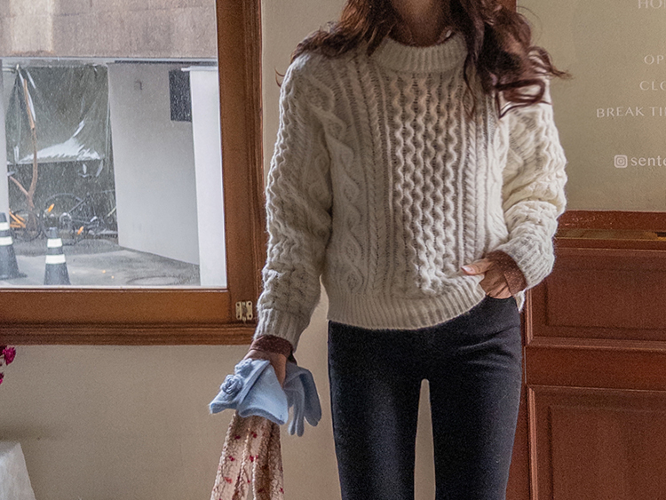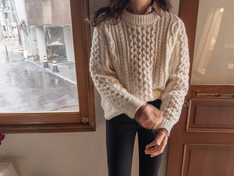 겨울 분위기가 물씬~ 느껴지는 꽈배기 패턴 디테일이 들어간 니트에요~☃️ 울블랜드 소재가 함유되어 부드러운 터치감에 따뜻한 보온성까지 챙겼답니다*.* 살짝 넉넉한 실루엣으로 셔츠, 레이어드 이너 등과 매치하기 좋은 아이템이라 휘뚤~마뚤~ 손이 자주 가실거에요💕 베이직한 디자인과 색감으로 하나쯤 장만하시면 올 겨울 코디에 걱정을 덜어드릴 아이템이랍니다~^^