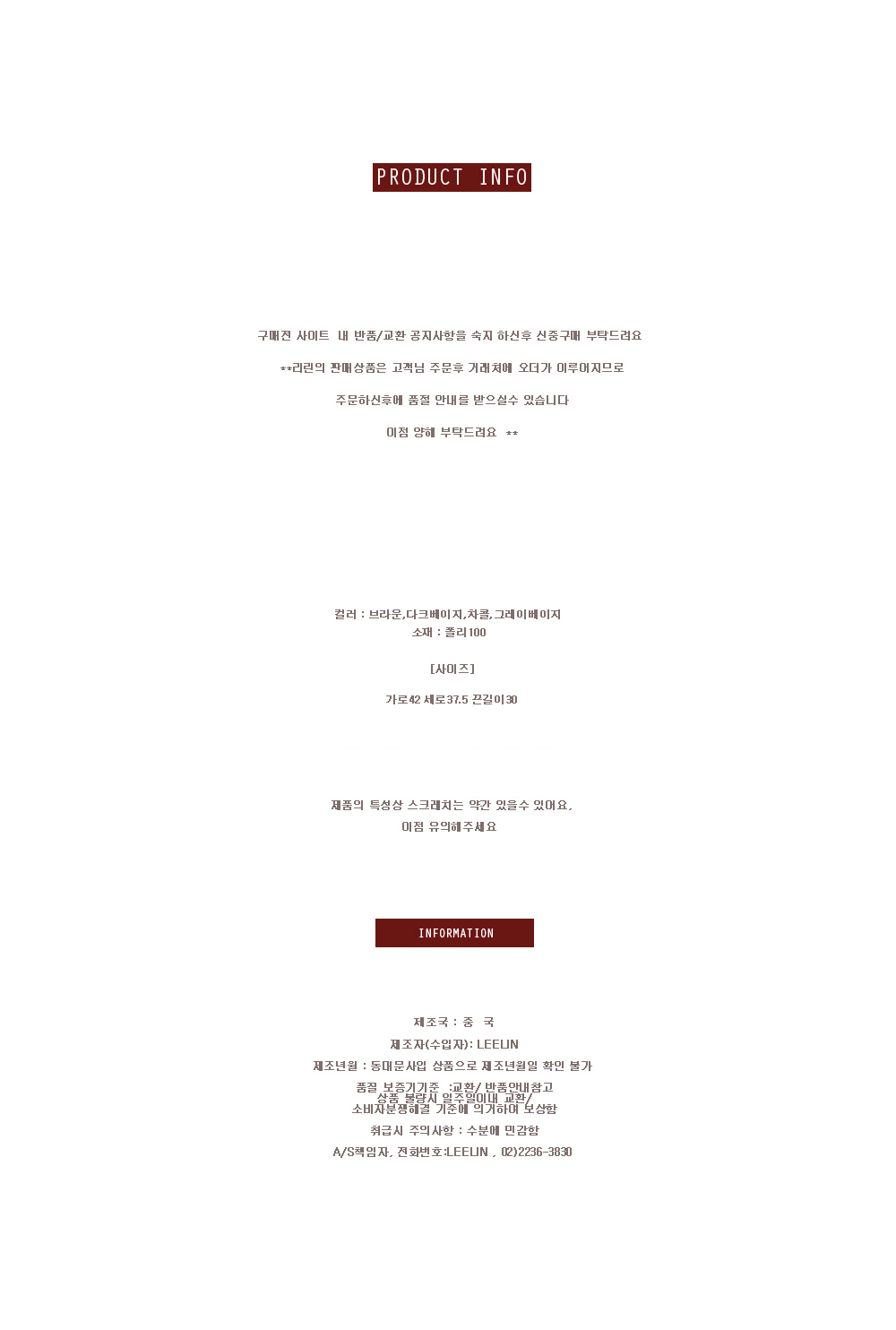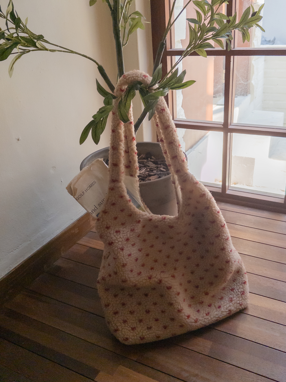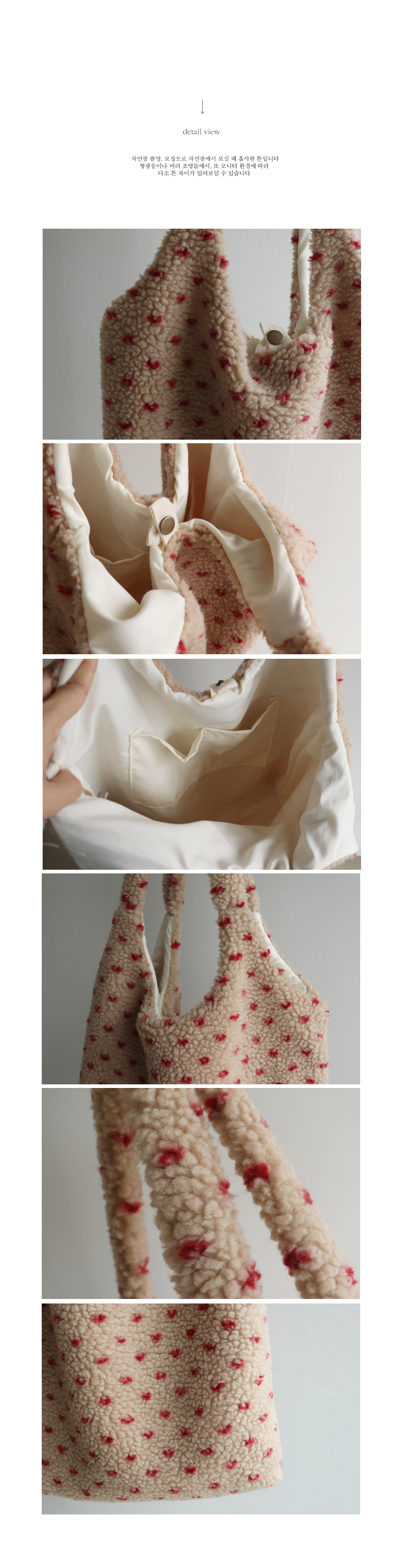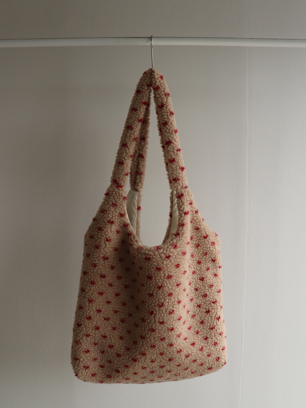 폭닥한 뽀글이 소재에 작은 하트 펀칭 패턴이 사랑스럽게 더해져 보는 순간 기분 좋아지는 숄더백이에요💕 어디에 툭 걸쳐도 겨울 코디에 톡톡한 포인트가 되어주고~ 부드럽고 포근한 촉감으로 겨울 감성 물씬 느껴지는 아이템이랍니다 :) 어깨에 착! 감기는 넓은 숄더 스트랩과 작지 않은 넉넉한 사이즈로 수납력까지 좋아 데일리백으로 자꾸 손이 가실 거에요*.* 리린에서 굿 초이스 해주세요~♡