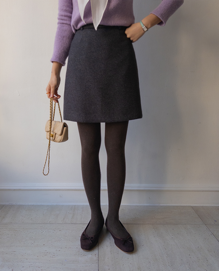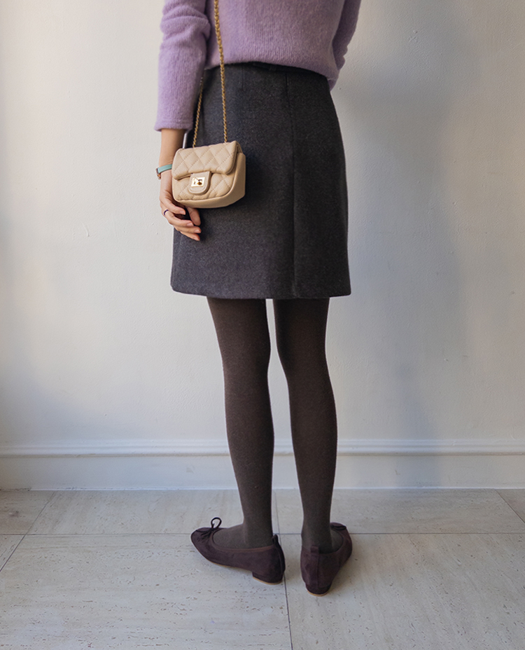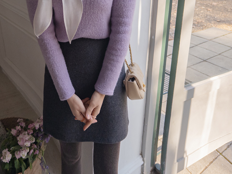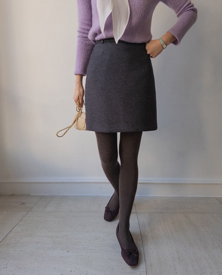 울블렌더 소재 특유의 부드러움과 고급스러운 터치감이 매력적인 스커트예요~^.^ 과하지 않은 A라인으로 떨어지는 핏이 입는 순간 고급스러우면서도 차분한 분위기를 만들어주고~ 벨트가 세트로 구성되어 있는 아이템이라 격식 차려야 하는 자리에도 오피스룩·데이트룩·하객룩 등 어디에나 활용도가 정말 좋아요~*.* 기장은 살짝 짧은 편이지만 원단 자체가 주는 고급스러운 무드 덕분에 전혀 가벼워 보이지 않고 우아하게 떨어지는 핏이 특징이랍니다✨ 고급스러운 느낌 뿜뿜! 세련된 무드 가득한 겨울 스커트 찾으신다면 요 아이템이 딱! 이랍니다~ 굿 초이스 해주세요~♥