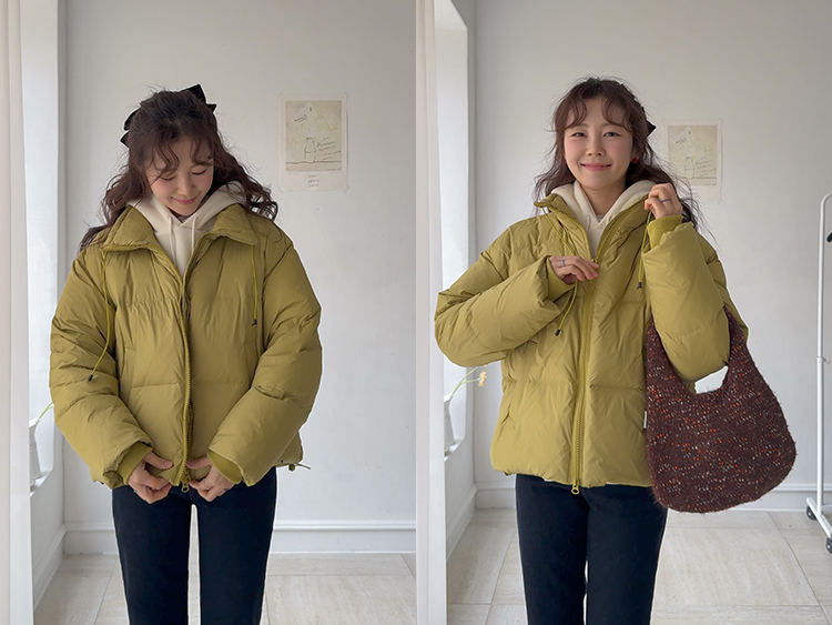 가볍고 보온성이 느껴지는 구스다운이 부드럽게 감싸주어 한겨울까지 든든하게 입을 수 있는 패딩이에요~^.^ 몸을 폭 안아주는 듯한 여유있는 넉넉한 핏으로 캐주얼한 무드를 만들어주어 편하게 툭 걸쳐도 꾸안꾸 데일리룩이 완성된답니다*.* 올리브, 그레이, 아이보리 3가지 톡톡한 컬러 구성으로 겨울룩에 포인트를 더해주면서도 과하게 튀지 않아 데일리 활용도가 정말 높아요~ 가볍고 따뜻하게~ 코디 고민 없이 휘뚤~마뚤~ 입기 좋아 올 겨울 손이 많이 갈 아이템이랍니다!!^^ 모두 굿 초이스 해주세요~♡