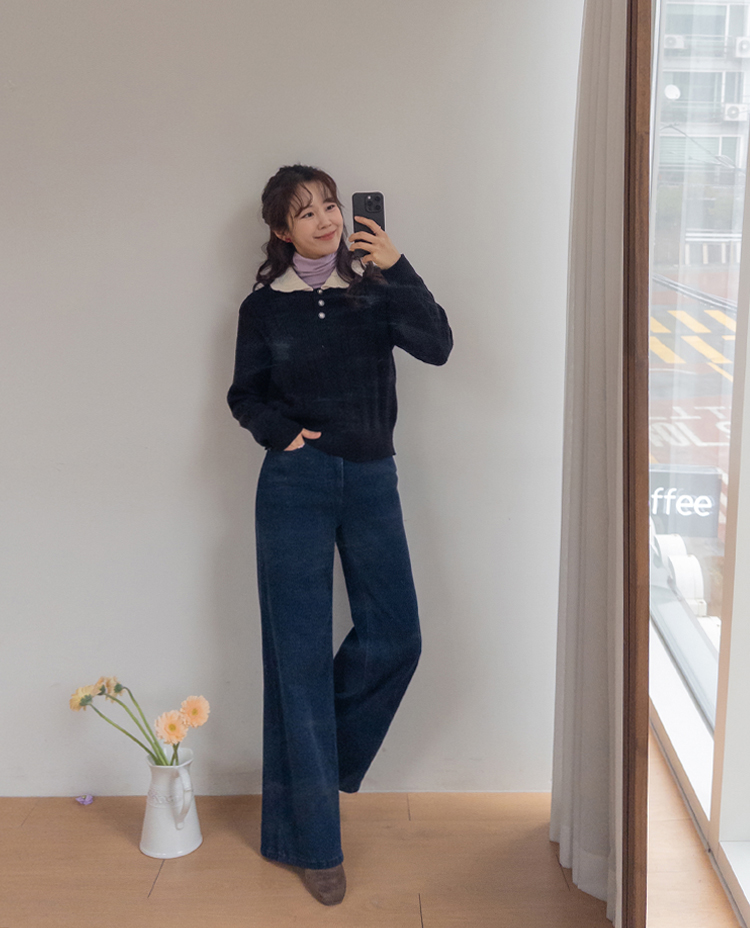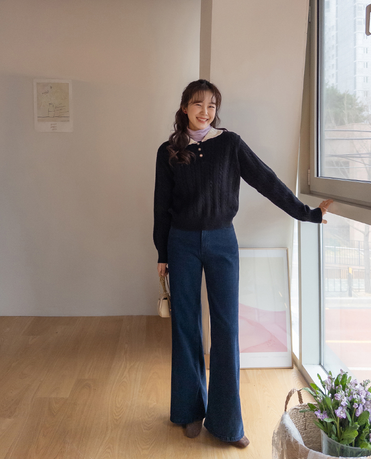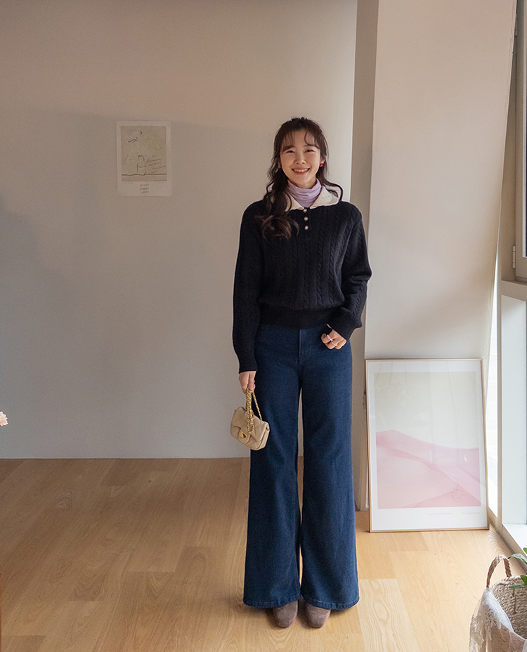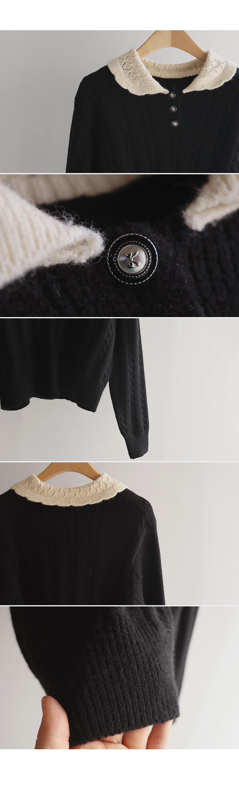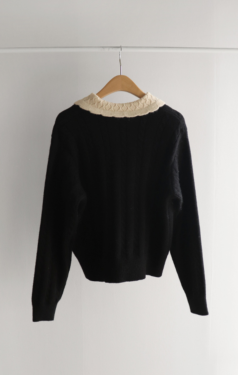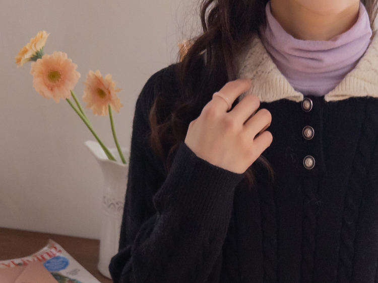 카라에 더해진 레이스 배색이 얼굴을 화사하게 밝혀주면서 러블리하고 여성스러운 분위기를 UP시켜주는 니트에요^.^ 고급스러움이 느껴지는 버튼 디테일과 탄탄함이 느껴지는 고퀄리티 원단으로 한 계절만 입고 버리는 게 아닌 오래~오래 입을 고퀄리티 니트랍니다✨ 꽈배기 짜임 디자인으로 겨울 특유의 포근한 감성이 느껴지고 단독으로 입어도 충분히 포인트 되는 아이템이에요~ 데님, 스커트, 슬랙스 어디에나 잘 어울려 데일리룩부터 데이트룩까지 자주 손이 갈 니트로 추천드려요~♡
