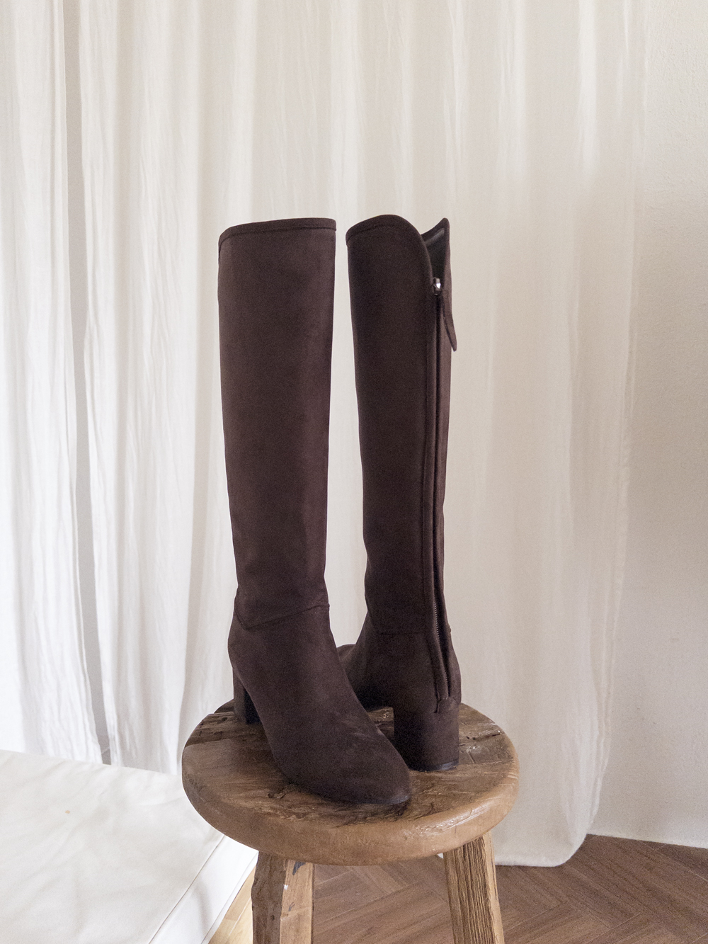 고급스러운 느낌이 뿜뿜한 스웨이드 소재로 가을,겨울 분위기에 잘 어울리는 롱부츠예요~ 다리를 감싸는 슬림 핏이 다리라인을 길고 예쁘게 잡아주고, 4.5cm의 부담 없는 굽 높이라 장시간 걸어도 편안한 착화감을 느낄 수 있어요!^^ 스커트, 원피스, 팬츠까지 어떤 룩에도 자연스럽게 어울리는 디자인이라 F/W 시즌 데일리 부츠로 적극 추천하는 아이템🤎 세련된 실루엣과 편안함을 동시에 잡은 겨울 감성 듬뿍 스웨이드 롱부츠!! 굿 초이스 해주세요~♥