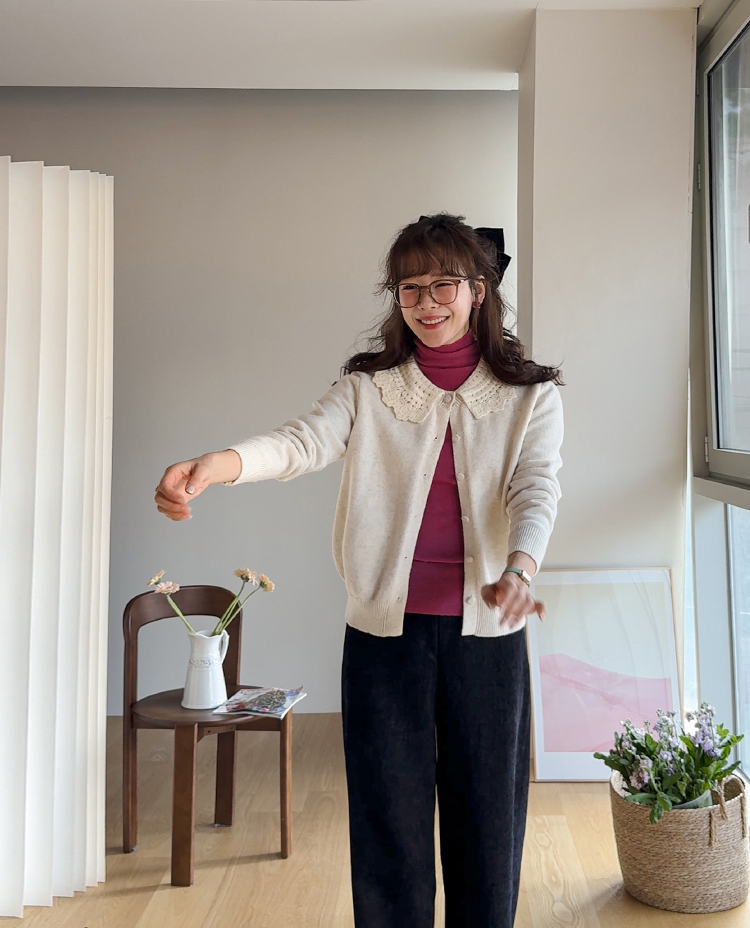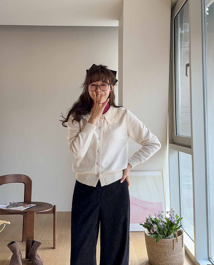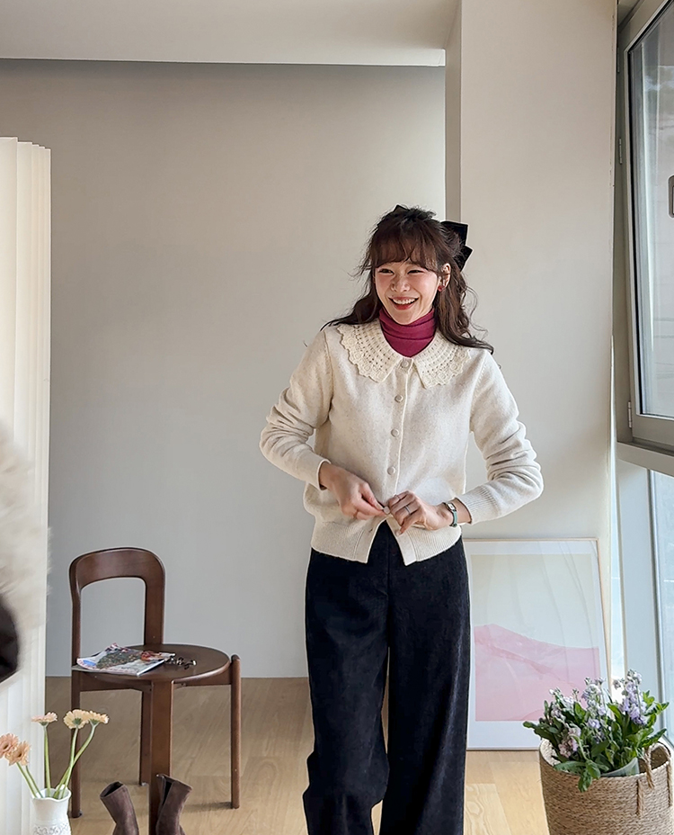 포근하고 러블리한 데일리룩을 만들어줄 리린 감성 가득 느껴지는 가디건 보여드려요~ 카라 포인트로 여성스러운 분위기를 만들어주며 적당한 핏으로 다양한 이너와도 편하게 즐기기 좋아요! 정말 부드럽고 은은한 헤어감이 돋보여 가디건만으로도 겨울 분위기를 만들어준답니다^.^ 데일리룩부터 다양한 무드에 맞게 즐기기 좋은 요 가디건 꼭 소장하시는 거 추천드려요~!